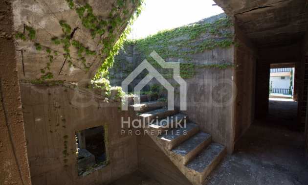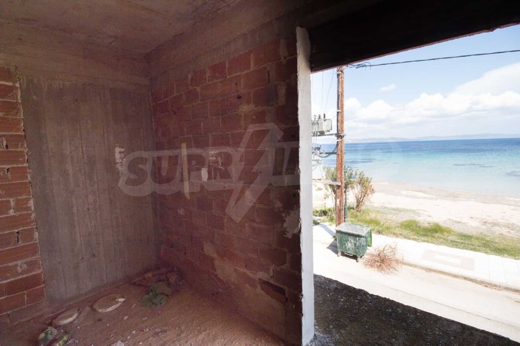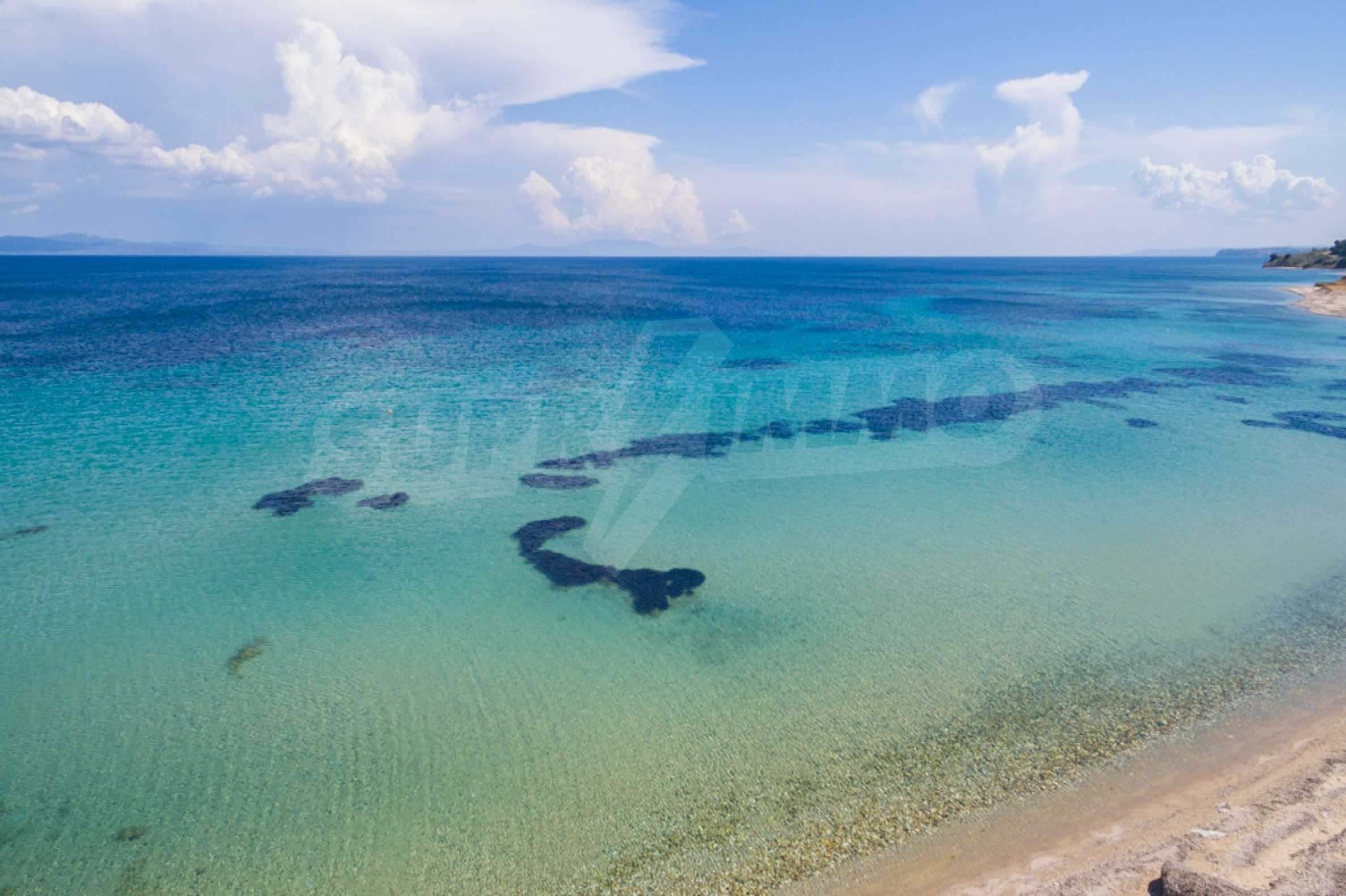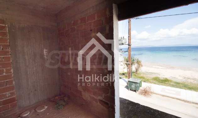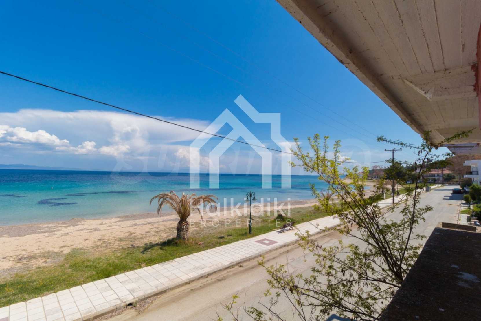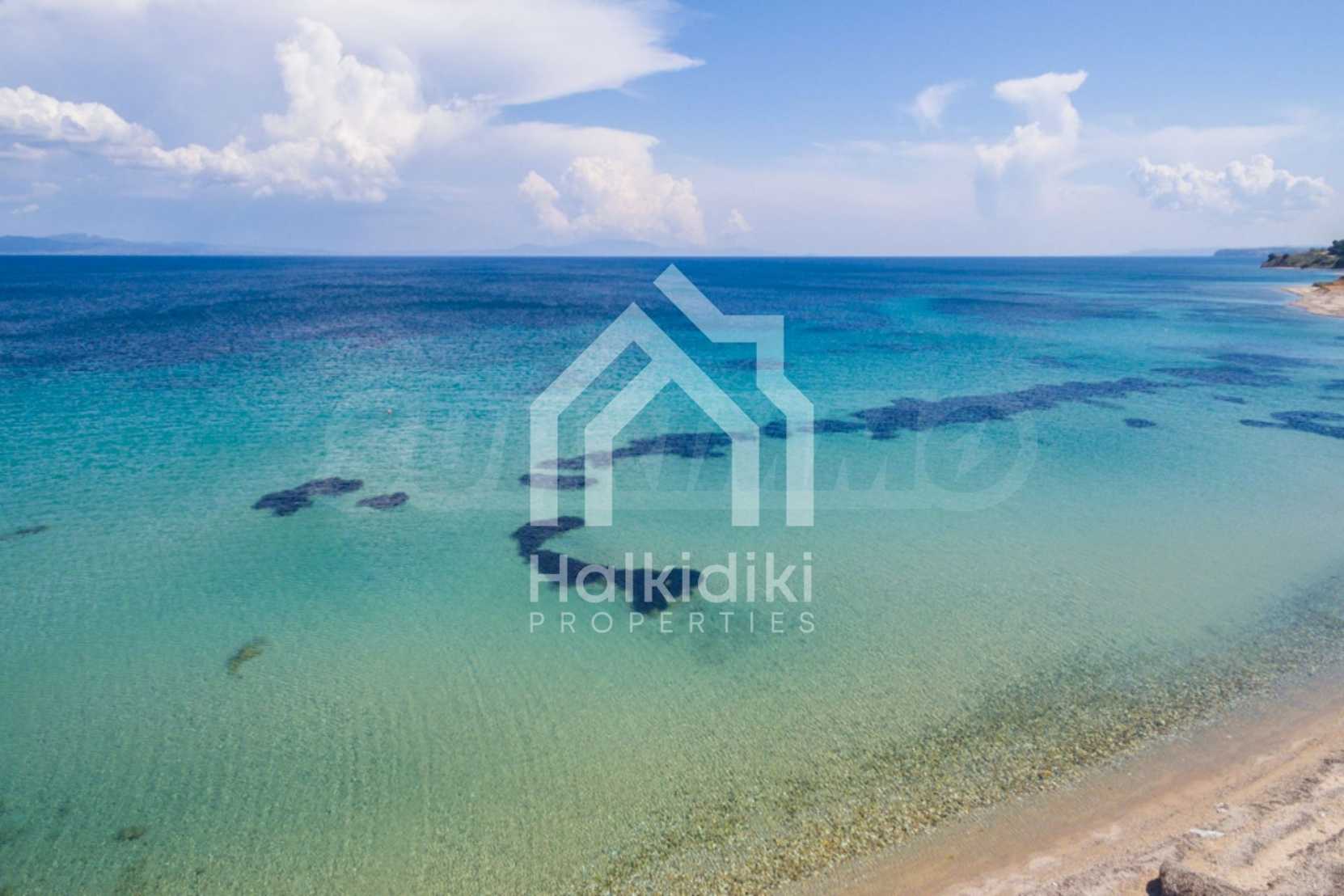 Wir bieten Ihnen eine freistehende Doppelhaushälfte in erster Linie zum Meer mit einer Fläche von 570 qm. in Potidea, Kassandra.