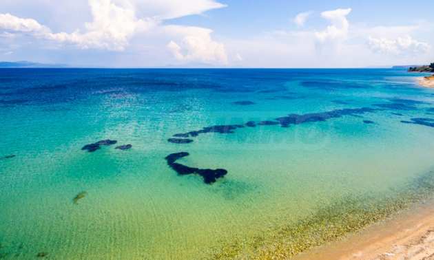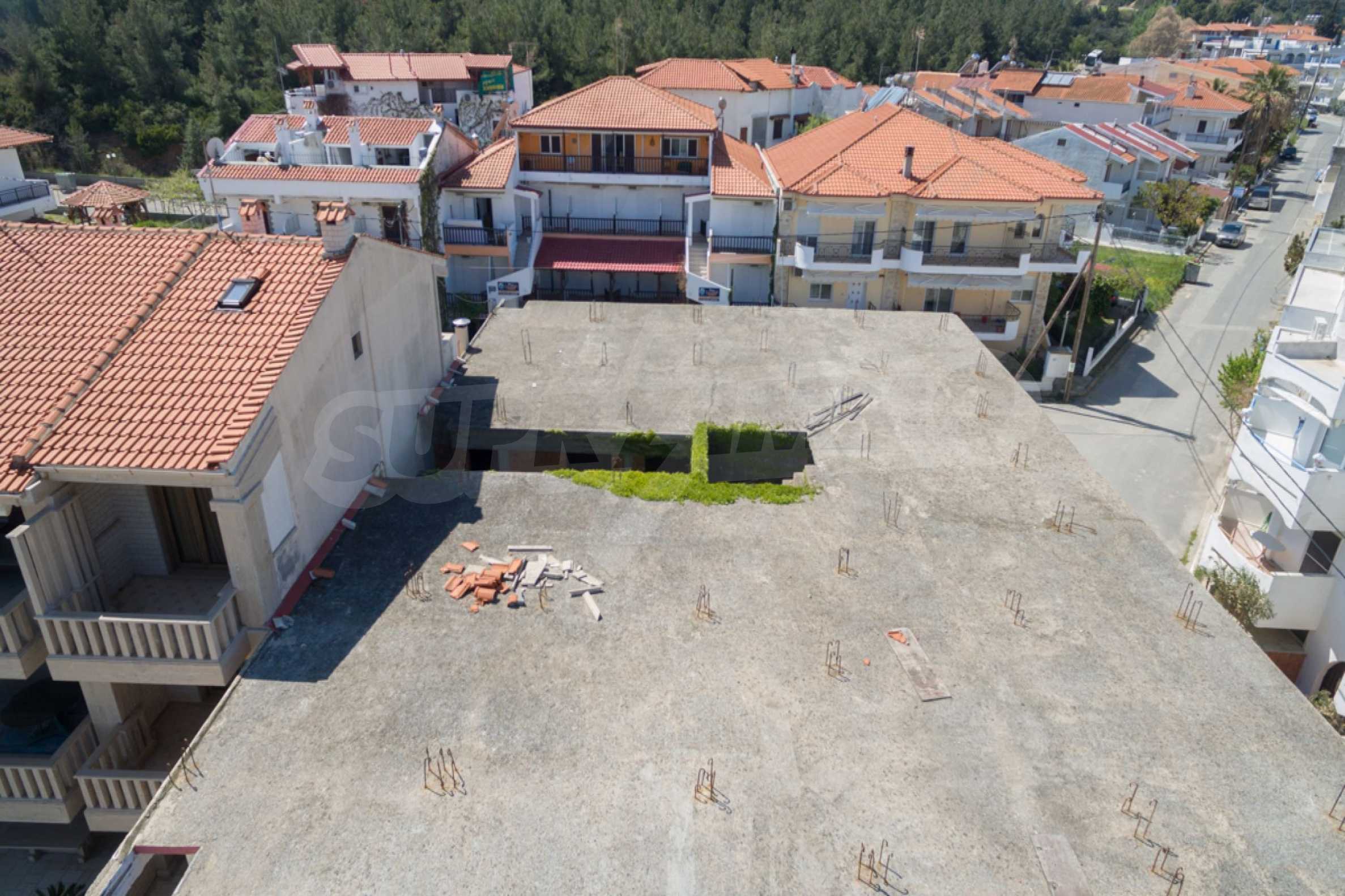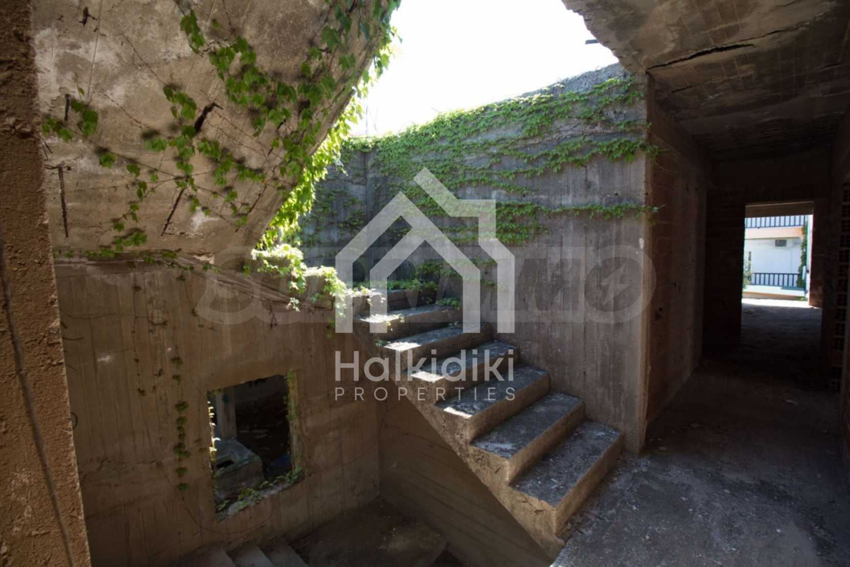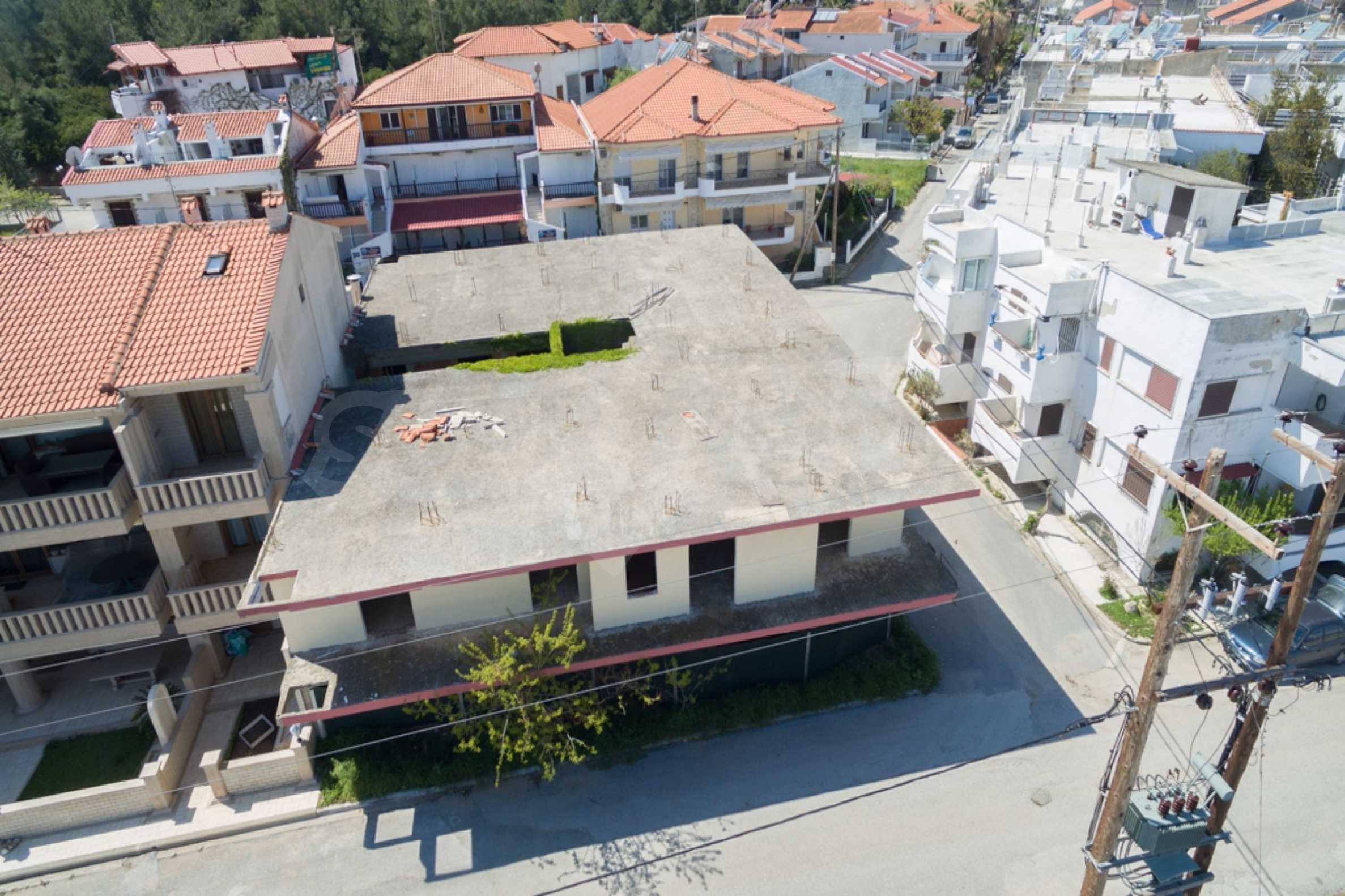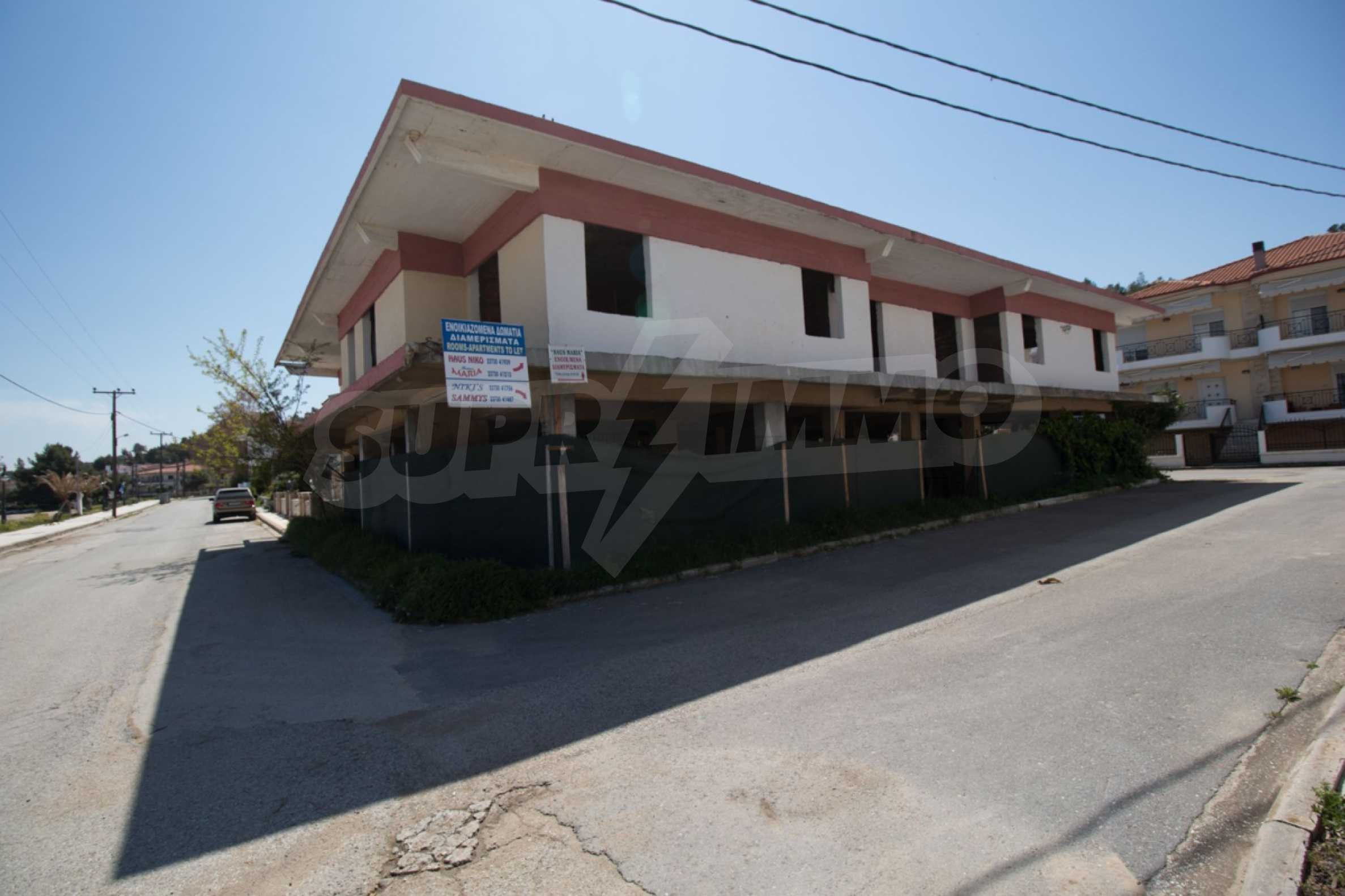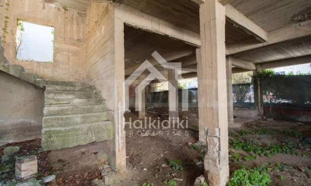 Wir bieten Ihnen eine freistehende Doppelhaushälfte in erster Linie zum Meer mit einer Fläche von 570 qm. in Potidea, Kassandra.