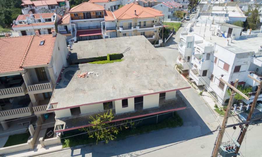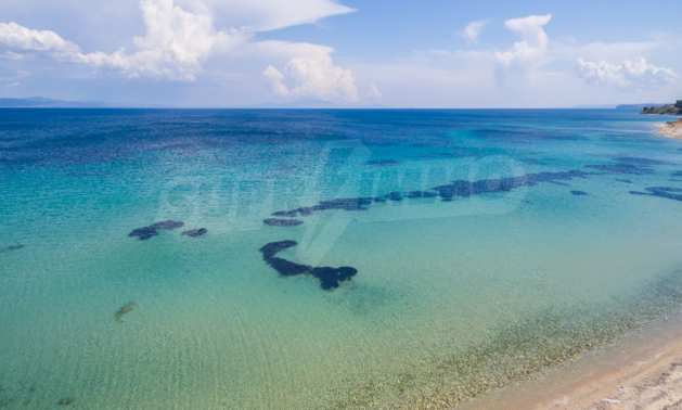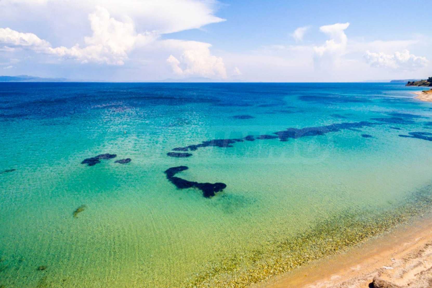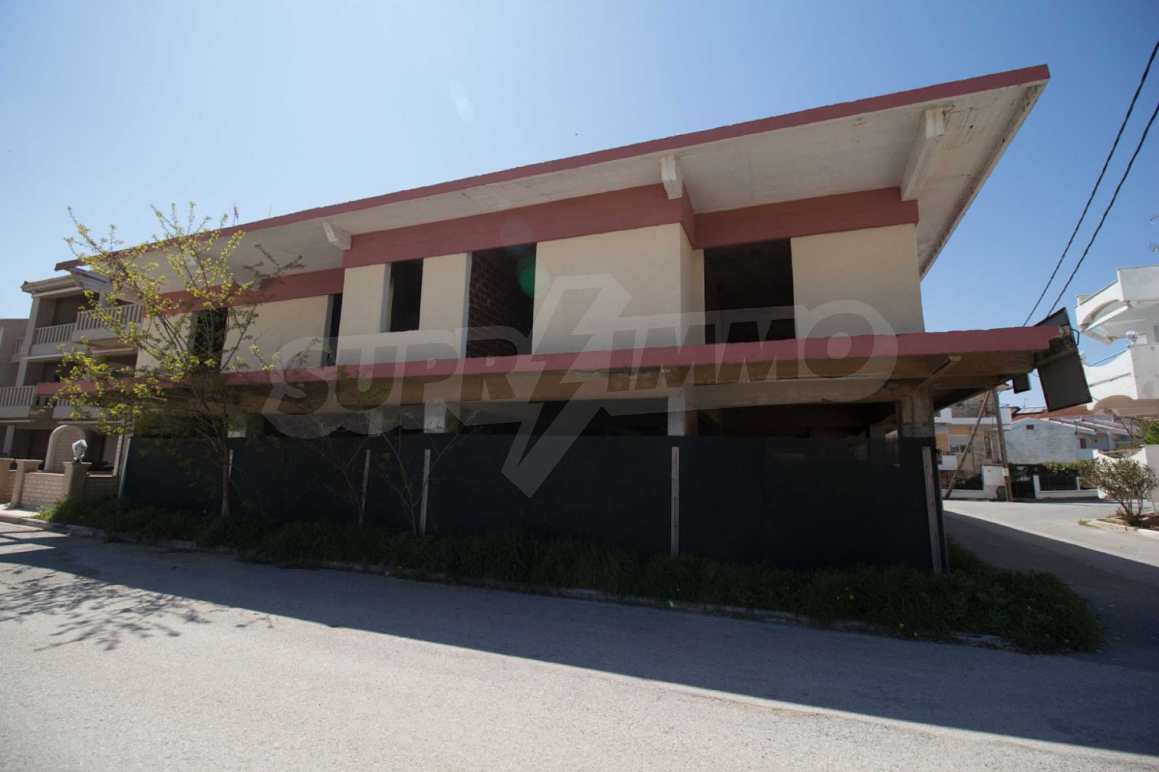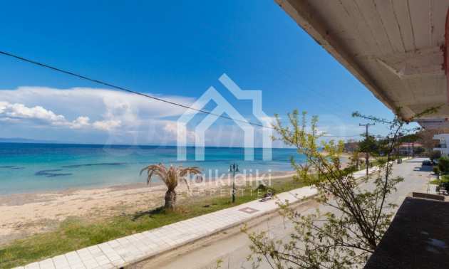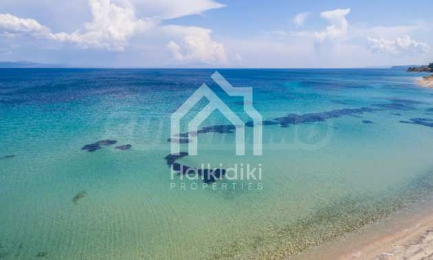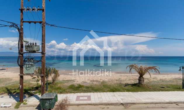 Wir bieten Ihnen eine freistehende Doppelhaushälfte in erster Linie zum Meer mit einer Fläche von 570 qm. in Potidea, Kassandra.