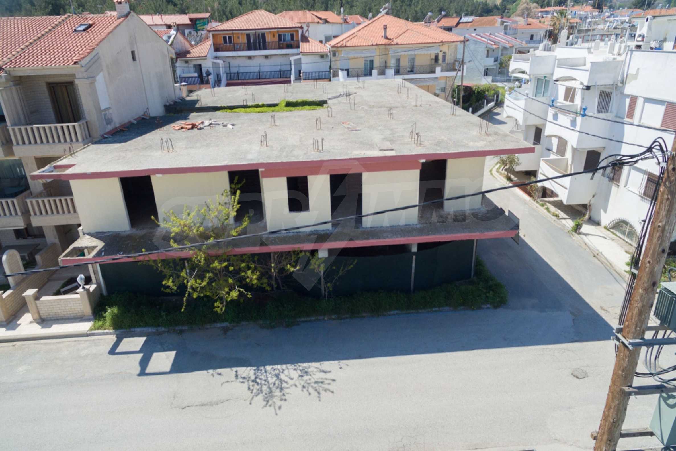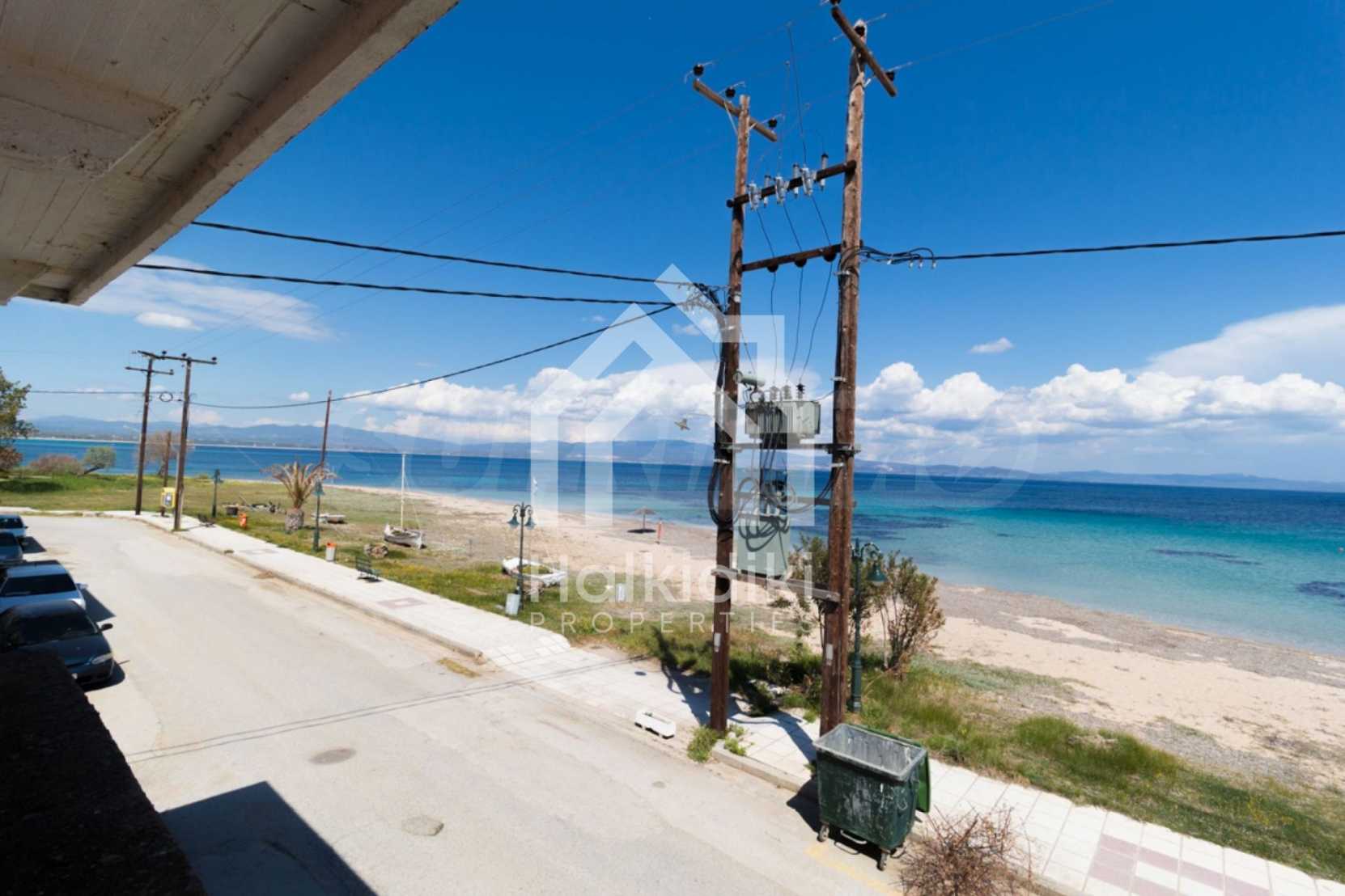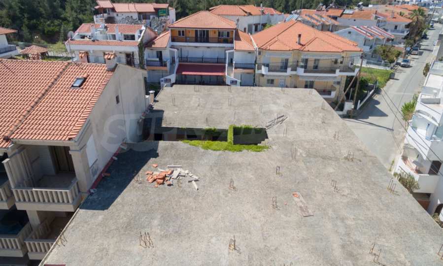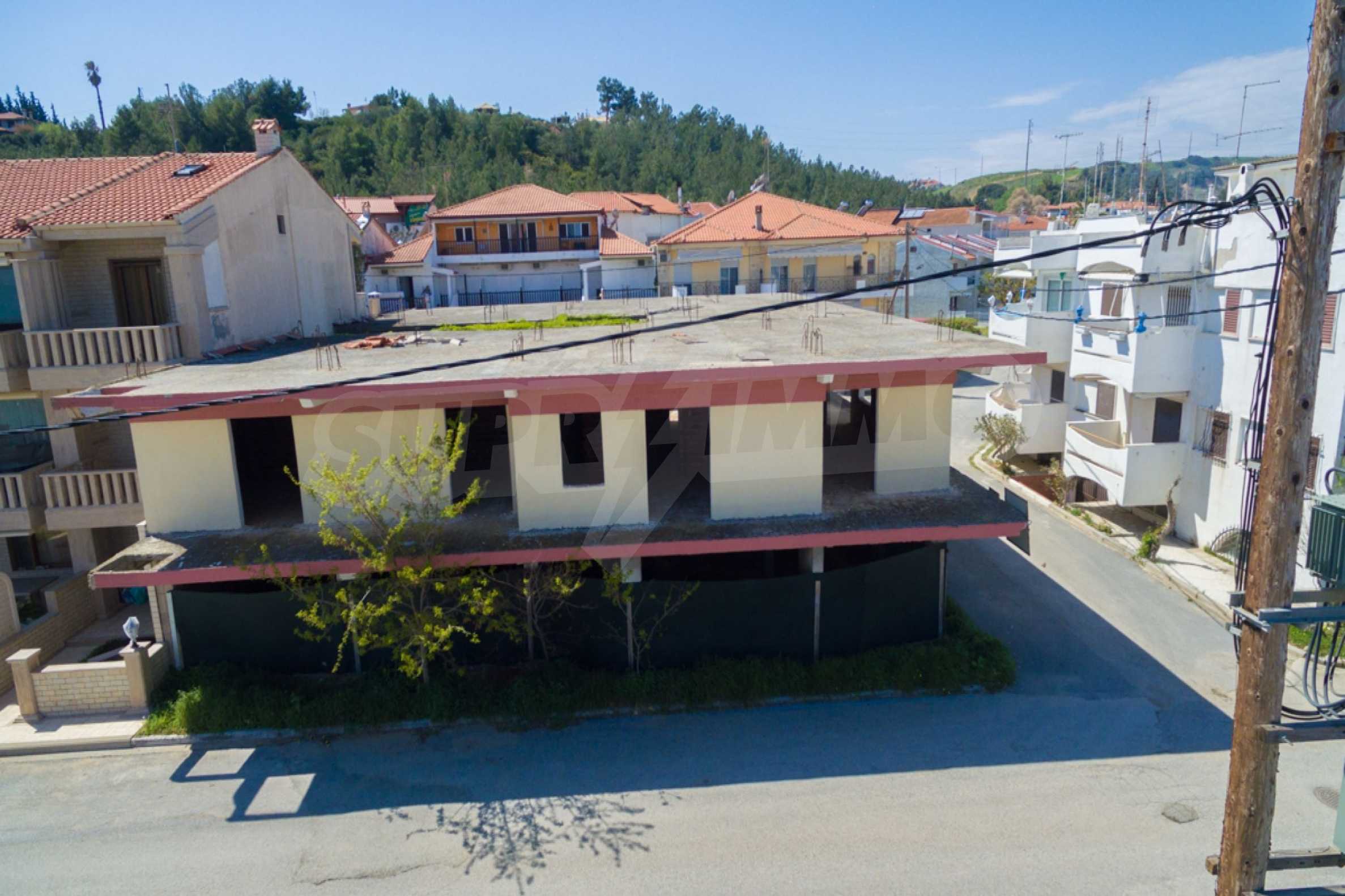 Wir bieten Ihnen eine freistehende Doppelhaushälfte in erster Linie zum Meer mit einer Fläche von 570 qm. in Potidea, Kassandra.