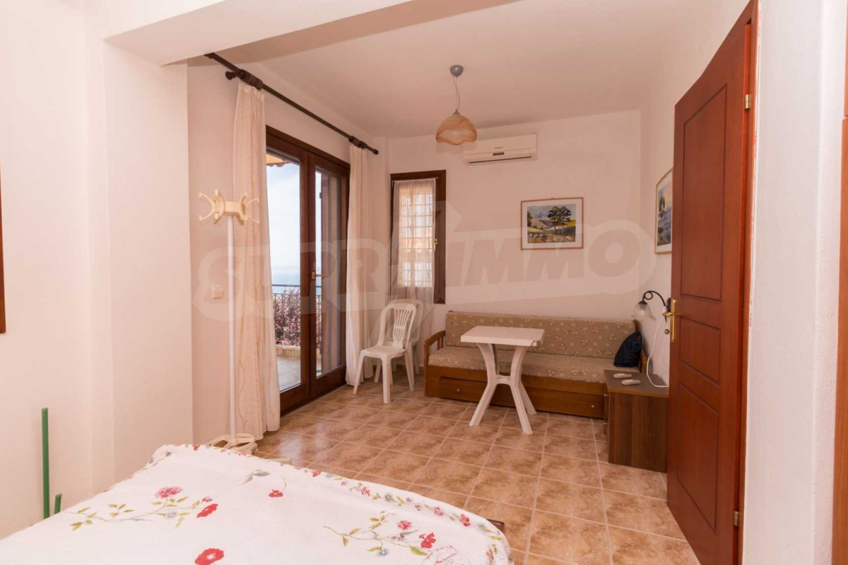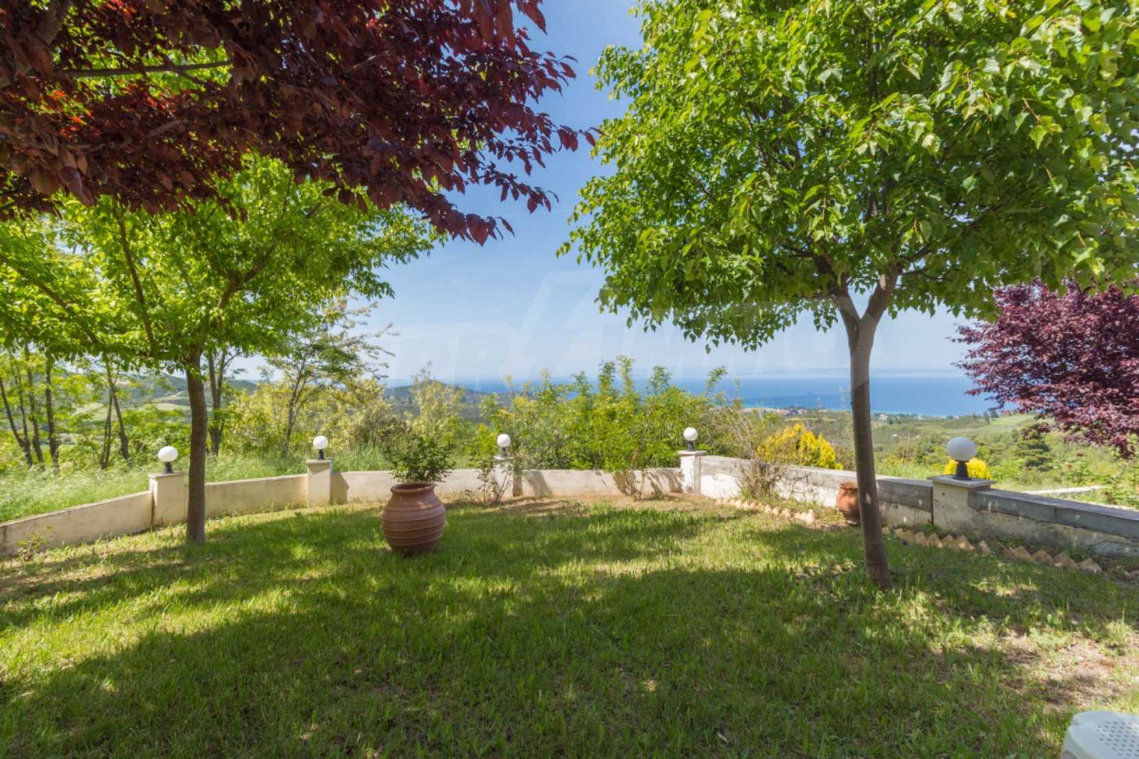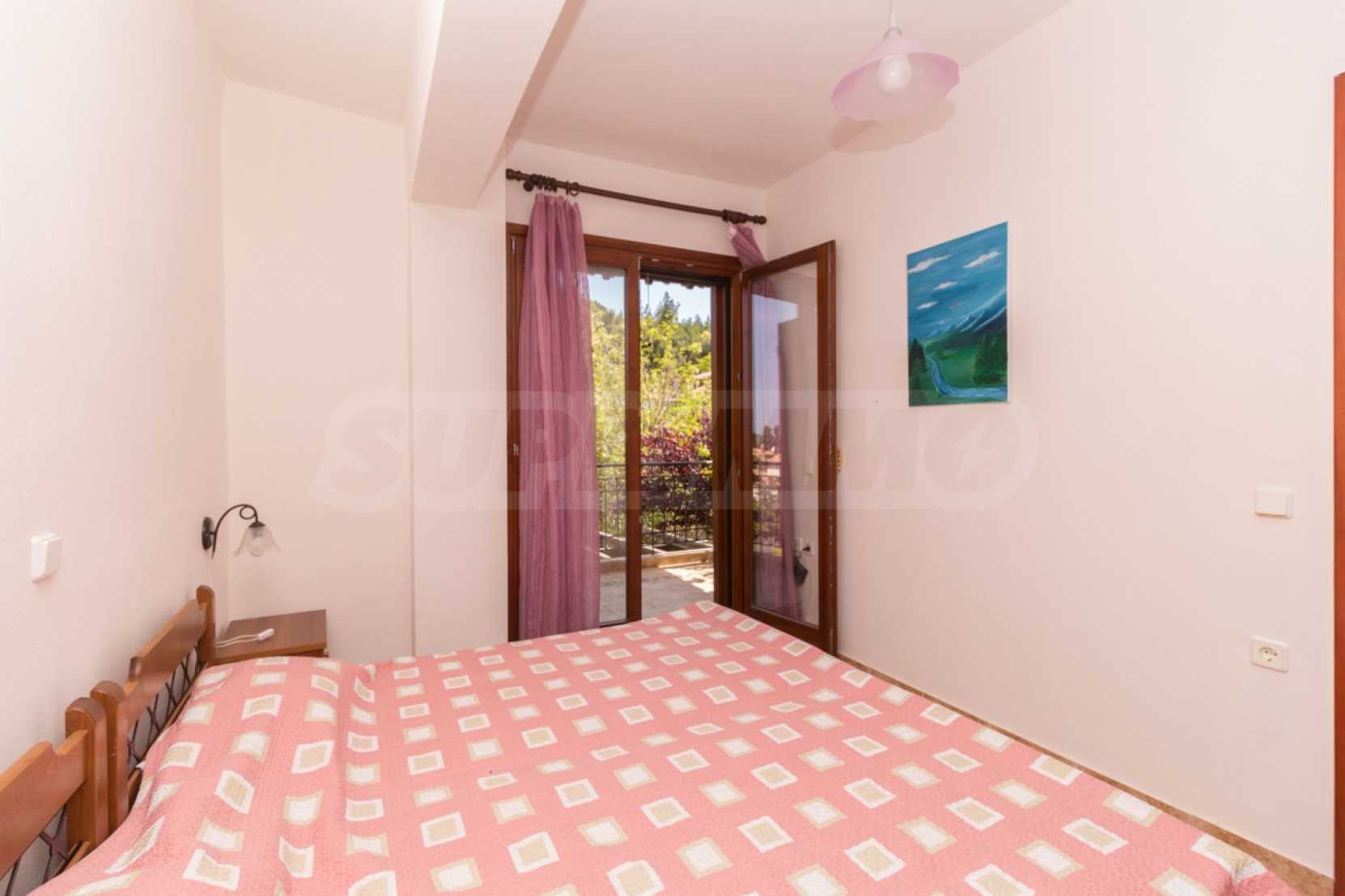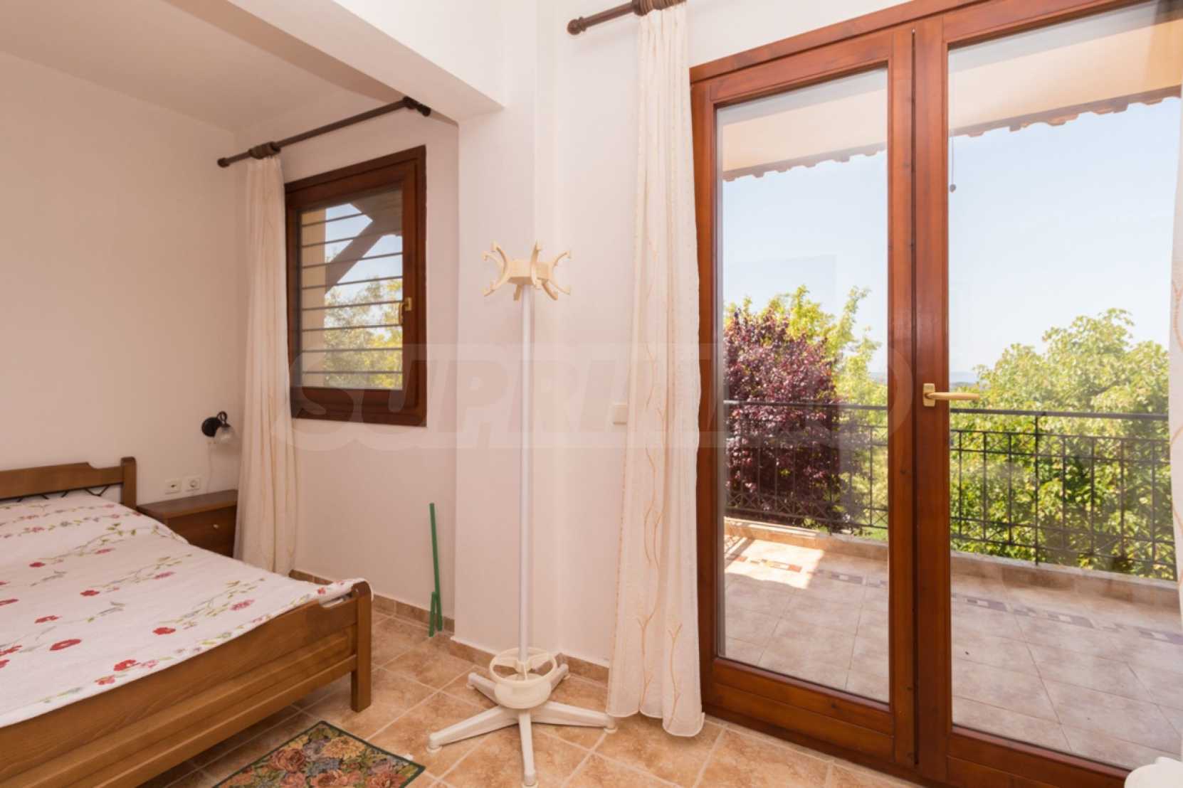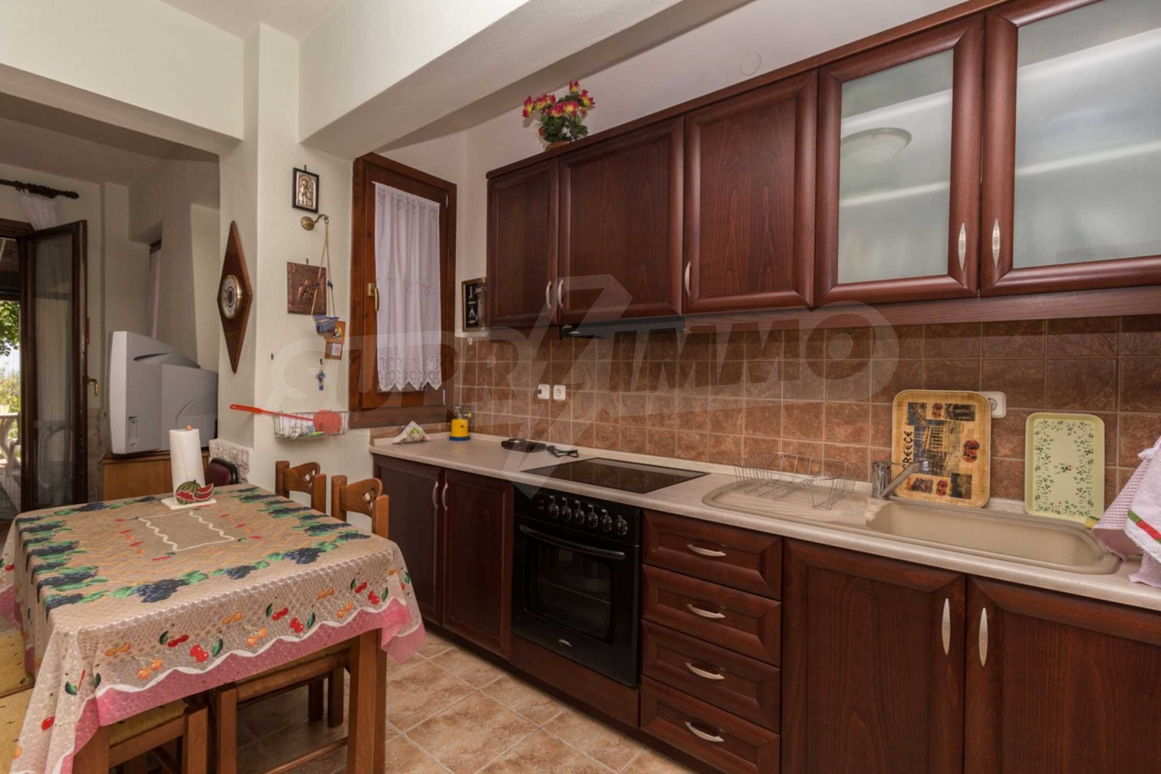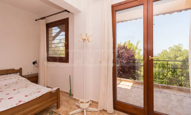 Das Haus hat eine Fläche von 120 qm. und hat einen eingezäunten Hof von 600 qm. Das Penthouse Bau 2003 befindet sich im ersten Stock: 2 Parkplätze und ein geräumiges Wohnzimmer mit Kamin und Einbauküche mit allen notwendigen Geräten und Geräten sowie Bad und Schrank. Im zweiten Stock befinden sich 2 Schlafzimmer, ein Badezimmer und ein großer Balkon mit Panoramablick. Die Fenster des Anwesens sind aus Holz und von der Terrasse aus haben Sie einen herrlichen Blick auf die wunderbare Natur der Gegend. Die Zimmer sind klimatisiert und werden durch einen Kamin beheizt.