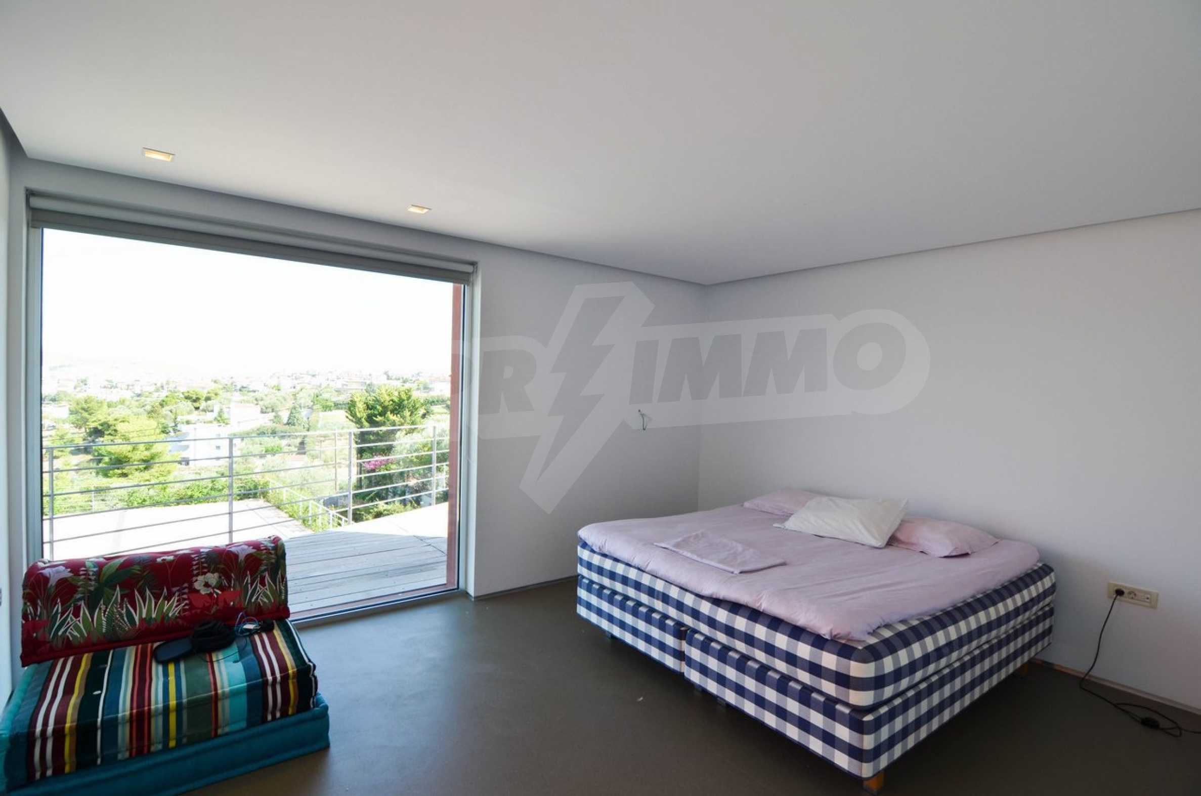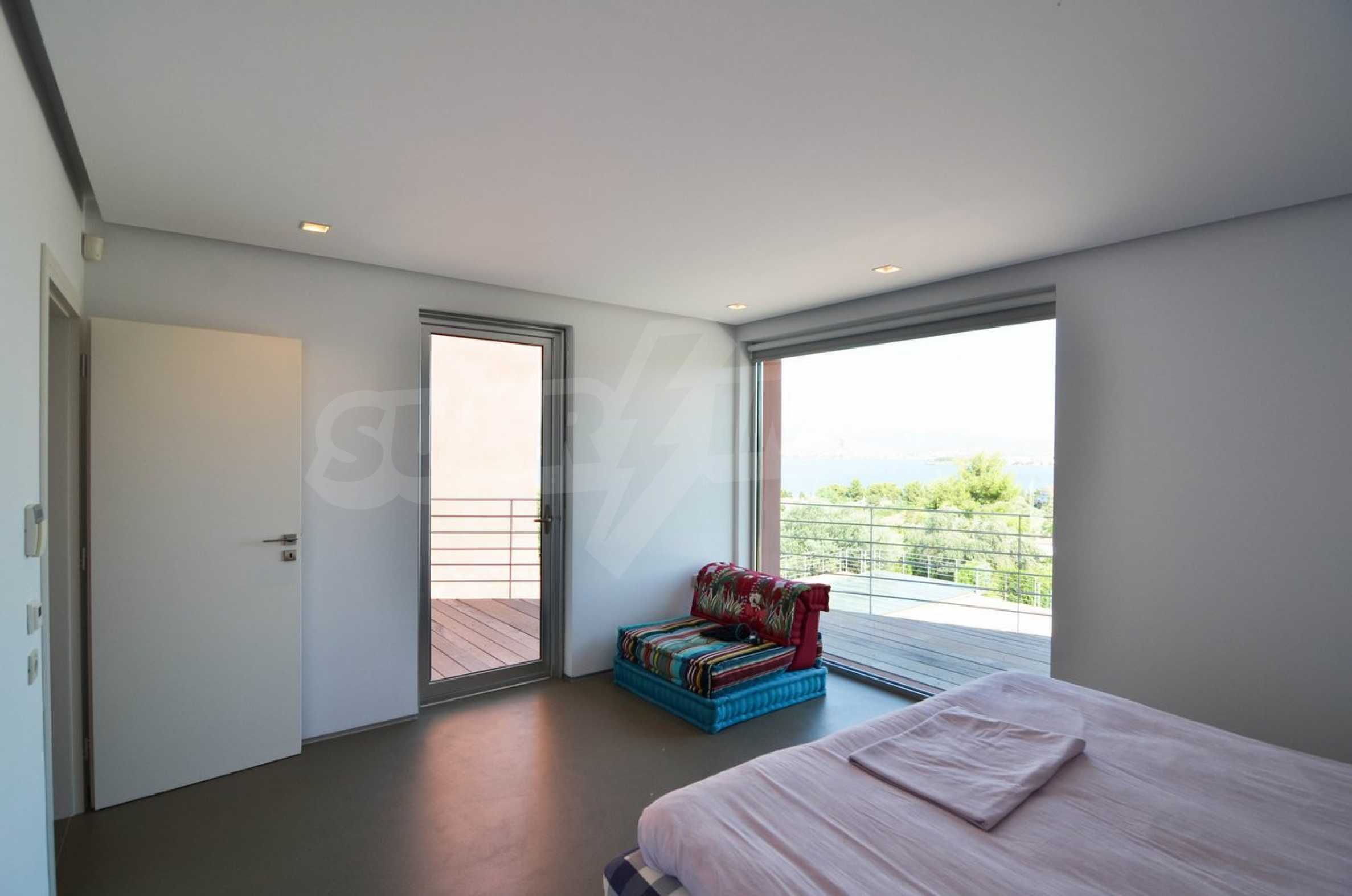 Die Schlafzimmer sind sehr geräumig, mit großen Schränken, das Esszimmer hat einen großen Esstisch mit direktem Meerblick, das Wohnzimmer hat ein Heimkino und Garten und Meerblick.