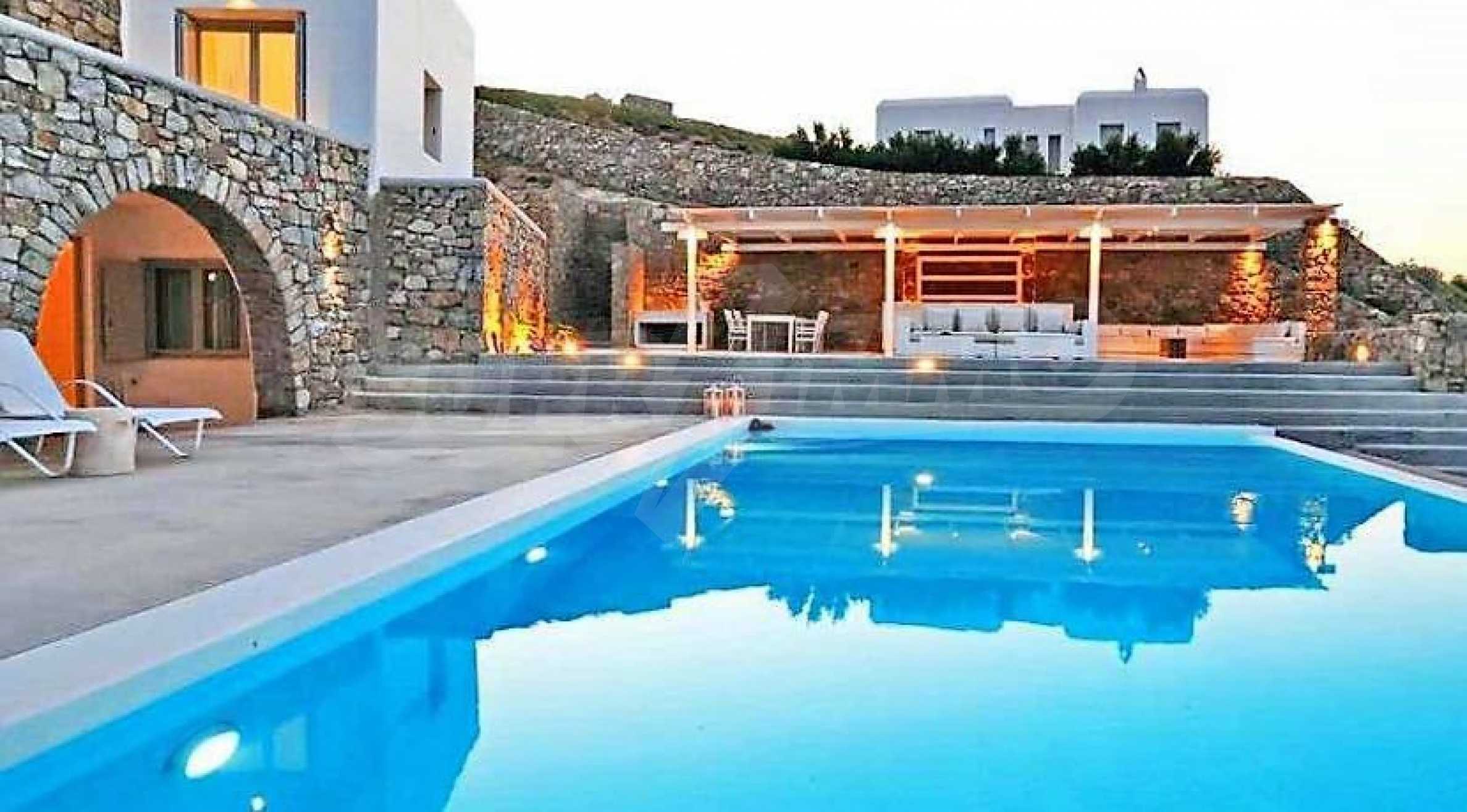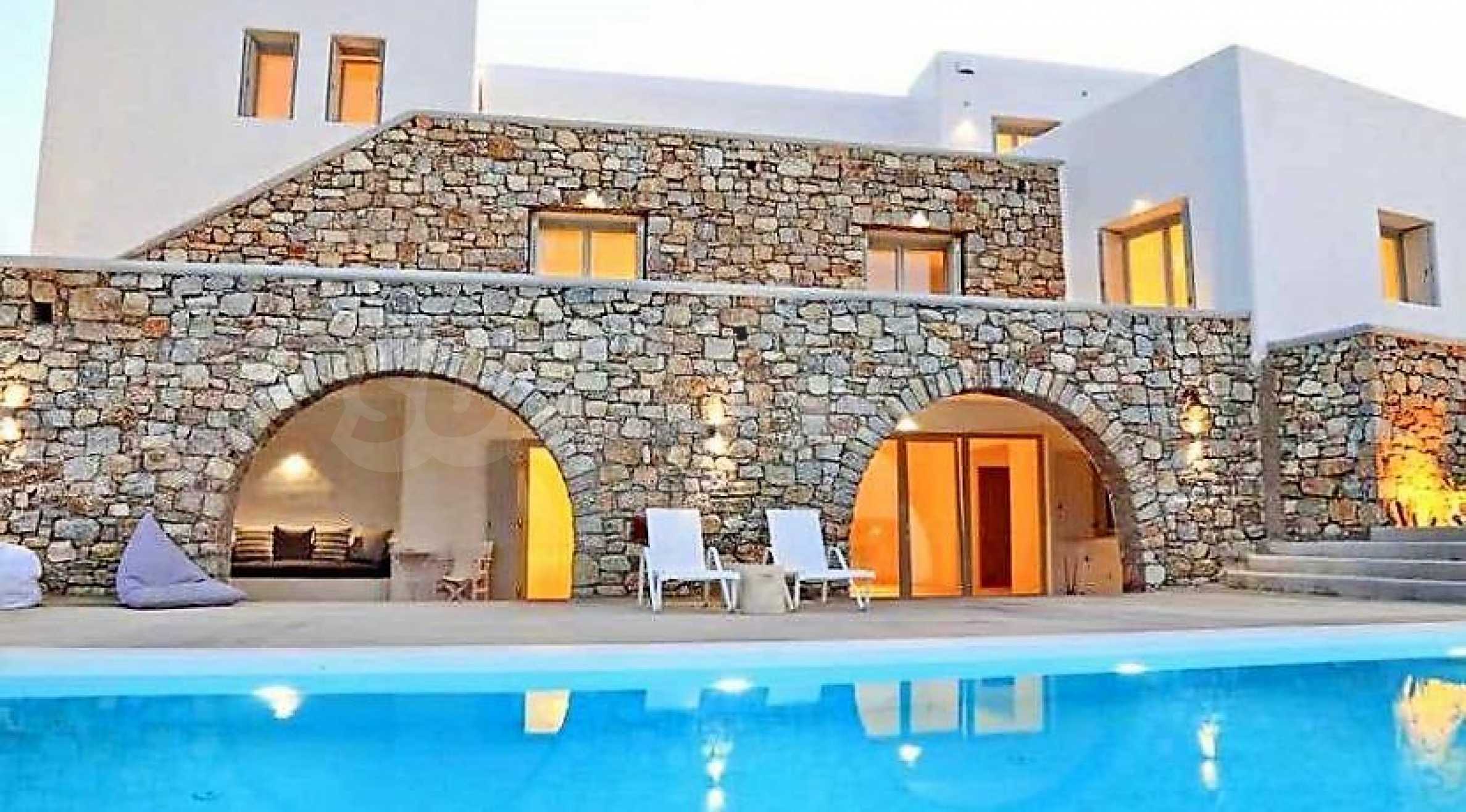 Wir präsentieren Ihnen eine große Villa mit einem beeindruckenden Erscheinungsbild und beneidenswerten Parametern auf der Insel Mykonos. Mit atemberaubendem Blick auf den Pool und weitem Blick auf die weite Ägäis beeindruckt dieses Ferienobjekt mit seiner Natursteinfassade, seiner spezifischen Vision und seinem funktionalen Layout. Mit seinem endlosen Blick auf Delos, Hora und den Horizont bietet das Haus eine bemerkenswerte und dennoch einfache Innenausstattung mit Elementen und Details des traditionellen Kykladenstils.