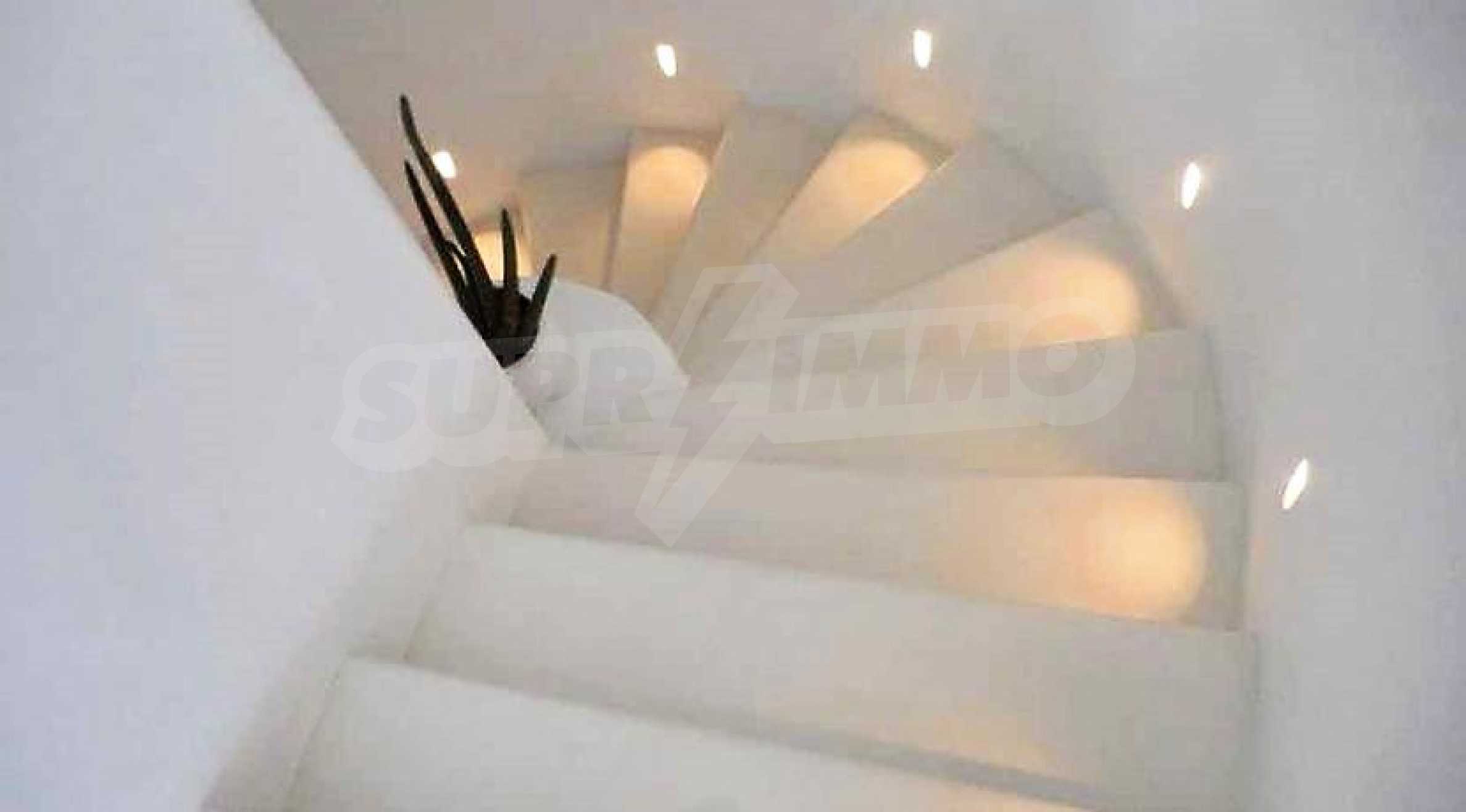 • 2. Ebene: Zwei separate Suiten mit einer Fläche von 60 m², jeweils mit eigenem Bad und Schrank; Drei Schlafzimmer mit einer Fläche von 30qm. bis zu 35 m² mit eigenem Bad; Bibliothek;