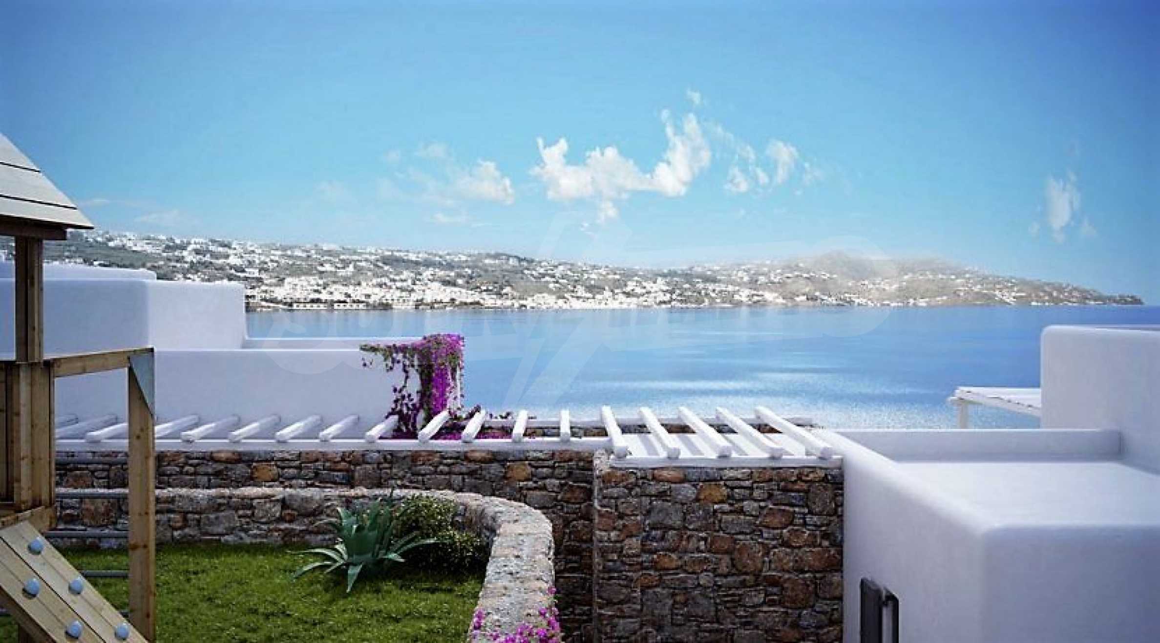 Es ist großartig und atemberaubend und bietet einen Panoramablick auf das kobaltblaue Ägäische Meer, die Hauptstadt von Mykonos Chora, das kleine Venedig, die berühmten Windmühlen und den alten Hafen.