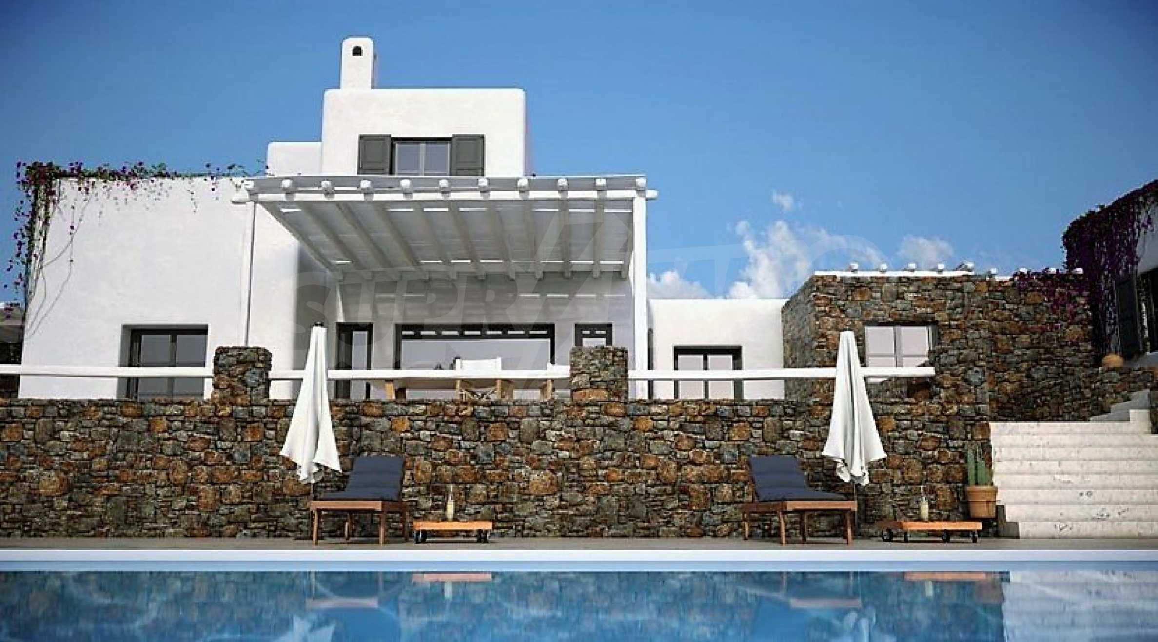 Majestätisch und monolithisch, im typischen kykladischen Stil erbaut, mit außergewöhnlicher Aufmerksamkeit und Liebe zum Detail im Außen- und Innenbereich, ist es ein Maßstab für mykonischen Luxus!