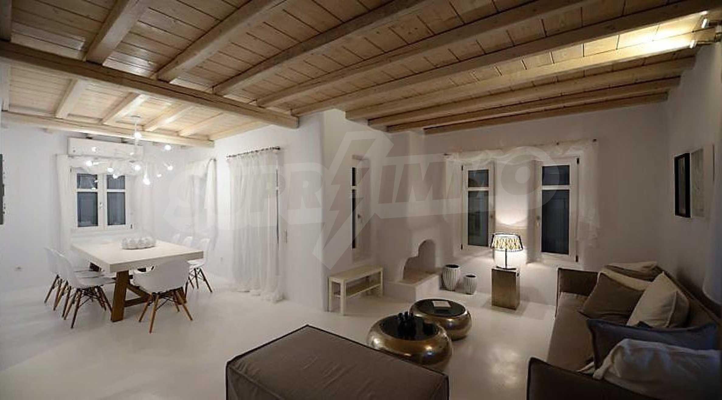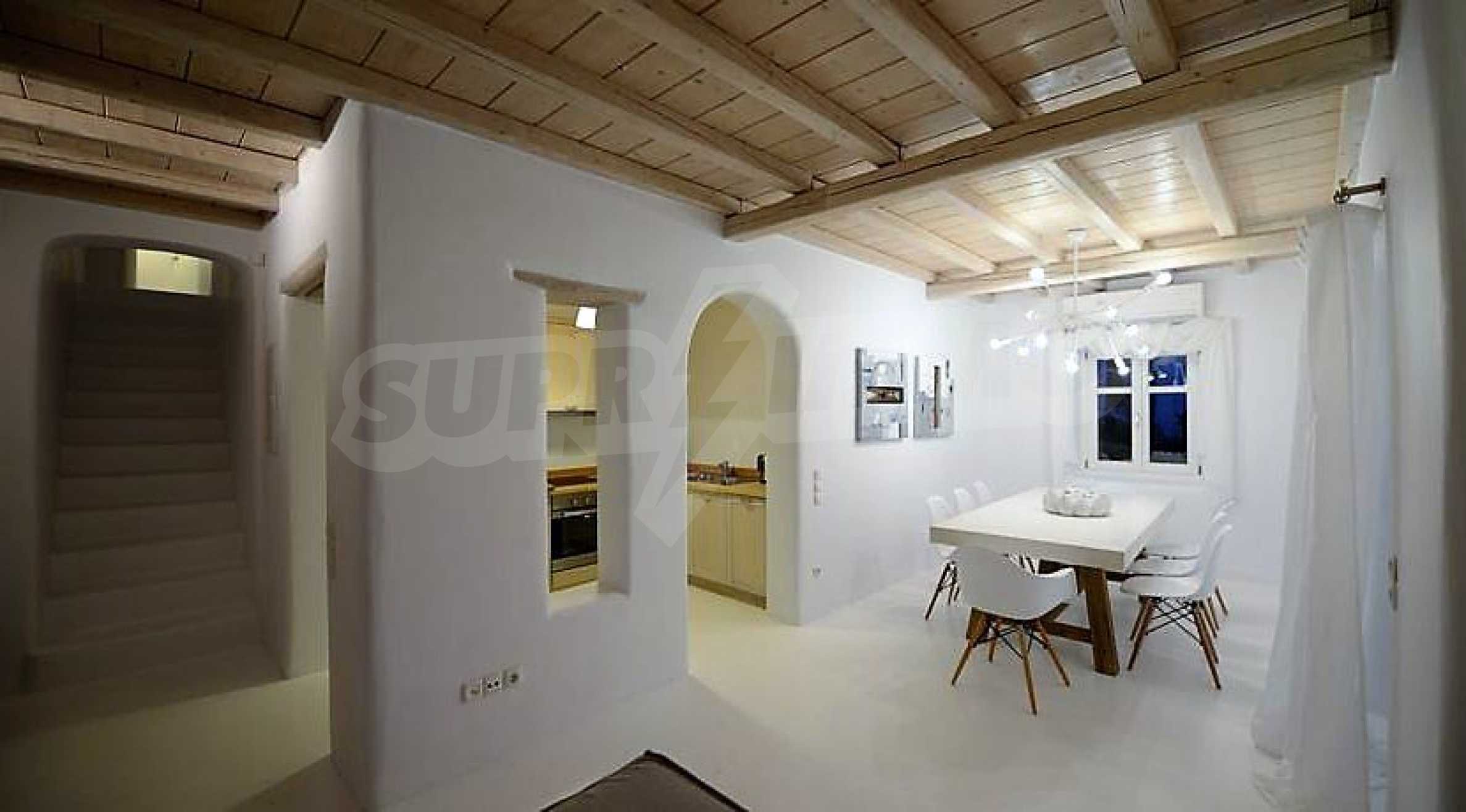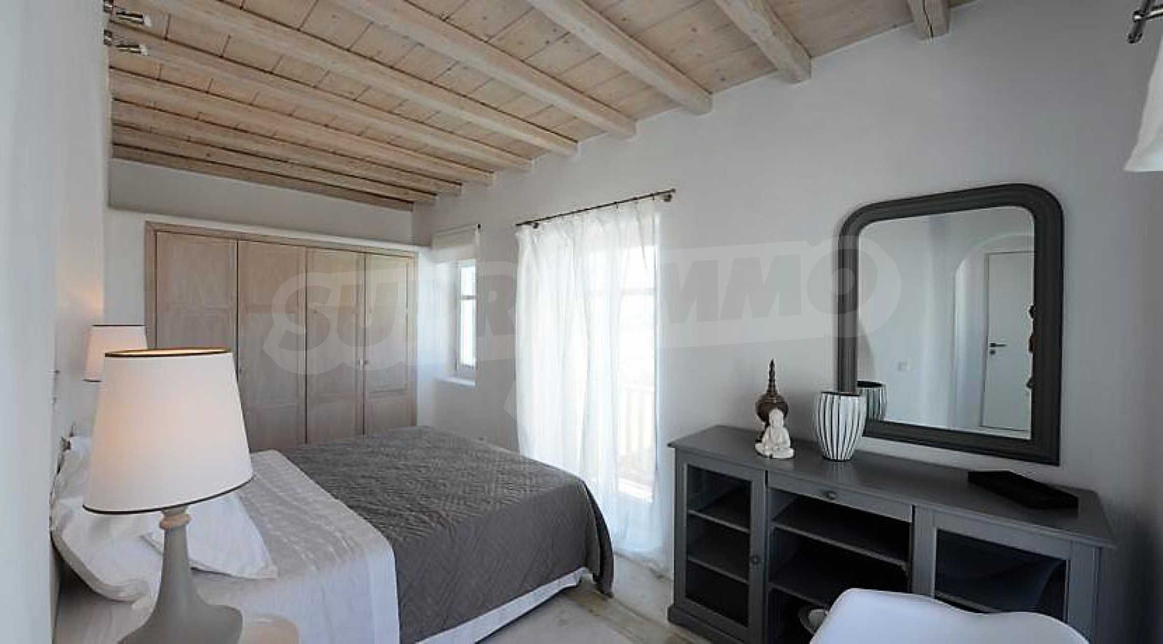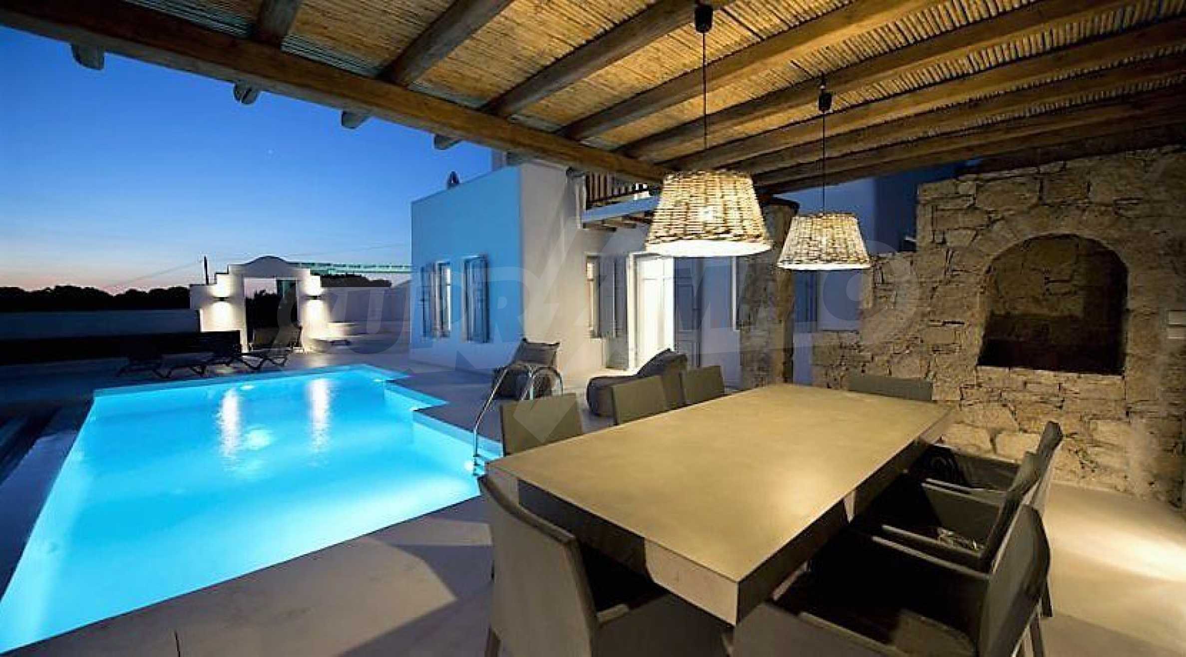 Die Villa wird komplett möbliert mit Designermöbeln und Accessoires angeboten, die wiederum außergewöhnlichen Perfektionismus, modernen Minimalismus mit der traditionellen Insel und kykladischer Architektur verbinden.