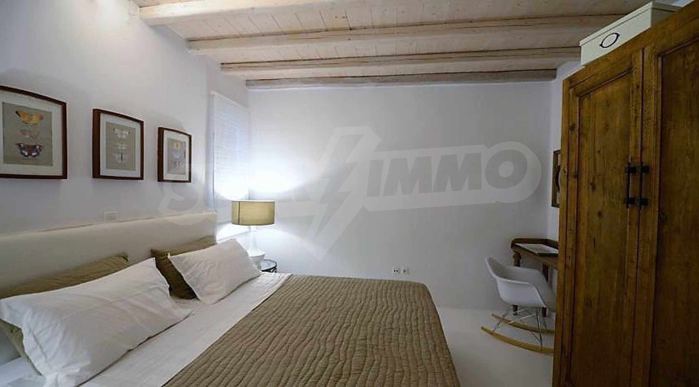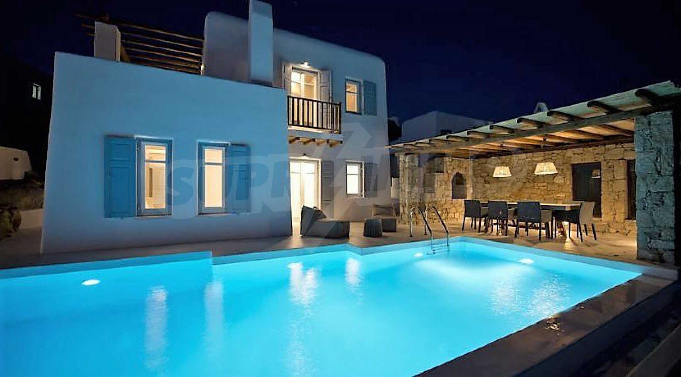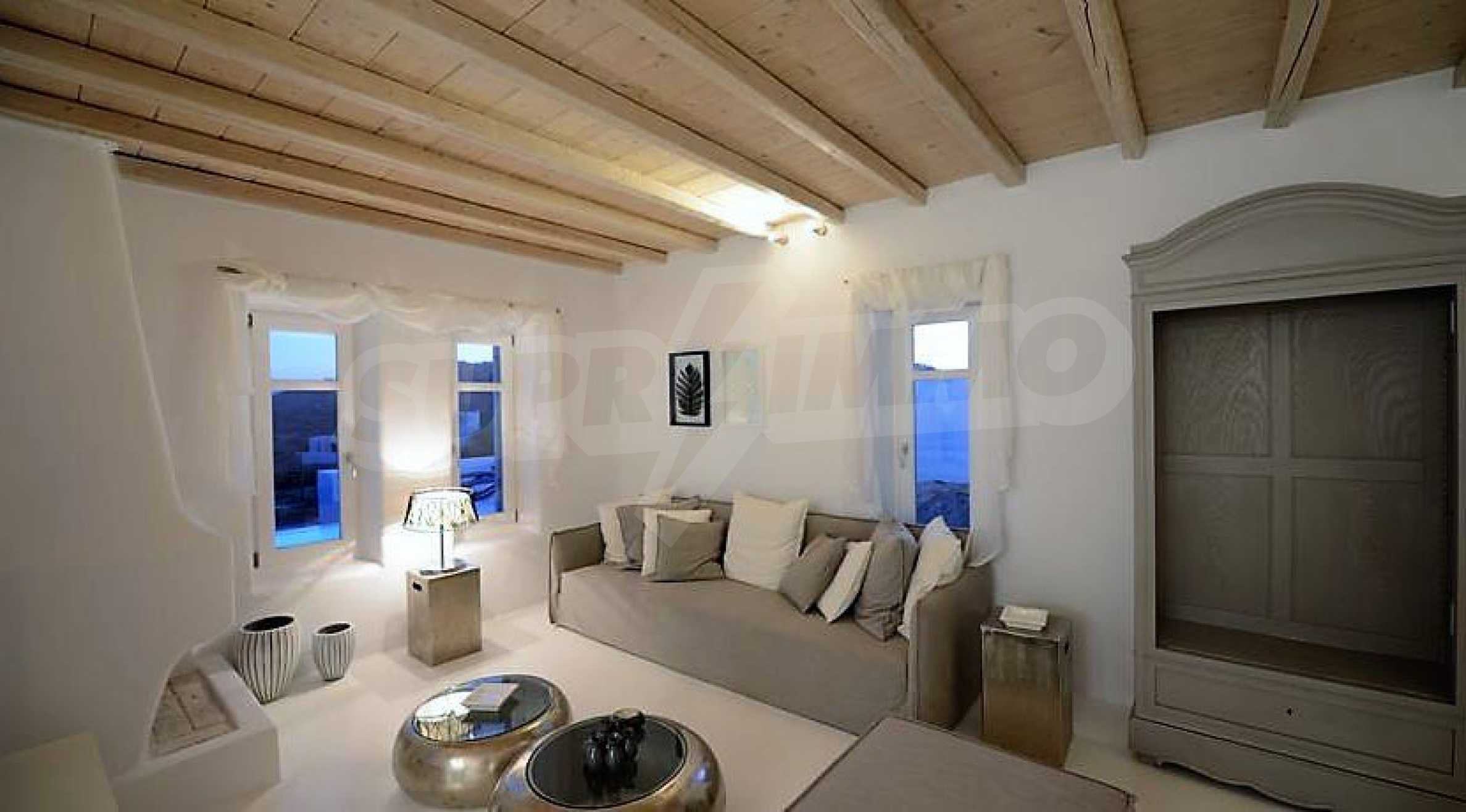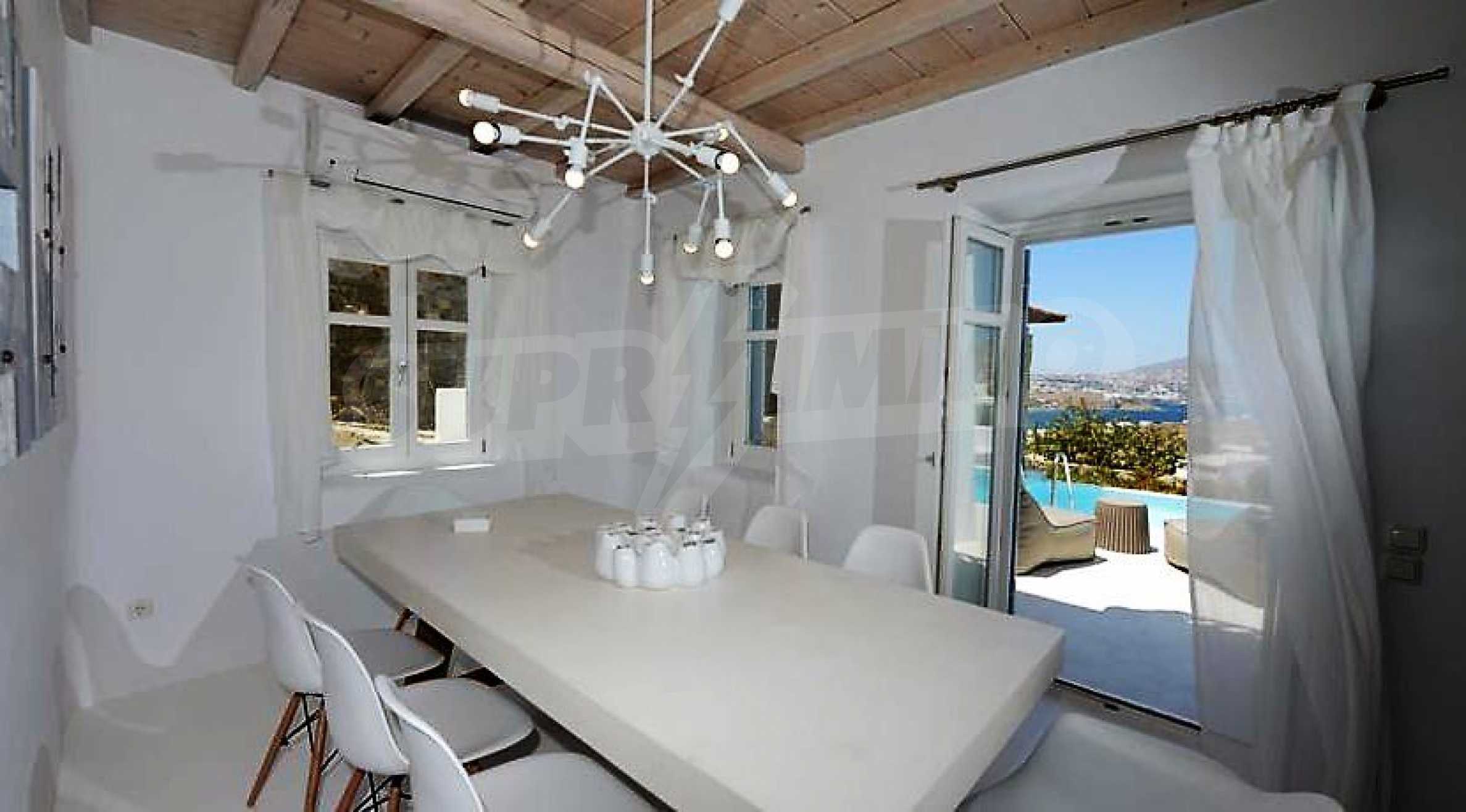 Die Villa wird komplett möbliert mit Designermöbeln und Accessoires angeboten, die wiederum außergewöhnlichen Perfektionismus, modernen Minimalismus mit der traditionellen Insel und kykladischer Architektur verbinden.