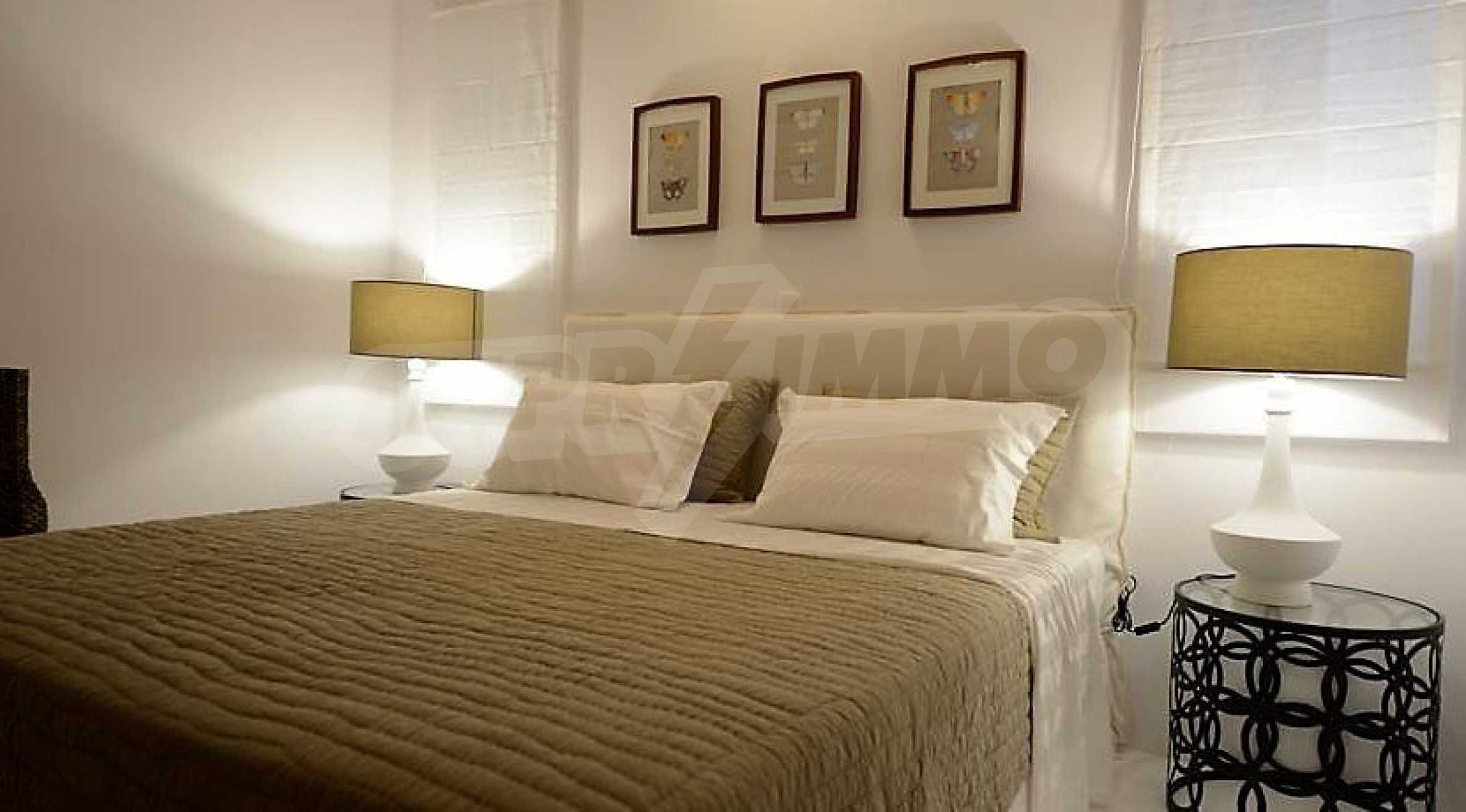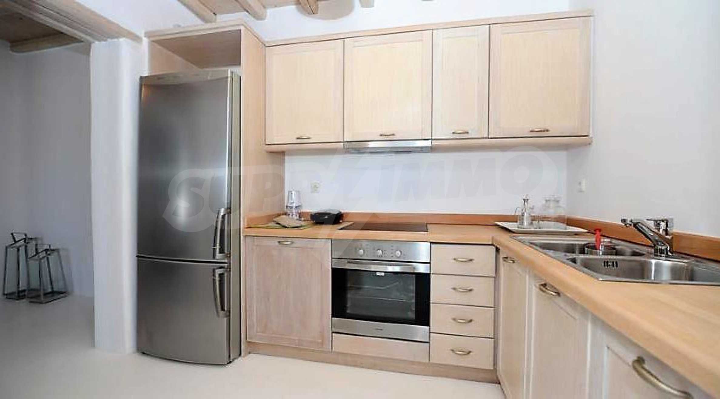 Mit einer Fläche von 149 Quadratmetern auf zwei Ebenen verfügt es über ein geräumiges Wohnzimmer (mit Kamin), eine Küche, ein Esszimmer, drei Schlafzimmer, drei Badezimmer und eine Toilette, einen Garten und einen privaten Infinity-Pool.