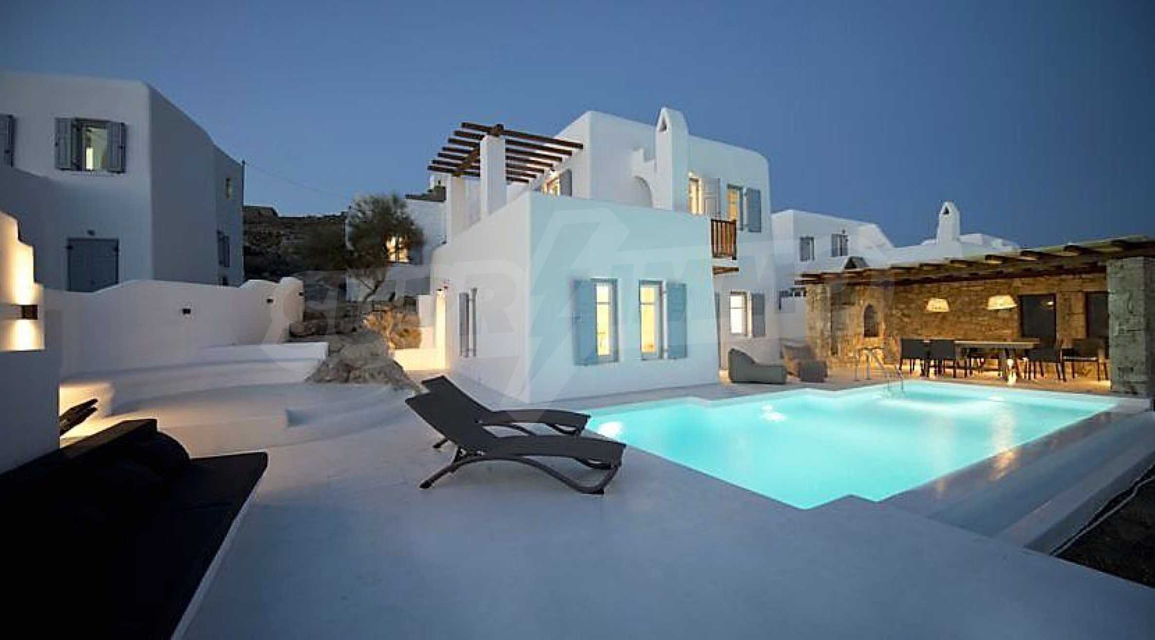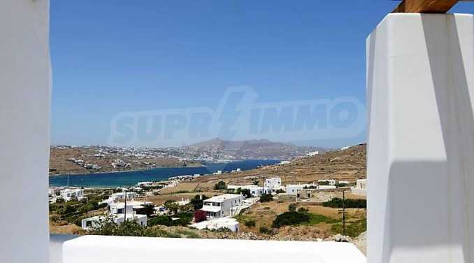 Villa in einem Komplex auf einem Amphitheatergrundstück von 5500 m², in der Gegend von Ornos Bay, Mykonos Island, in Strandnähe und freiem Panoramablick auf das Meer.