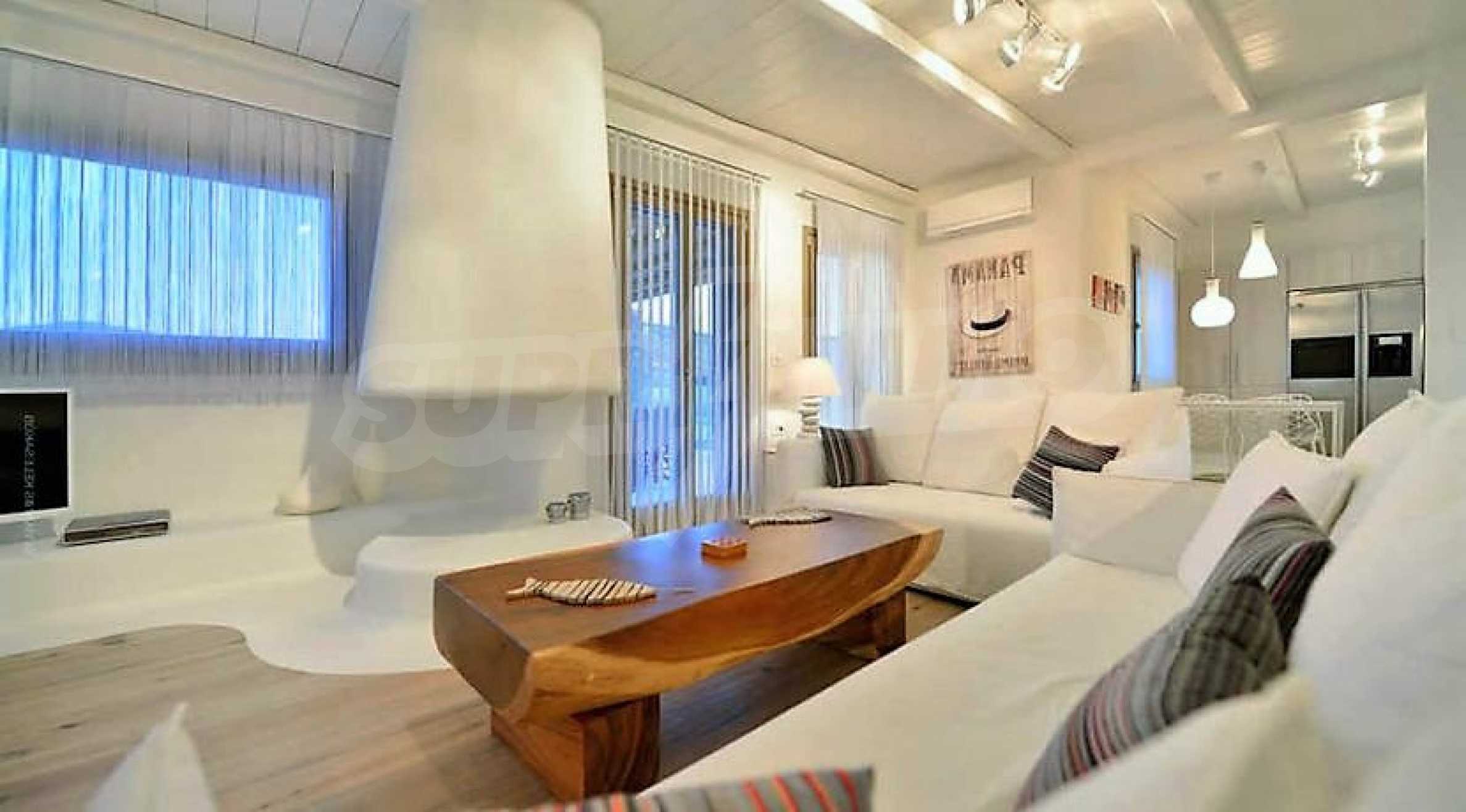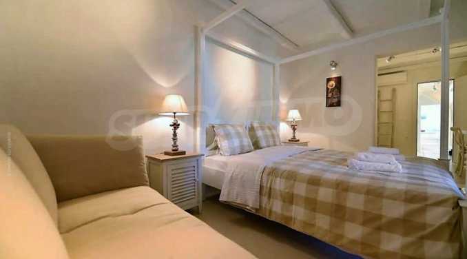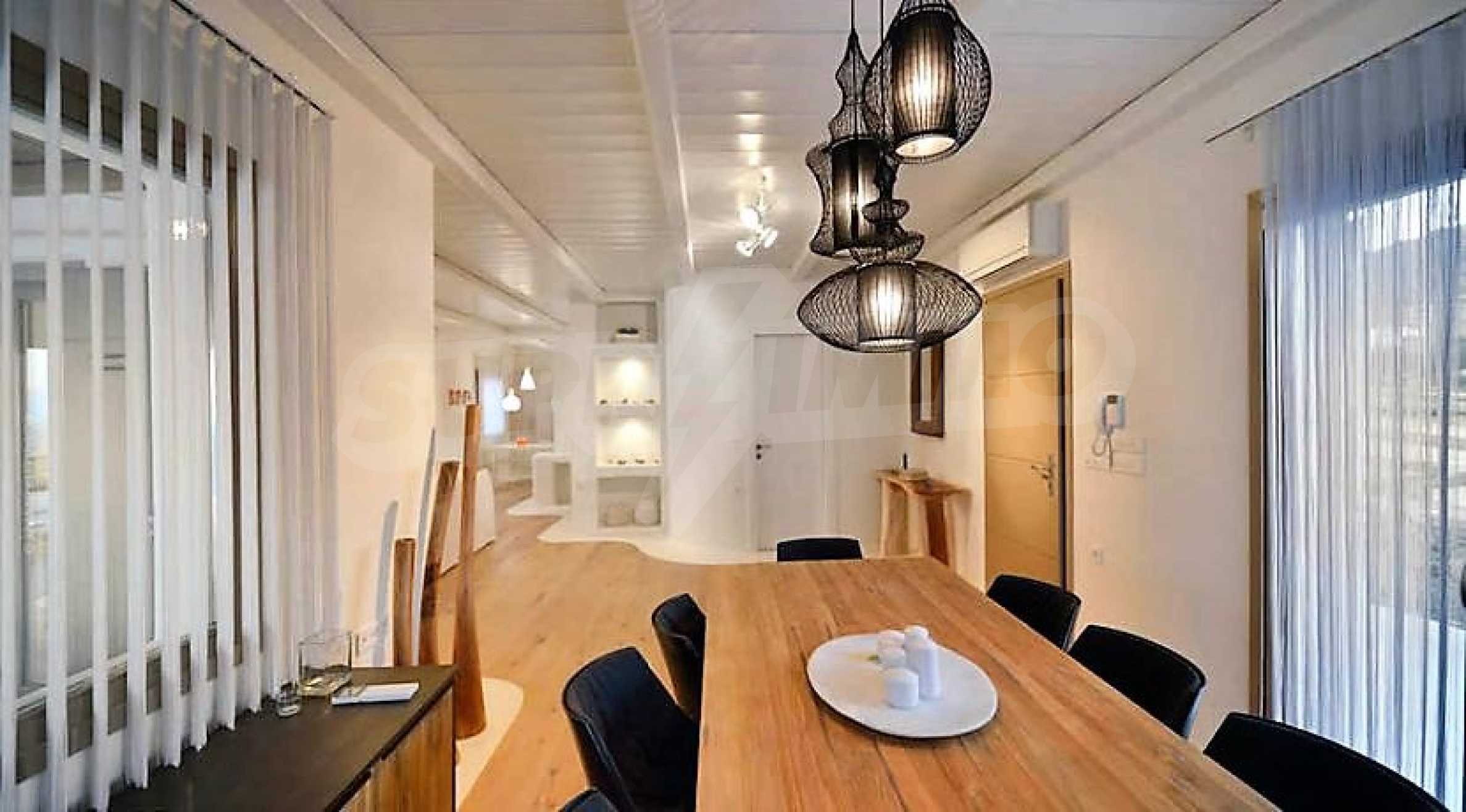 Es wurde in einem für die Region typischen Baustil erbaut und ist eine erstaunliche Symbiose aus altem Traditionalismus und modernistischem Minimalismus. Traditionen und Modernität sind gekonnt in jedes Detail des Innen- und Außenbereichs der Villa eingewoben und schaffen eine einzigartige Atmosphäre voller Eleganz und Raffinesse in jeder Ecke des Anwesens.