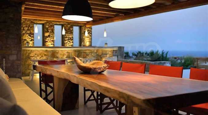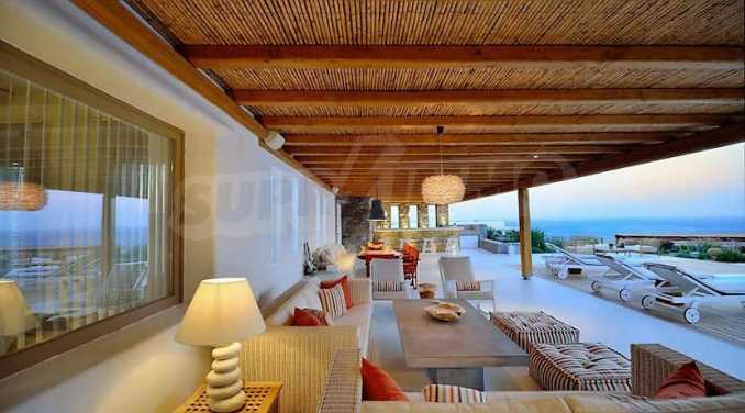 Die ausgezeichnete Lage, der geräumige Garten, der Pool, die große Veranda mit einer hölzernen Pergola, unter der sich ein Wohnzimmer im Freien befindet, zwei Speisesäle, eine Bar und ein Grill, der endlose Panoramablick auf die weite Ägäis ergänzen die unbestreitbaren Eigenschaften der Villa perfekt.