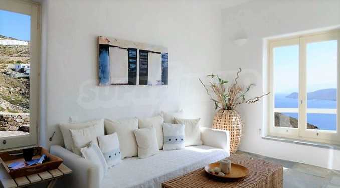 Das Hotel liegt auf einem Grundstück von 8000 qm. und nur 300m. Vom Strand aus bietet das Anwesen einen atemberaubenden Blick auf die Bucht von Ftelia und befindet sich gegenüber den Sandstränden von Panormos und Agios Sostis in einem Gebiet, in dem Neubauten nicht gestattet sind. Erbaut im typischen Inselstil, mit Holzfassaden und Kykladenstein, ist der eigene Infinity-Pool, der optisch mit der Ägäis verschmilzt, voll möbliert. Wie ein Boutique-Hotel zeichnet sich die Villa durch Luxus und Eleganz aus.