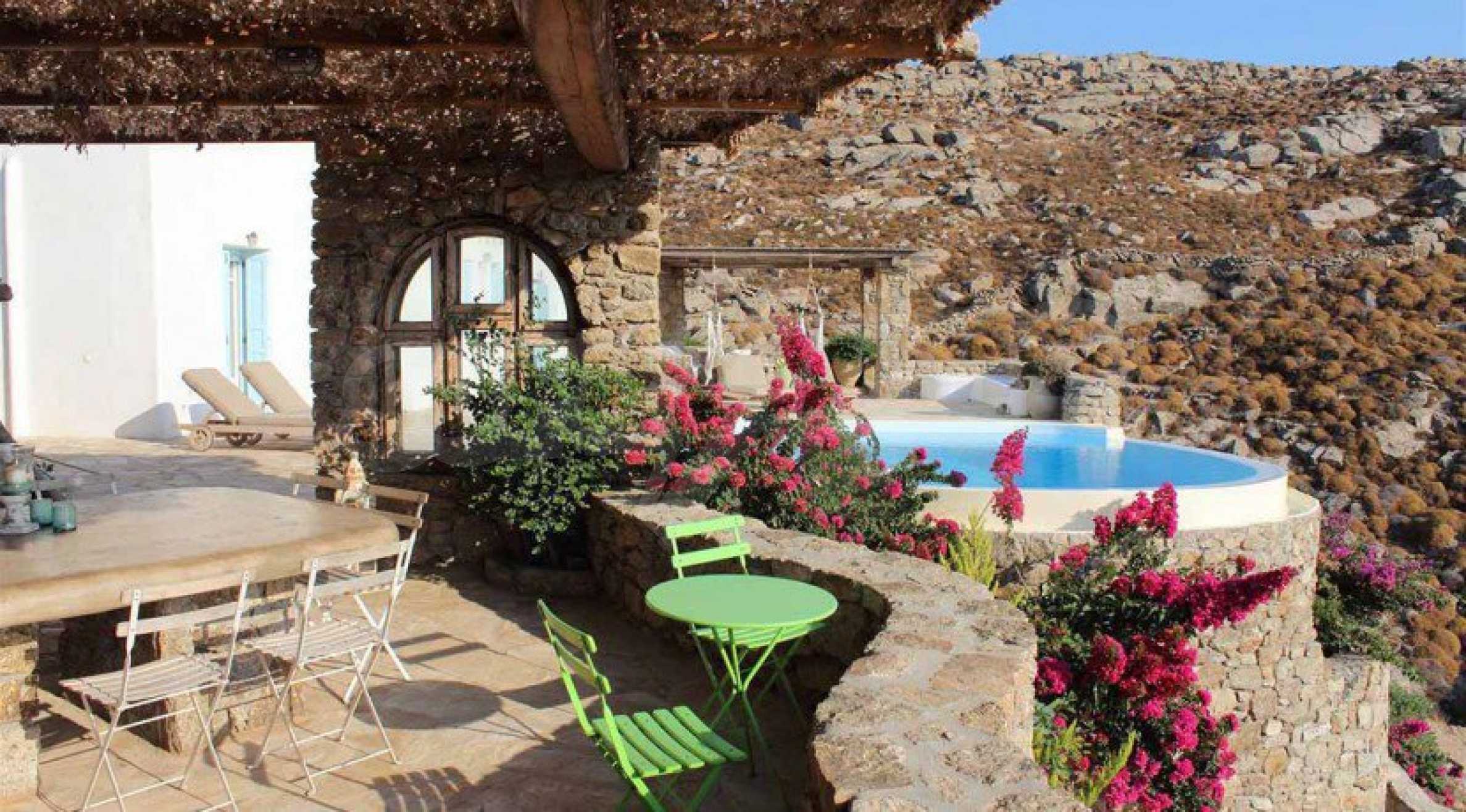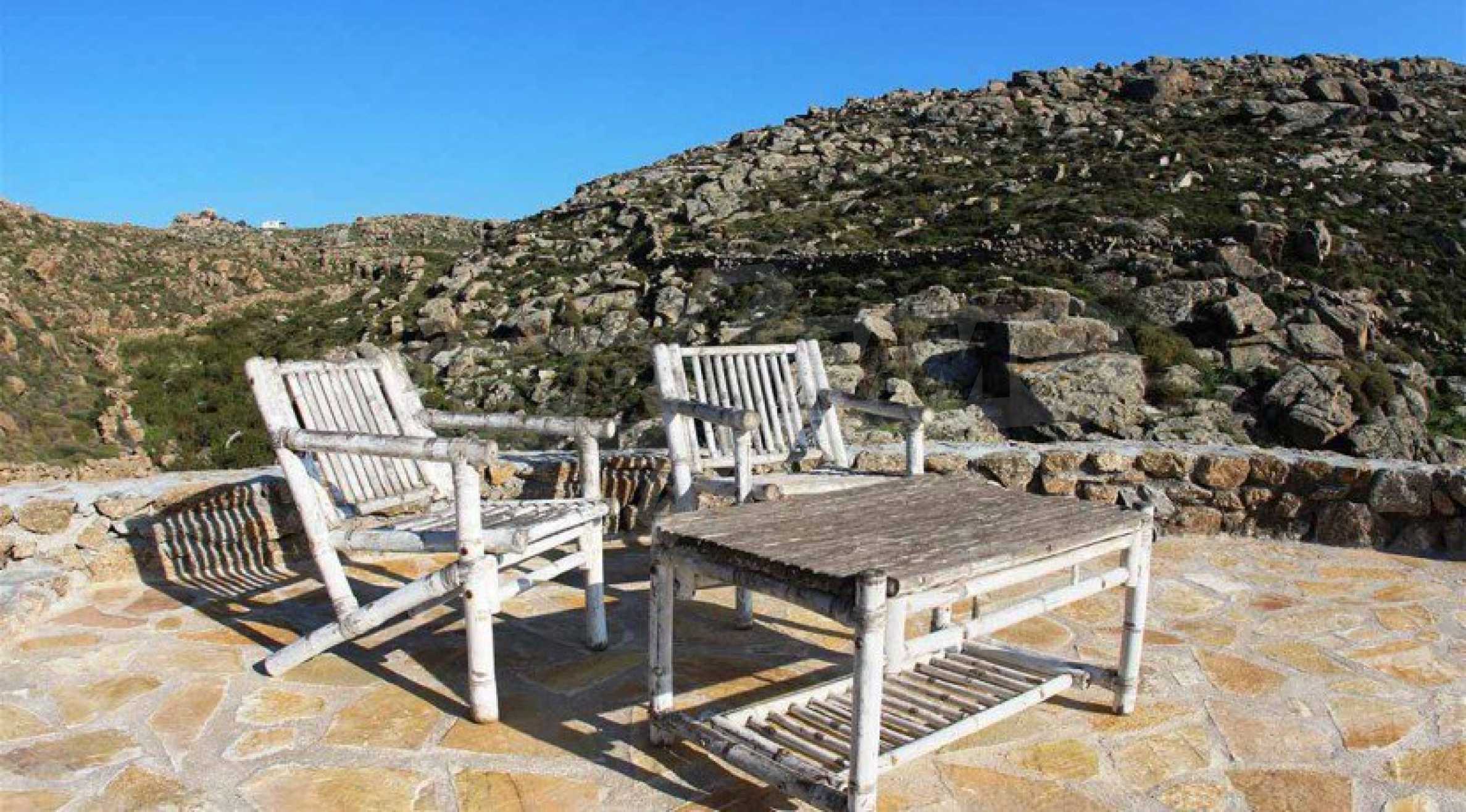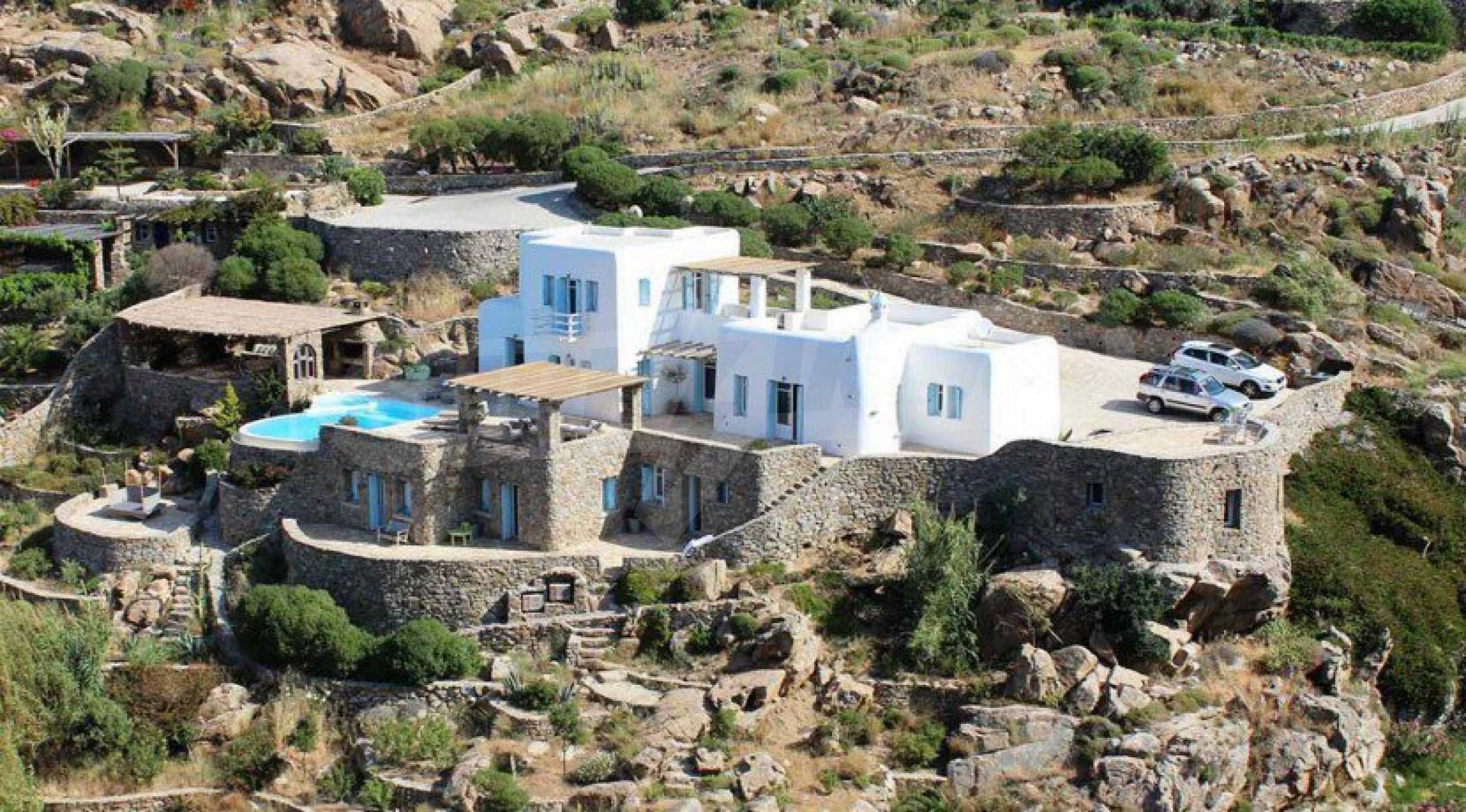 Atemberaubende Villa mit einer Fläche von 280 m², erbaut auf einem Grundstück von 4500 m², erstaunlich gestaltet, um mit den umliegenden Hügeln zu verschmelzen. Die majestätische und amphitheaterartige Lage des Anwesens bietet von jeder Ecke des Herrenhauses einen freien Panoramablick auf die Umgebung und die weite Ägäis. Die Villa kombiniert traditionelle kykladische Architektur mit rustikalen Möbeln und bietet hohe Ästhetik, Gemütlichkeit und Komfort.