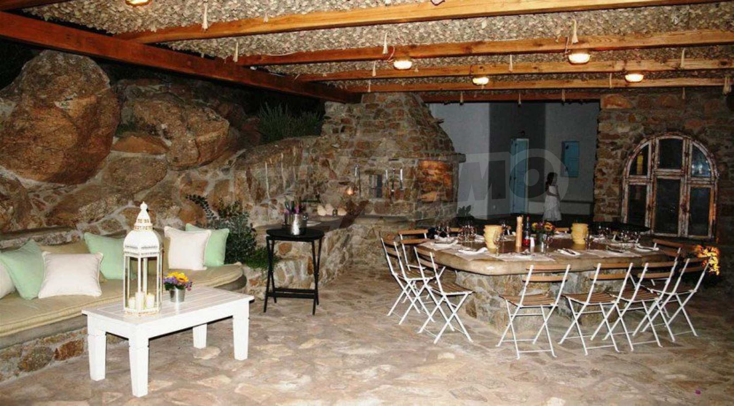 Ganz zu schweigen von dem perfekt gestalteten Äußeren des Anwesens, dem Infinity-Pool mit Whirlpool, den entspannenden Außenbereichen, dem Wohnzimmer im Freien mit Essbereich und den Hügeln mit duftenden mediterranen Kräutern, die das Gefühl der Einzigartigkeit und einen Hauch von Paradies ergänzen.