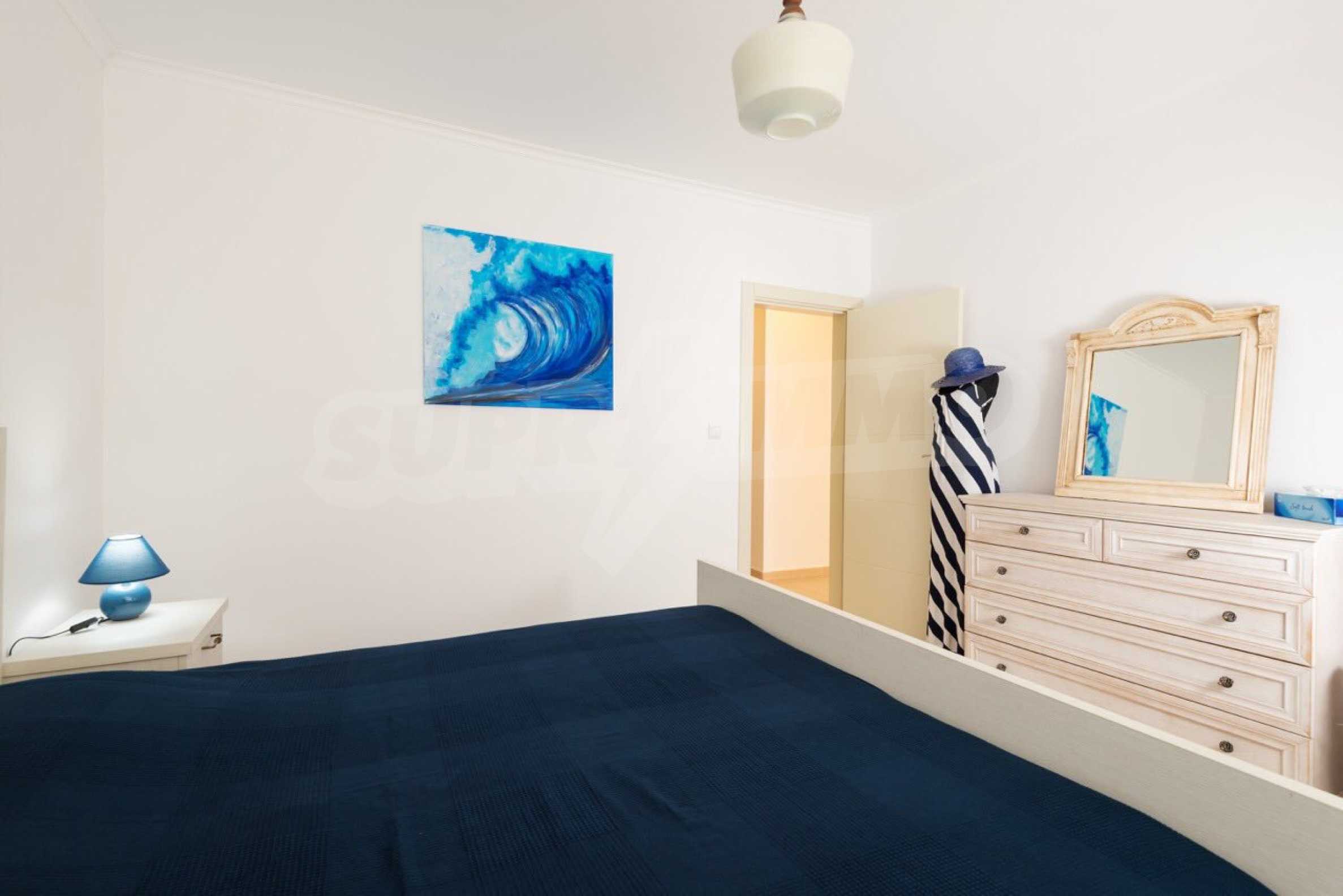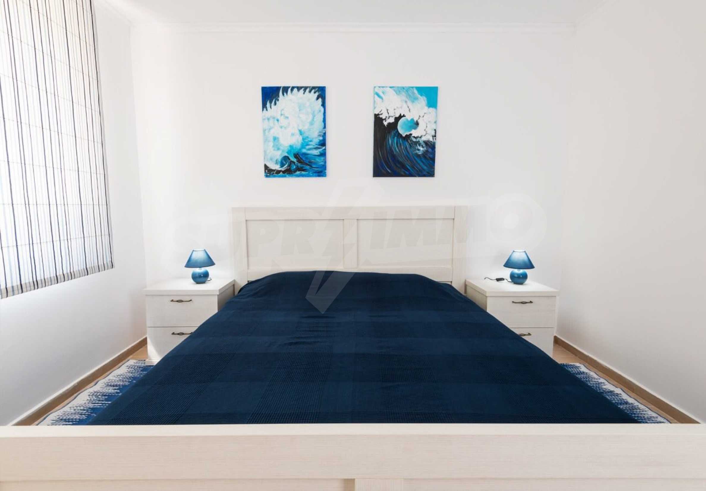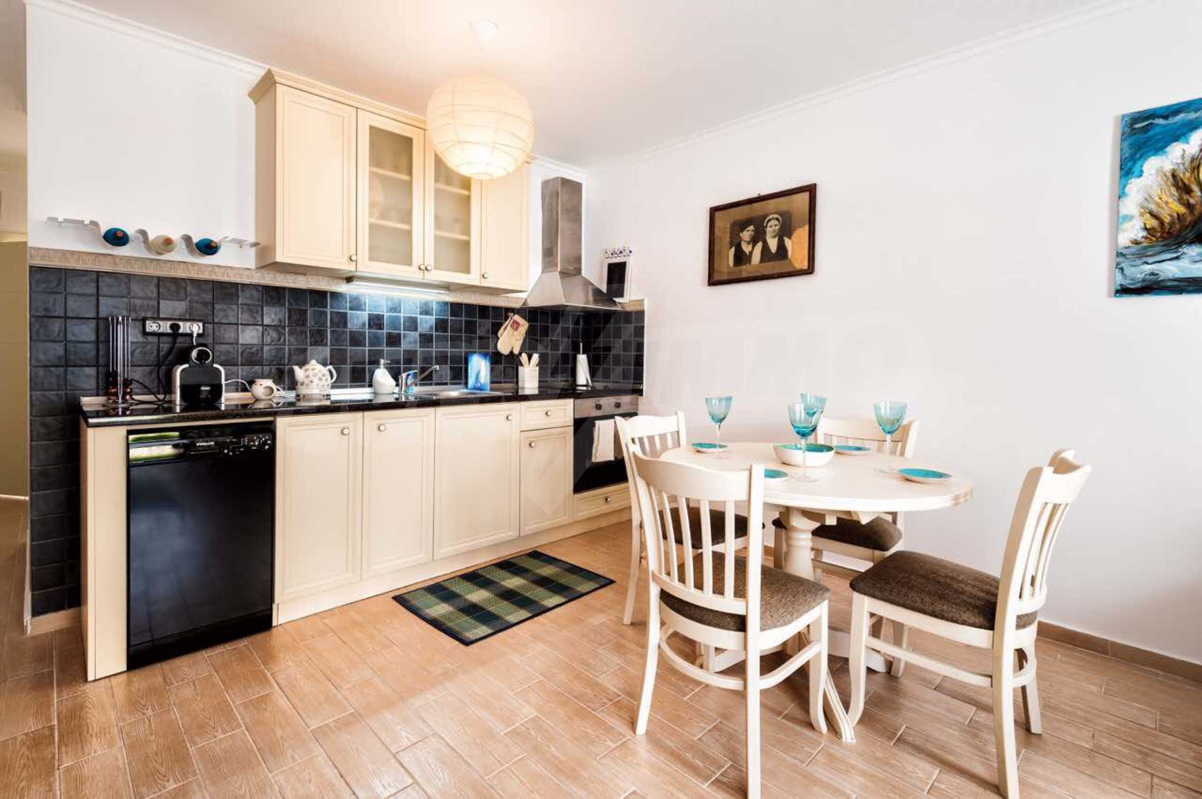 Wir bieten Ihnen ein Apartment mit 2 Schlafzimmern und Boutique-Möbeln in einem luxuriösen Apartmentkomplex im Ferienort Chernomorets. Das Anwesen genießt eine günstige Lage (nur 250 Meter vom Strand entfernt), ein stilvolles Innendesign und viele Annehmlichkeiten in der Anlage.