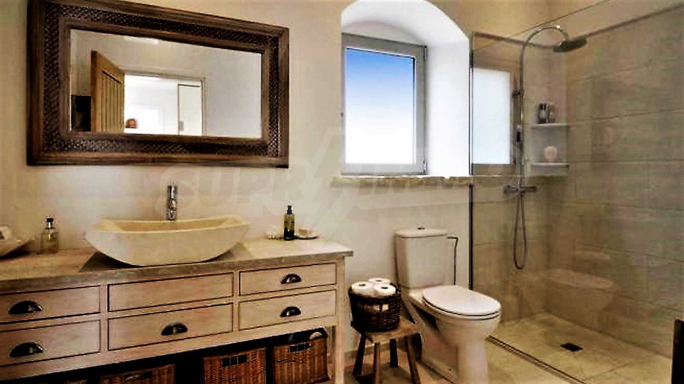 Das Äußere besticht durch seine exquisite Steinfassade und den raffinierten traditionellen Stil. Die Immobilie ist ein leuchtendes Beispiel dafür, was erreicht werden kann, wenn das Detail nicht nur im Design, sondern auch in der Konstruktion im Vordergrund steht. Die 60 cm dicken Wände bieten eine natürliche Wärmedämmung und verbessern das Gefühl von Kühle im Sommer und Wärme im Winter. Der gesamte Bau der Villa, die Fußbodenheizung, die Steinterrassen und die angrenzenden Wände werden mit höchstem Verarbeitungsstandard und unverwechselbaren individuellen Designmerkmalen ausgeführt.