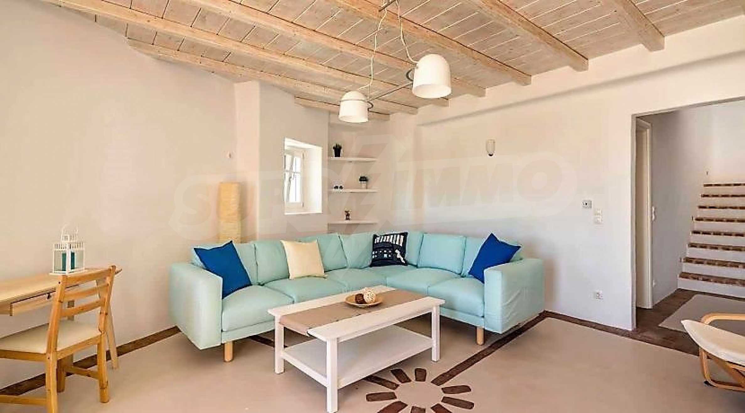 Das Haus verfügt über ein Wohnzimmer, ein Esszimmer und eine Küchenzeile, drei Schlafzimmer und vier Badezimmer mit Toiletten sowie einen ähnlichen angrenzenden Hof des gemeinsamen Grundstücks. Das Haus steht zum Verkauf voll möbliert und kann in zwei Wohnungen aufgeteilt werden.