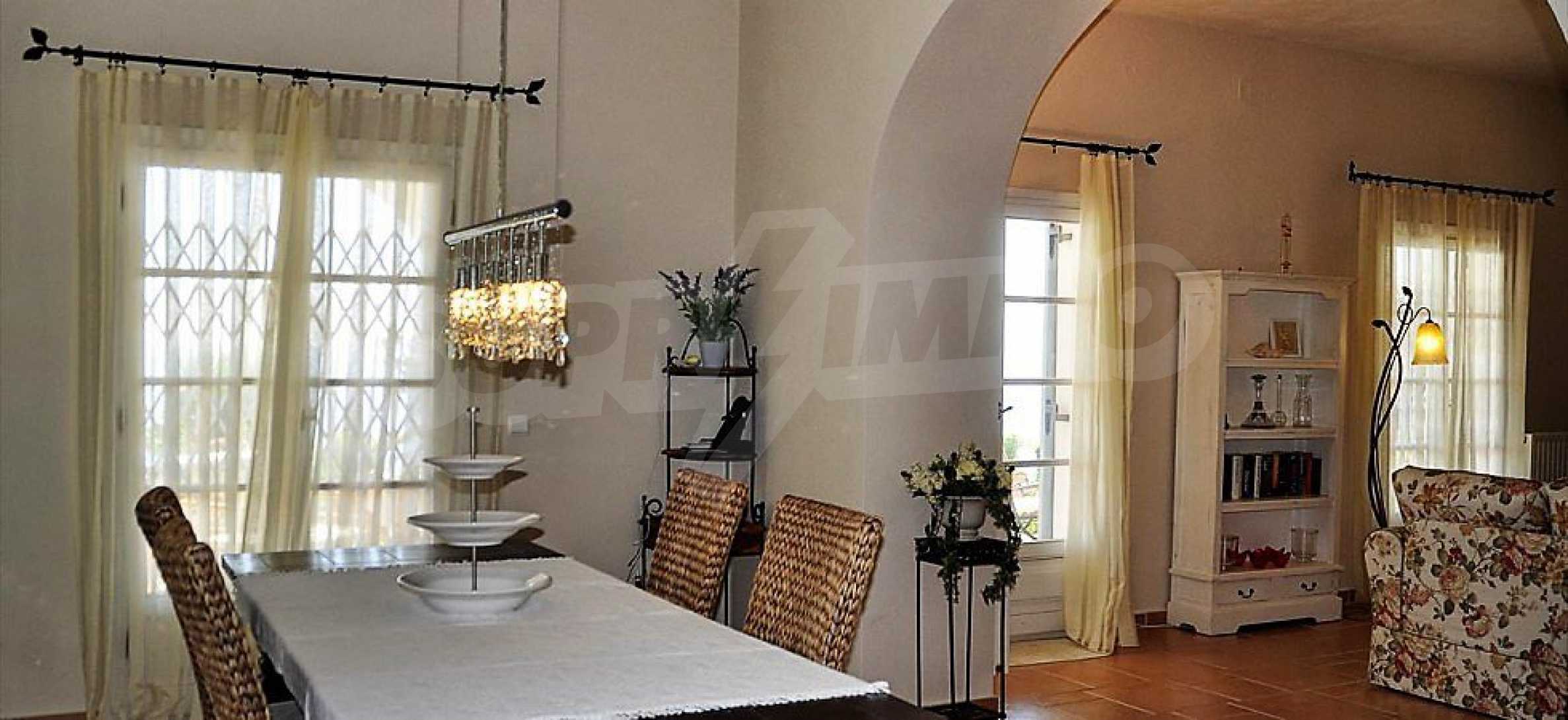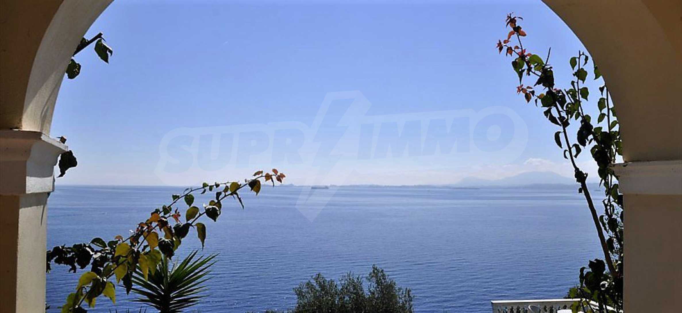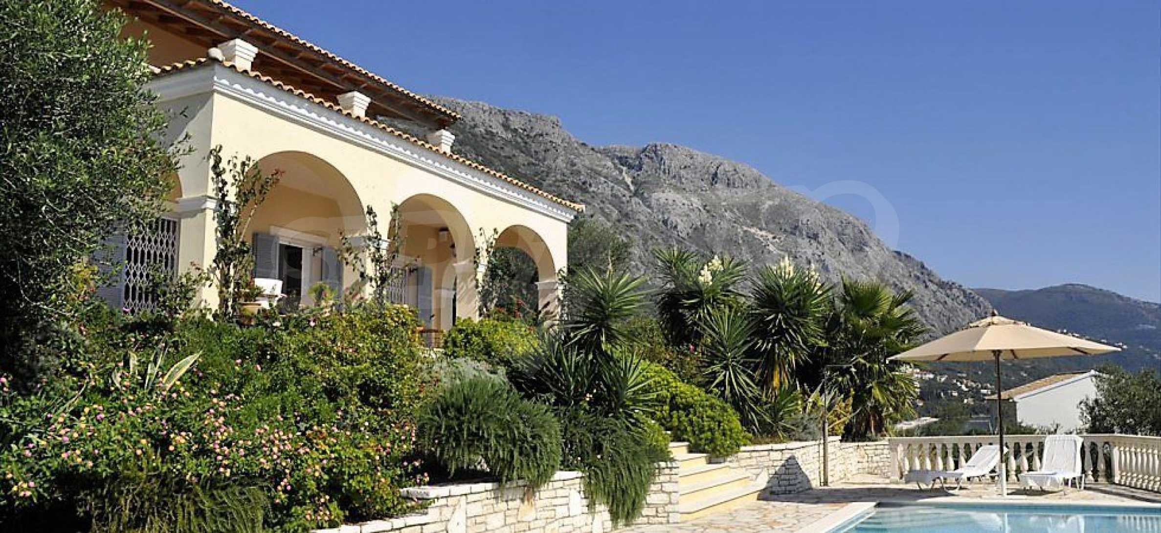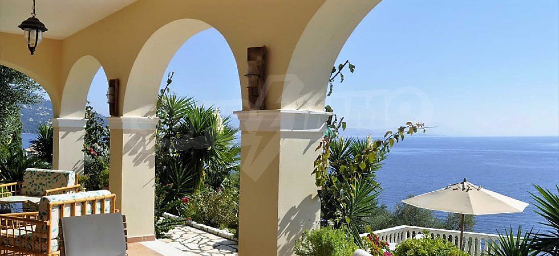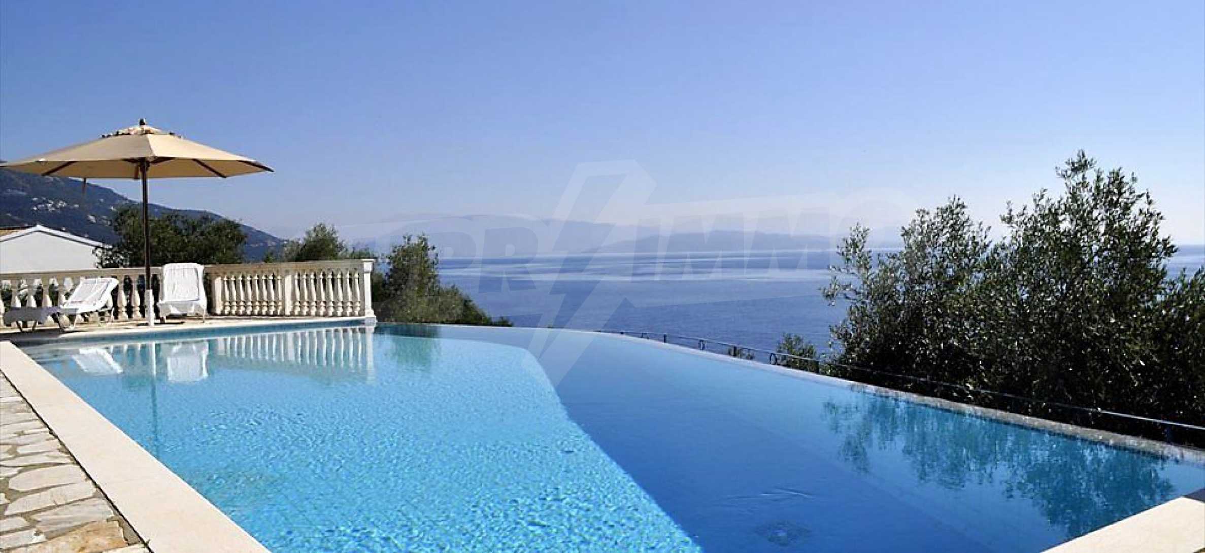 Die Villa, die sich über das Ionische Meer erhebt, wird mit ihrem mittelländischen Stil und Architektur gekennzeichnet, die mit dem gegenwärtigen und modernen Design kombiniert sind.