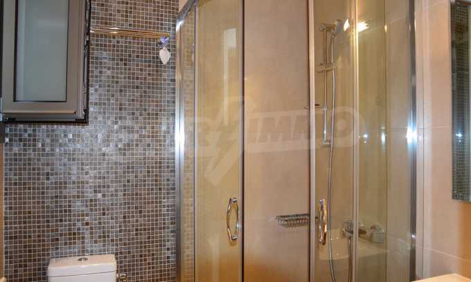 Ausgestattetes Badezimmer, Duschkabine, Trockner