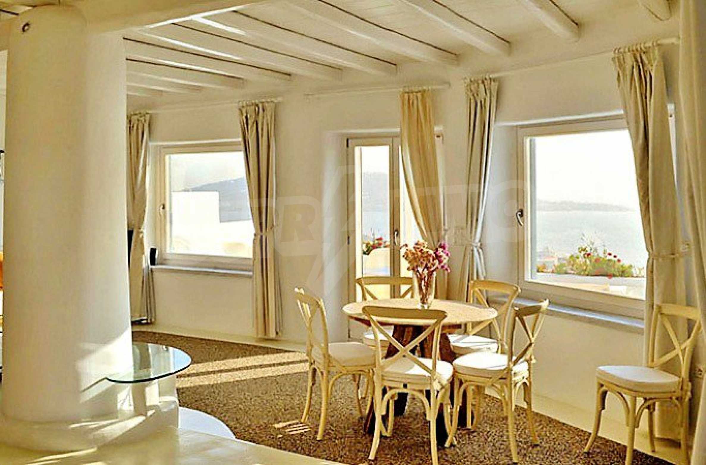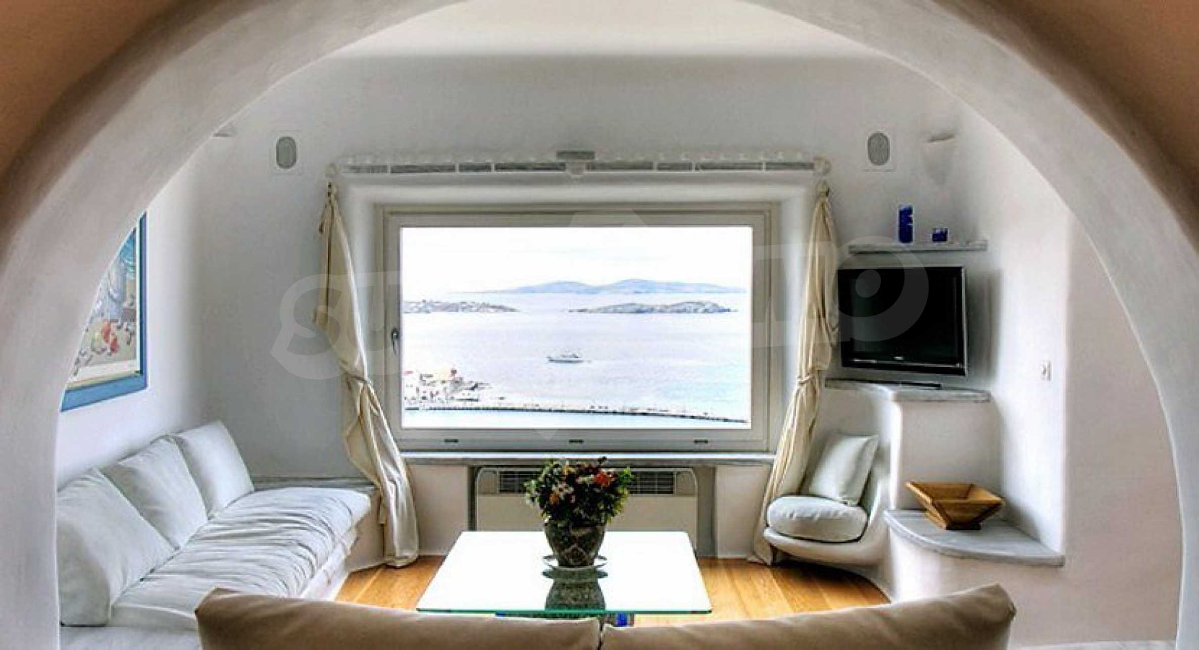 Wir präsentieren Ihnen eine prächtige Villa mit Panoramablick auf die Insel Mykonos und den alten Hafen der Insel. Die Villa kombiniert traditionelle lokale Architektur mit modernen Annehmlichkeiten. Das Anwesen ist ein idealer Ort während der Ferien in Griechenland. Genießen Sie Privatsphäre und gleichzeitig das berühmteste Nachtleben.