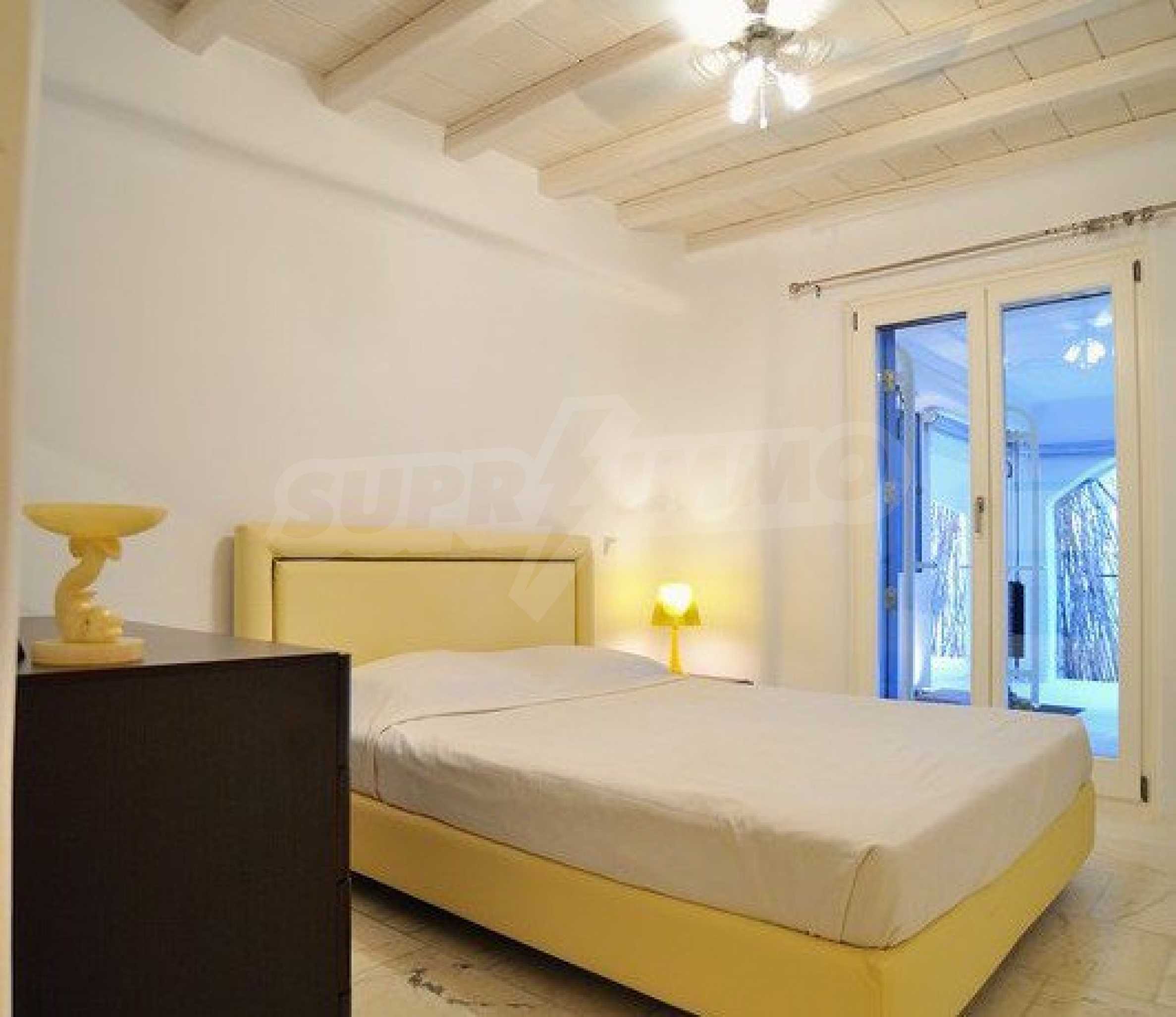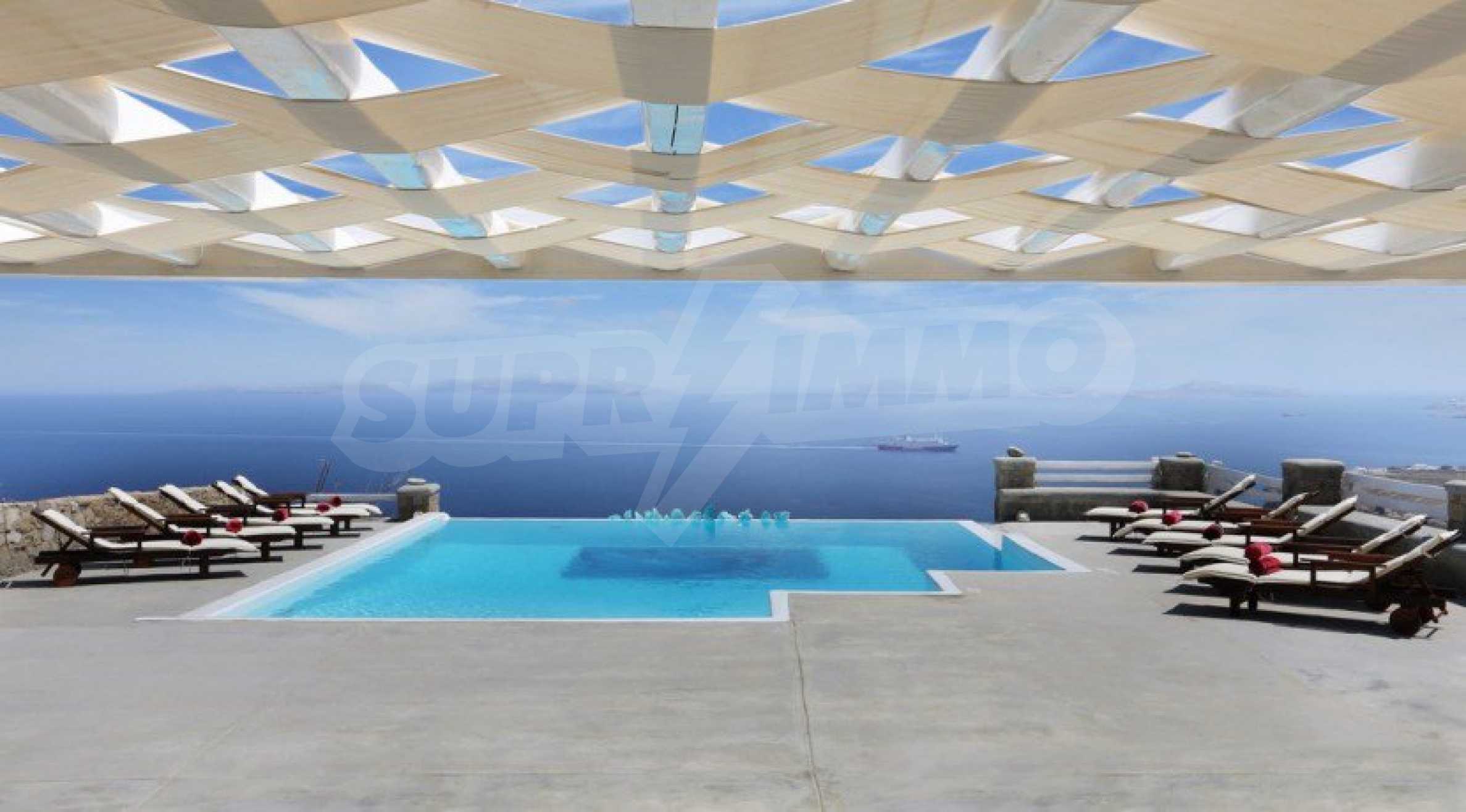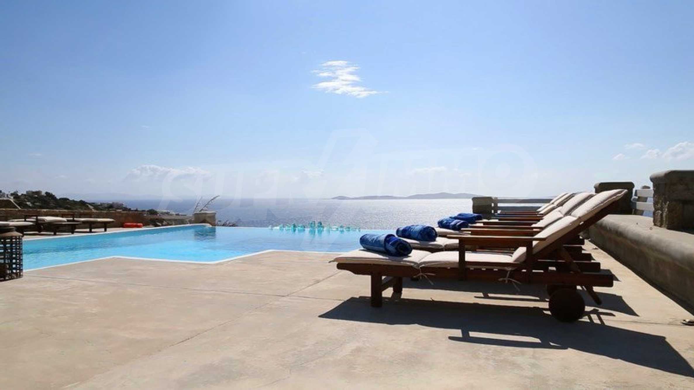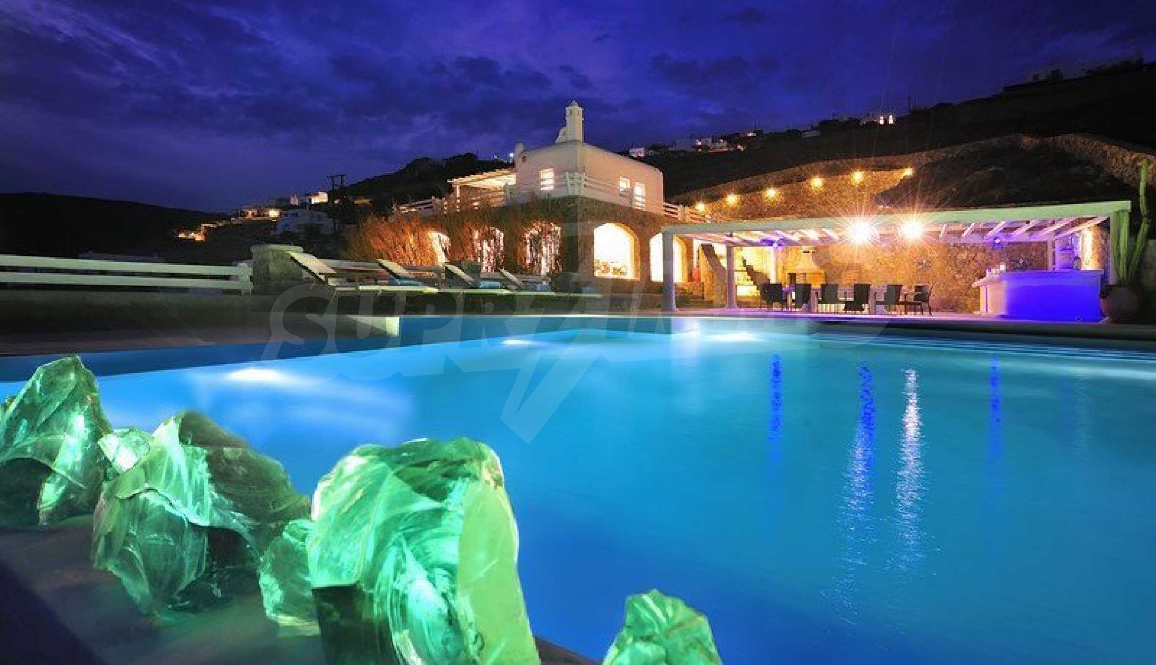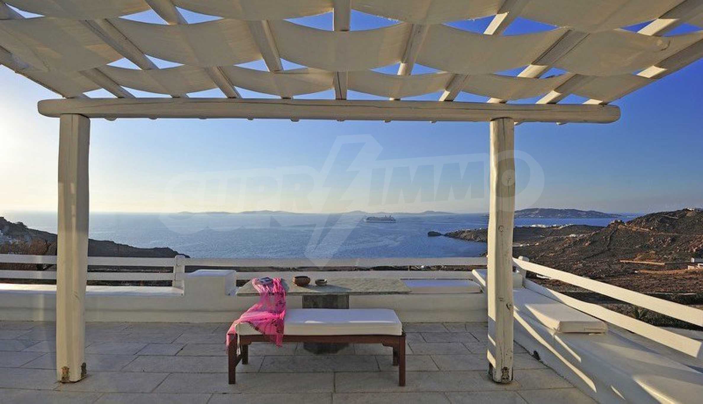 Wir präsentieren Ihnen eine Luxusimmobilie, die Teil der kykladischen Architektur ist und handverlesene Möbel im Geiste eines vielseitigen Stils bietet. Sie werden sich besonders fühlen und sich im warmen Wasser des Infinity-Pools und dem atemberaubenden Panoramablick auf das Meer entspannen. Wenn Sie ein wenig Lärm und Spaß brauchen, befindet sich die Villa in der Nähe der Stadt Mykonos, sodass Sie sich unter die Menge mischen und die Dynamik des Resorts steigern können.