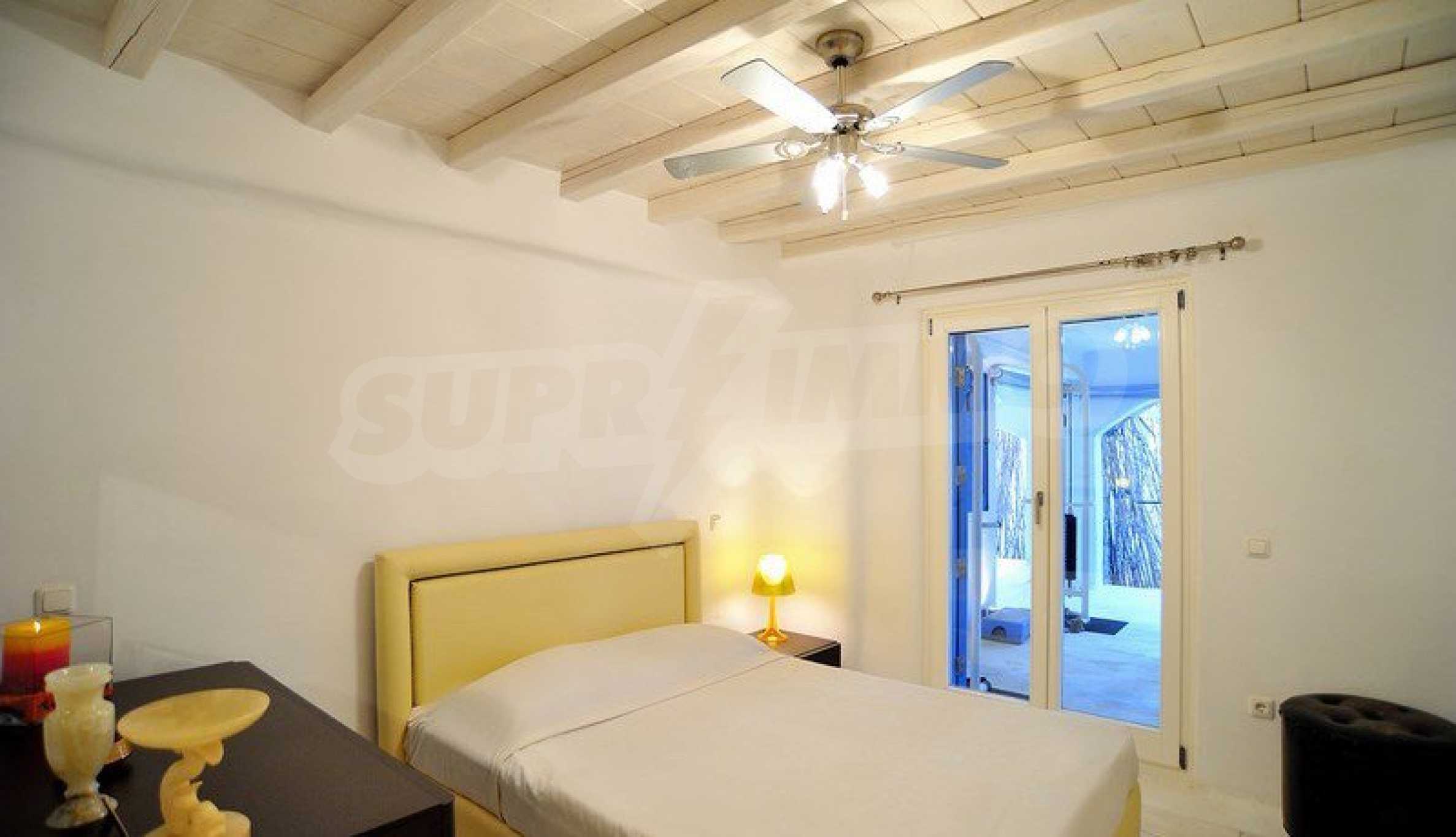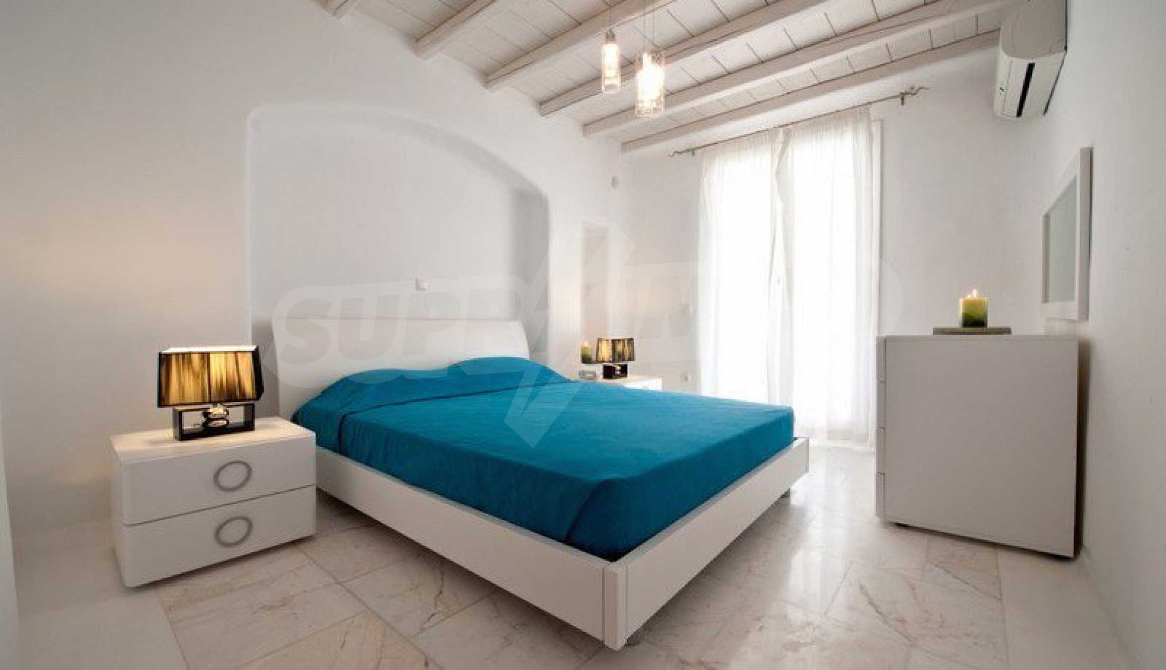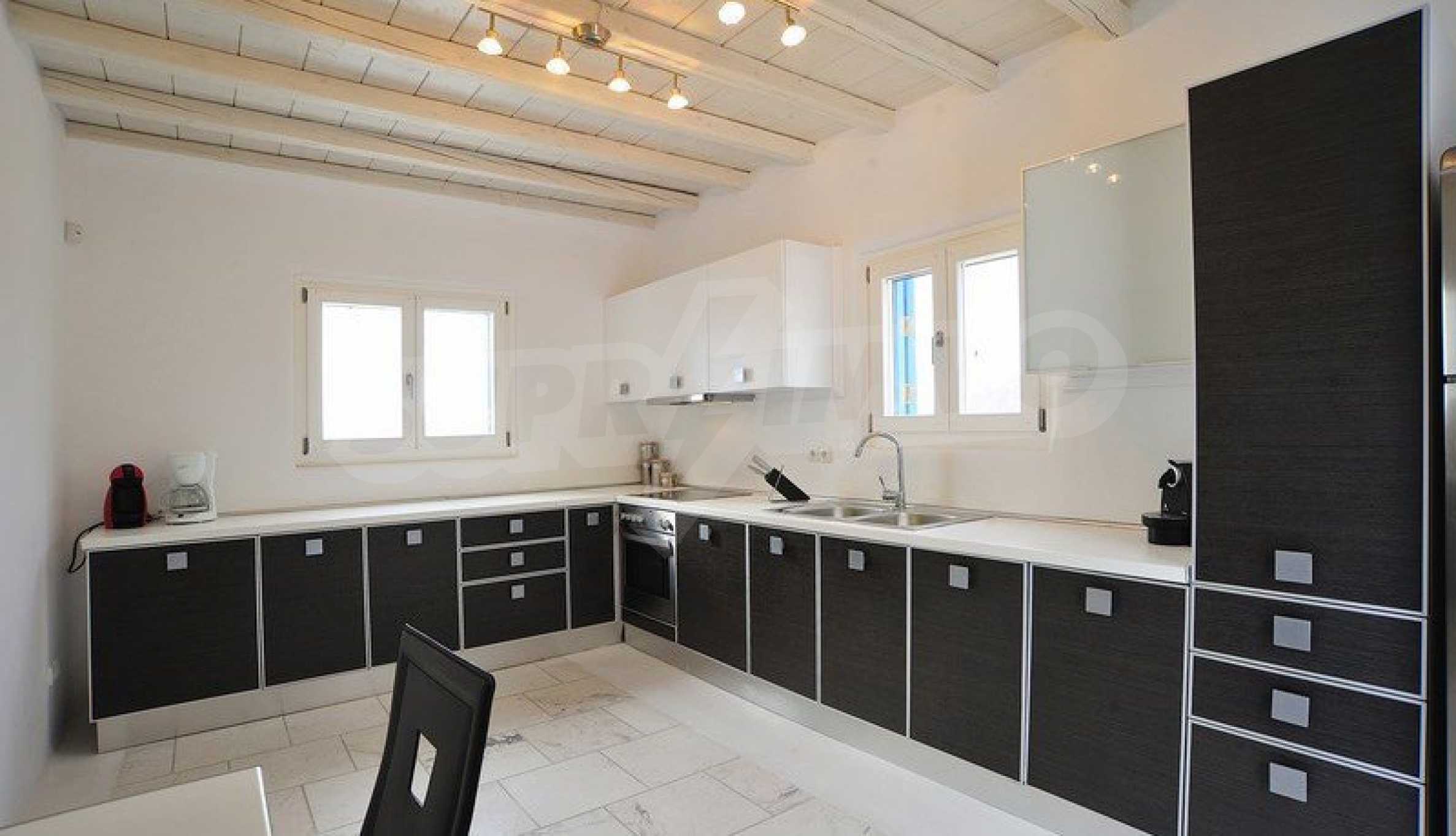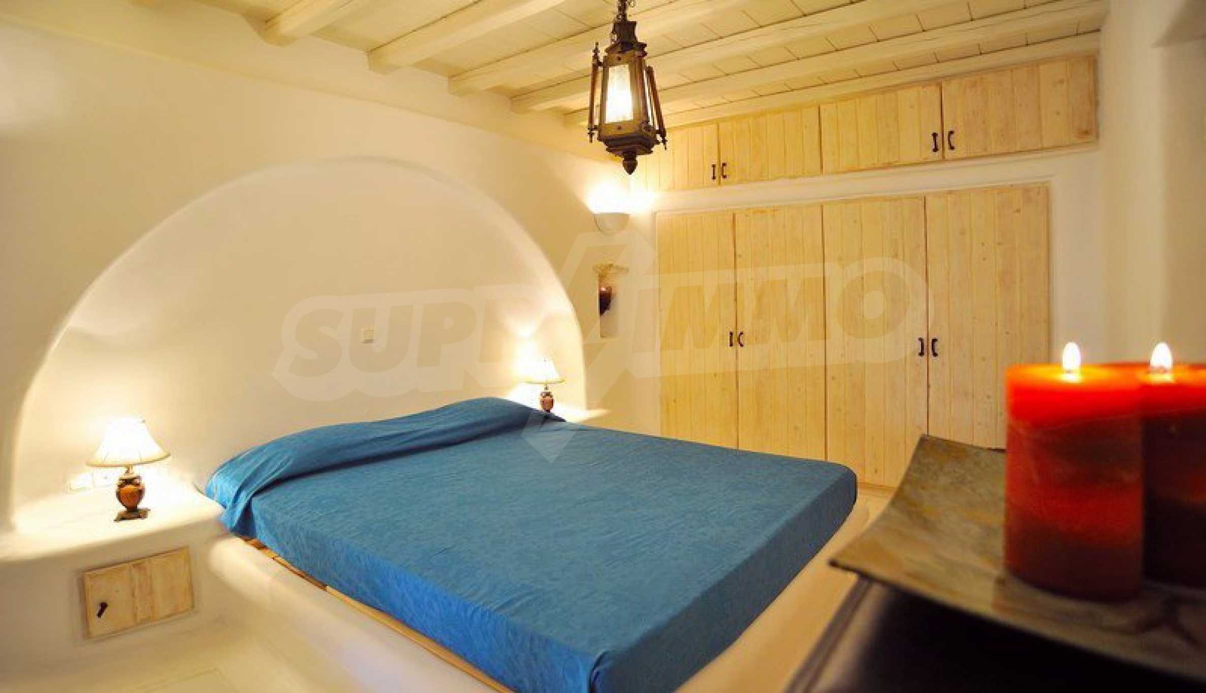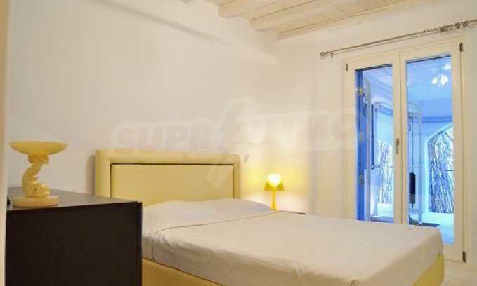 Wir präsentieren Ihnen eine Luxusimmobilie, die Teil der kykladischen Architektur ist und handverlesene Möbel im Geiste eines vielseitigen Stils bietet. Sie werden sich besonders fühlen und sich im warmen Wasser des Infinity-Pools und dem atemberaubenden Panoramablick auf das Meer entspannen. Wenn Sie ein wenig Lärm und Spaß brauchen, befindet sich die Villa in der Nähe der Stadt Mykonos, sodass Sie sich unter die Menge mischen und die Dynamik des Resorts steigern können.