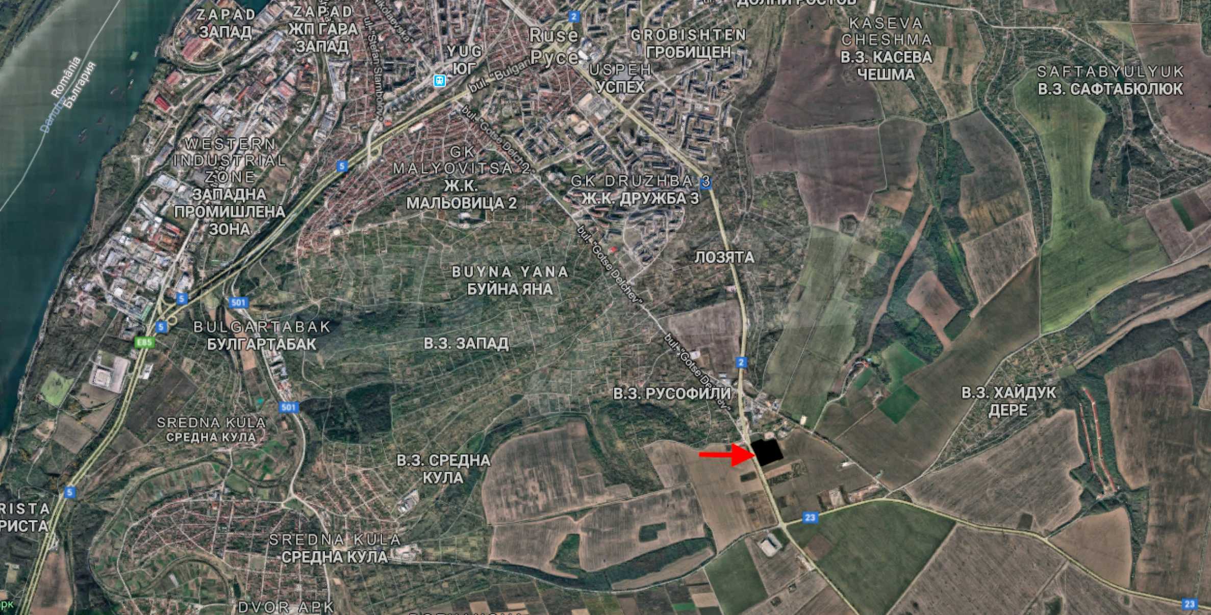 Die Immobilie befindet sich im südöstlichen Teil von der Stadt Russe. Das Grundstück schaut in Richtung der Europastraße E70, die einer der drei Haupteingänge der Stadt ist. Außerdem wird E70 von den Bewohner der umliegenden Dörfer und der nächstgelegen großen Stadt – Razgrad genutzt, damit sie das Zentrum von Russe erreichen können. Der Fortsetzung dieses Verkehrsweges führt zur Meerhauptstadt von Bulgarien – Warna.