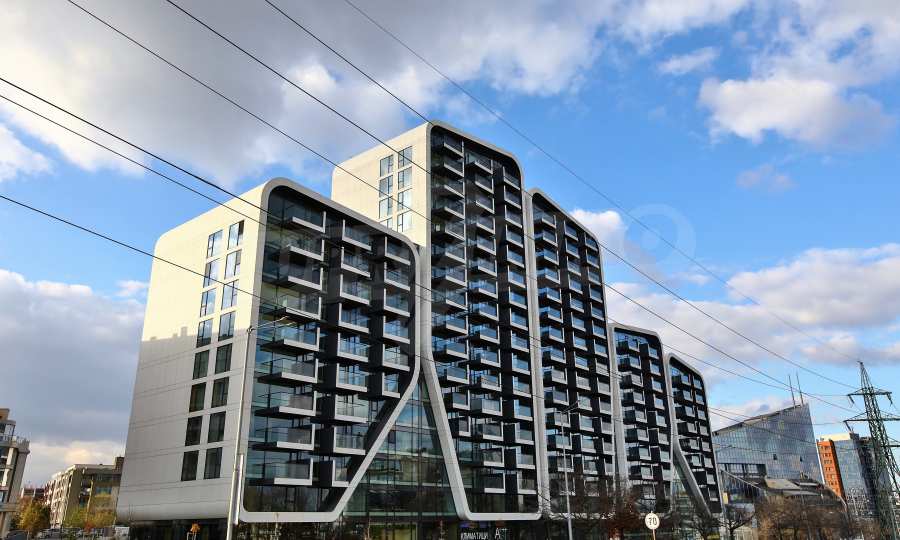 Wir präsentieren eine modern eingerichtete Zweizimmerwohnung zur Miete im Gebäude A3, das 2017 mit dem Preis „Gebäude des Jahres“ ausgezeichnet wurde.