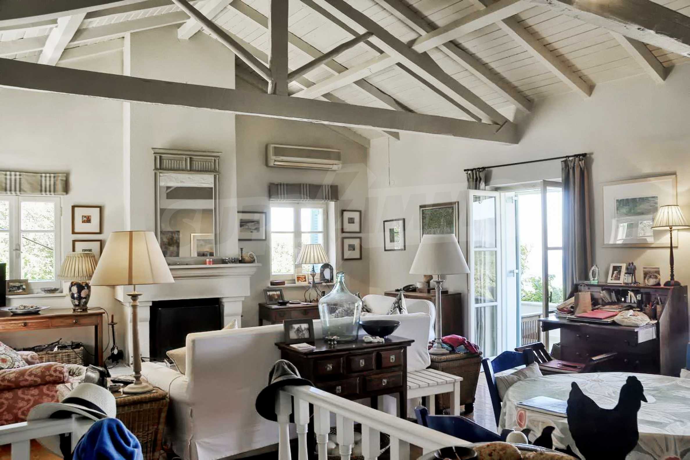 Das Haupthaus verfügt über einen gepflasterten Parkplatz. Durch den Haupteingang betritt man einen großzügigen Flur, der zu einem breiten und wunderschönen Wohnzimmer/Esszimmer und Balkontüren führt. Die Decken des Wohnzimmers sind mit Holzdielen verkleidet. Vom Balkon aus breitet sich eine herrliche Aussicht. Die offene Küche wird durch eine große Menge an Tageslicht gekennzeichnet.