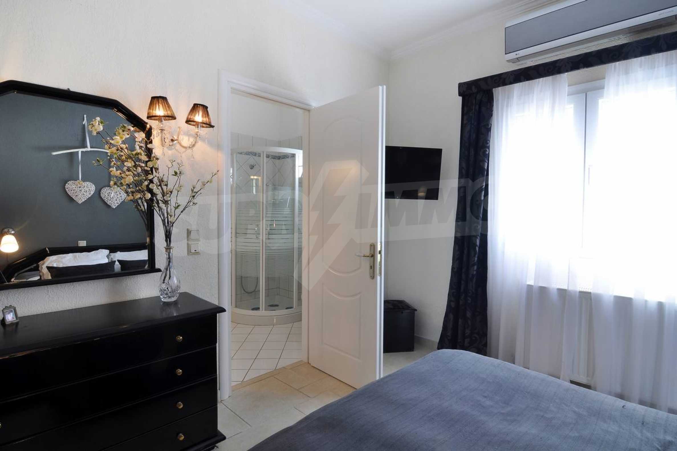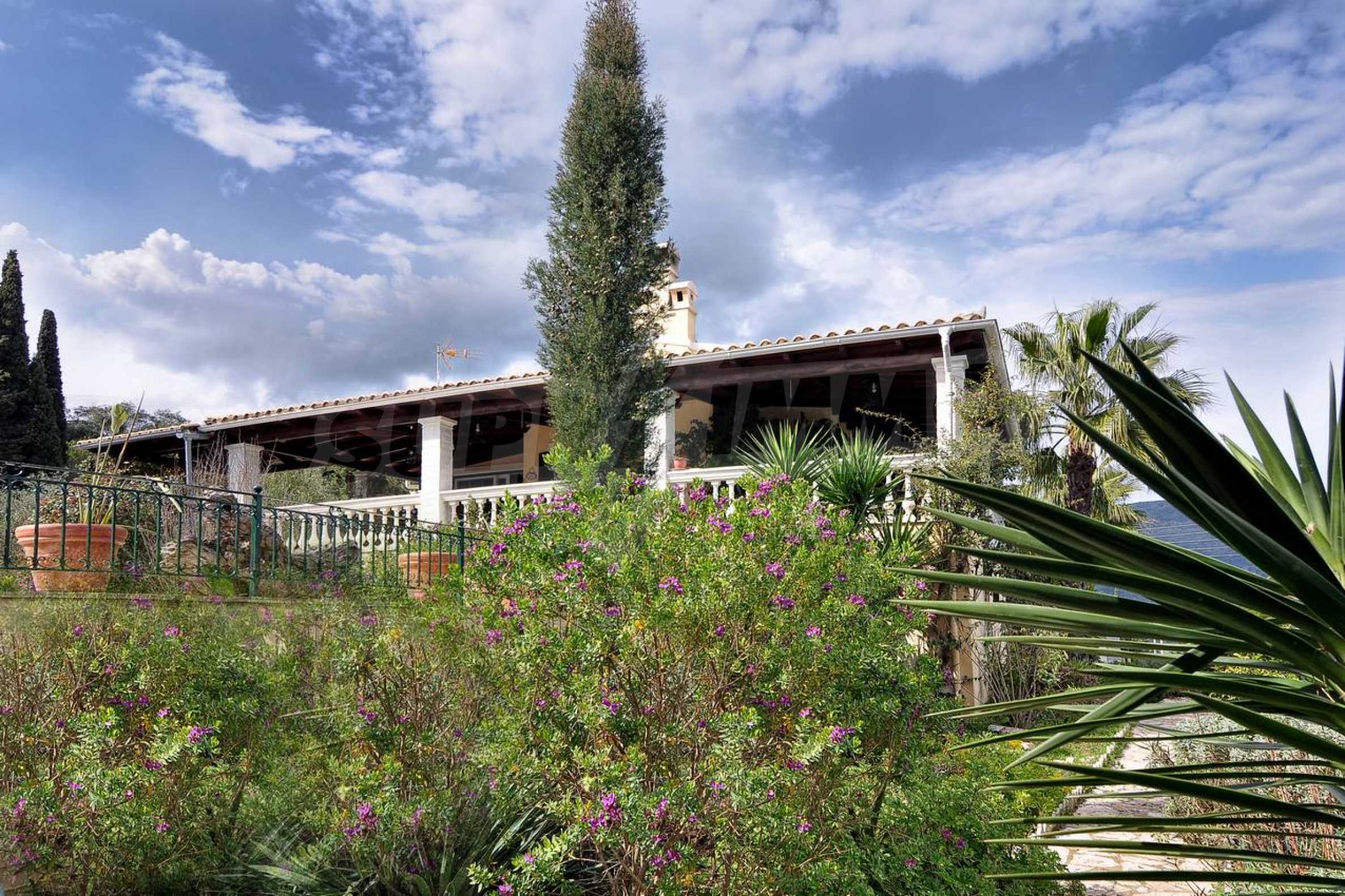 Die großen Balkons genießen eine direkte Aussicht auf Meer und bieten eine hervorragende Möglichkeit zur Erholung oder Unterhaltung im Freien. Das Schwimmbad befindet sich vor der Veranda auf der rechten Seite der Villa und verfügt über Liegestühle und Sonnenschirme sowie ein eingebautes Steinbarbecue.