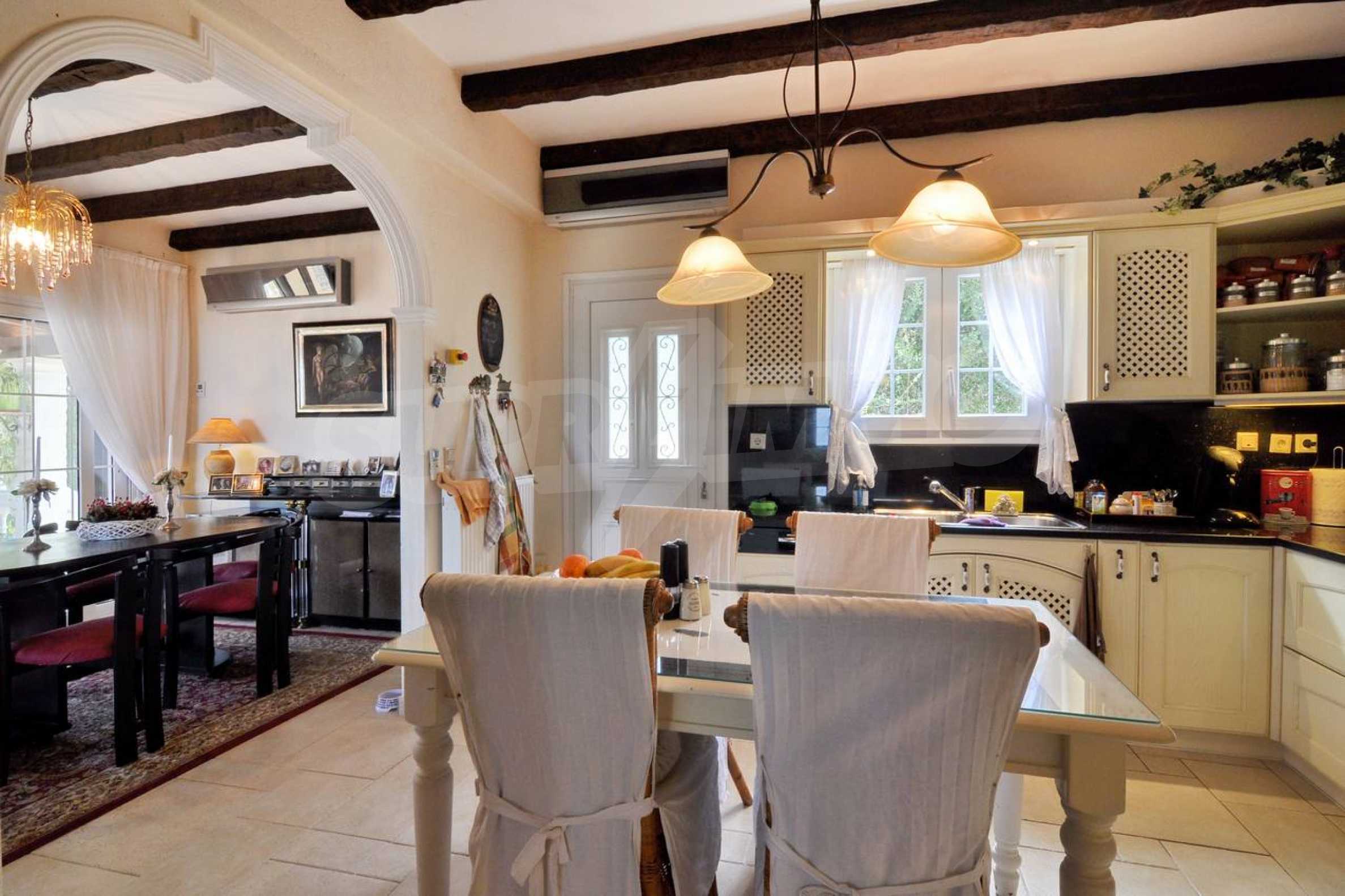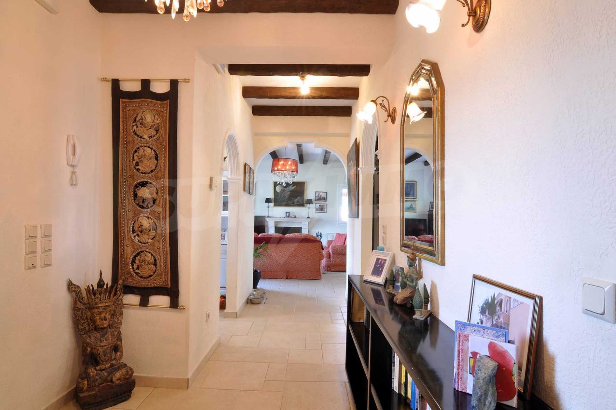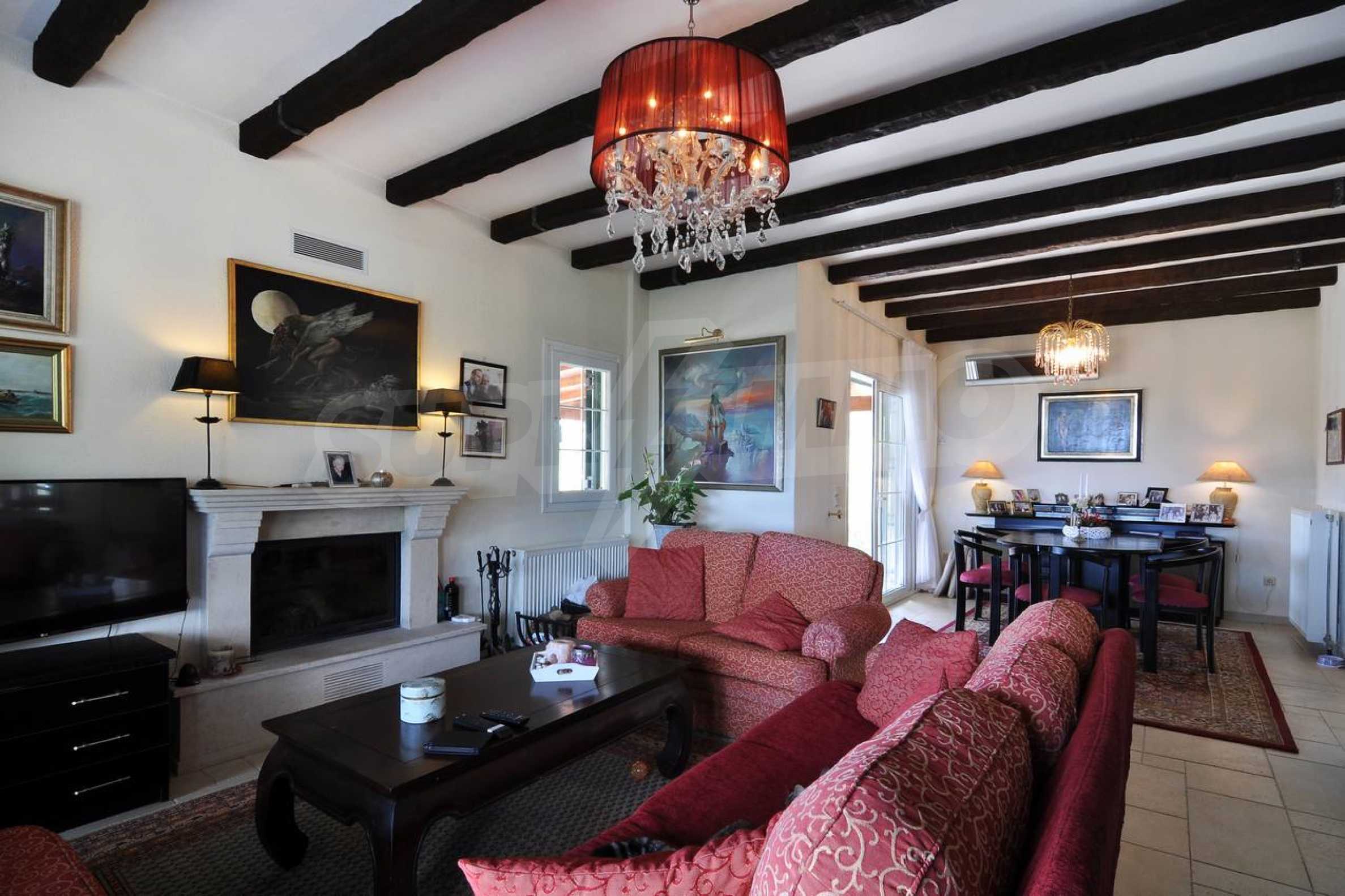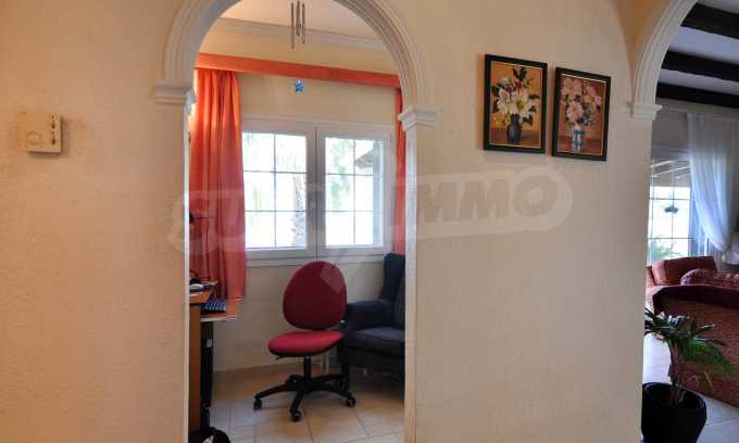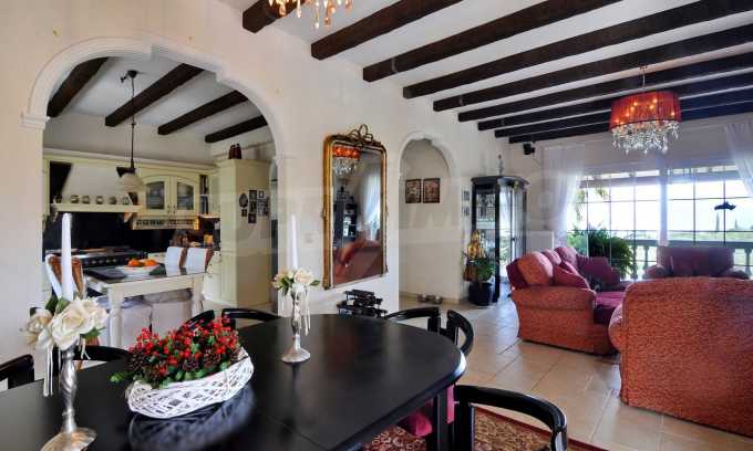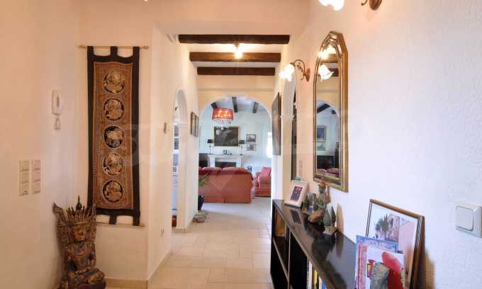 Das Interieur ist hell und breit. Es verfügt über Decken mit drauf befestigten Dielen und einen Kamin, der zu einem feinen Stil beiträgt. Das Erdgeschoss besteht aus einem Wohnzimmer mit Esszimmer, einer komplett ausgestatteten Küche, 3 Schlafzimmern und zwei Badezimmern.