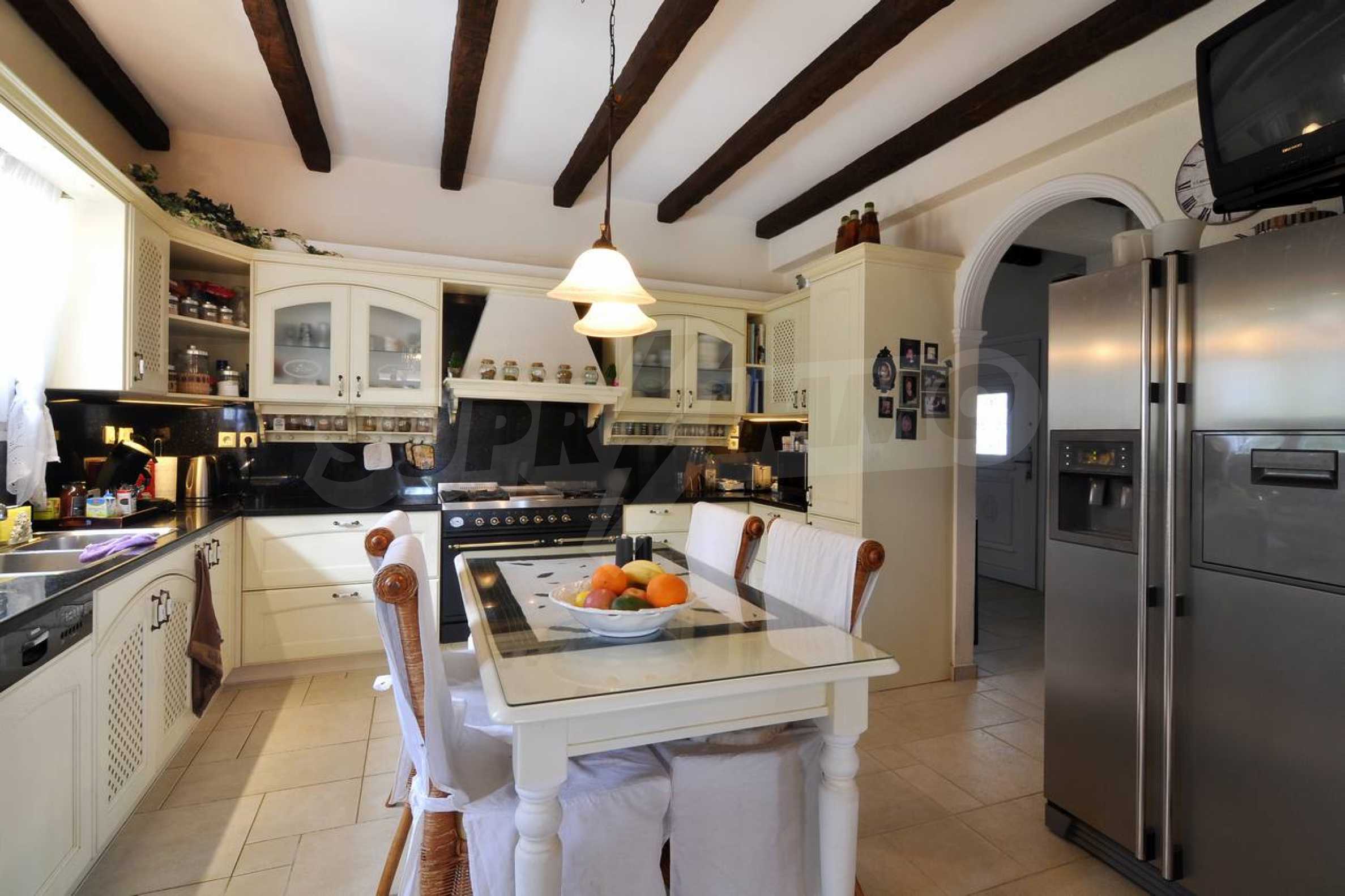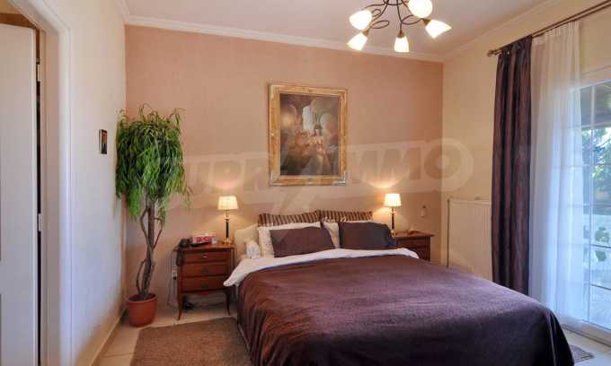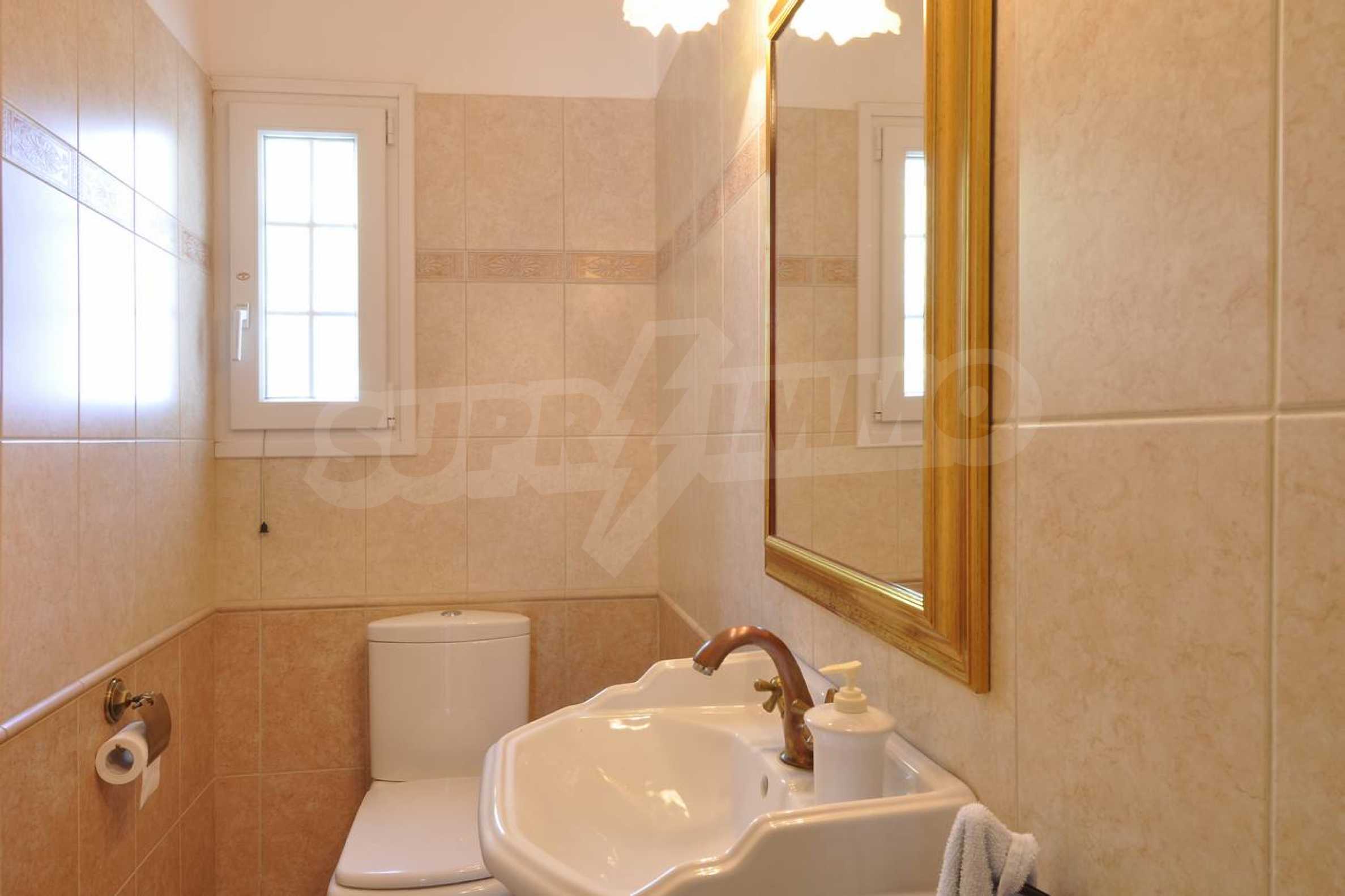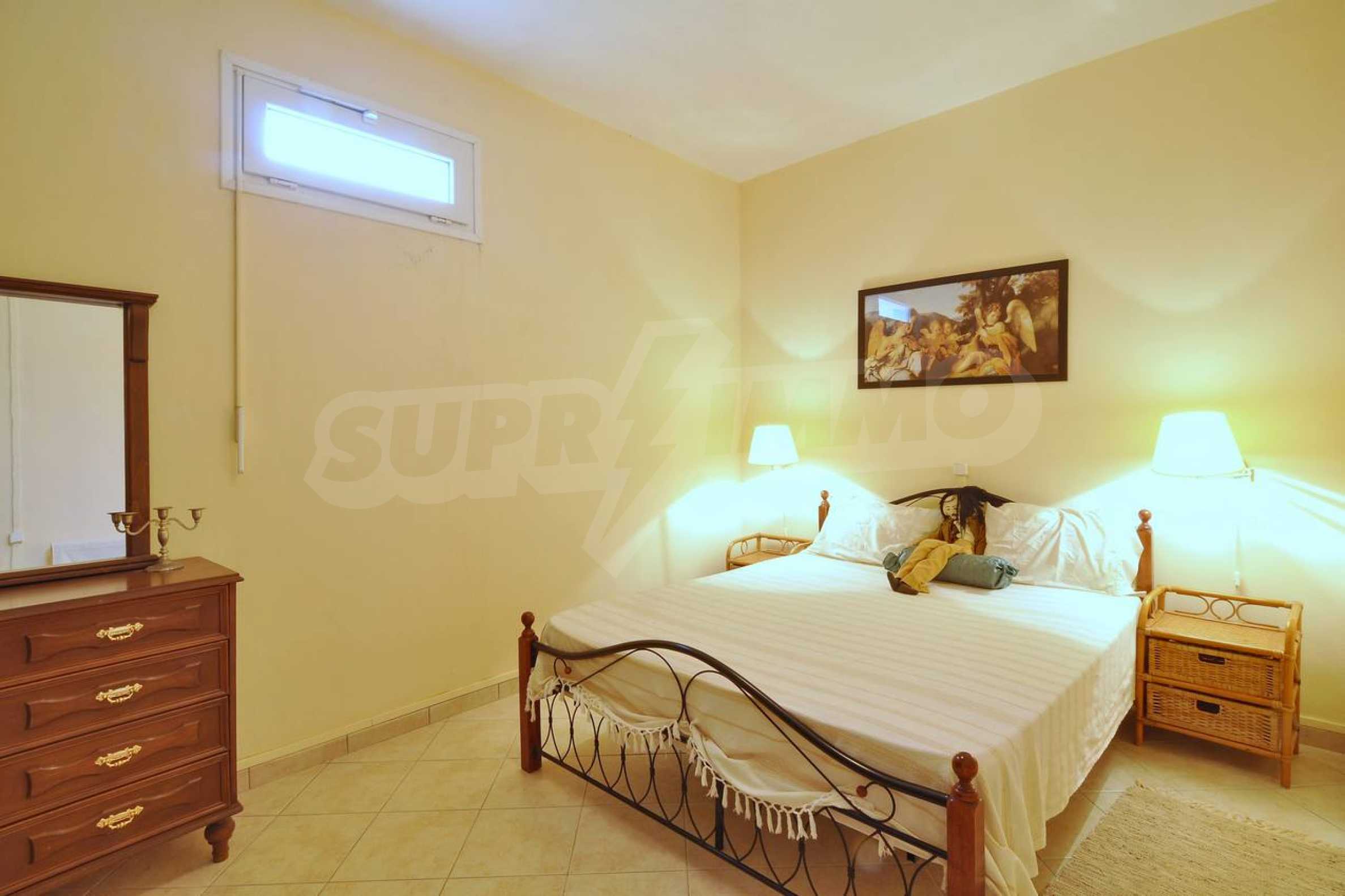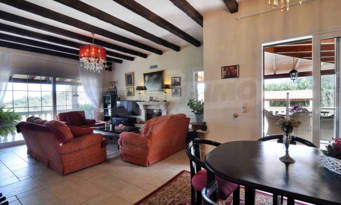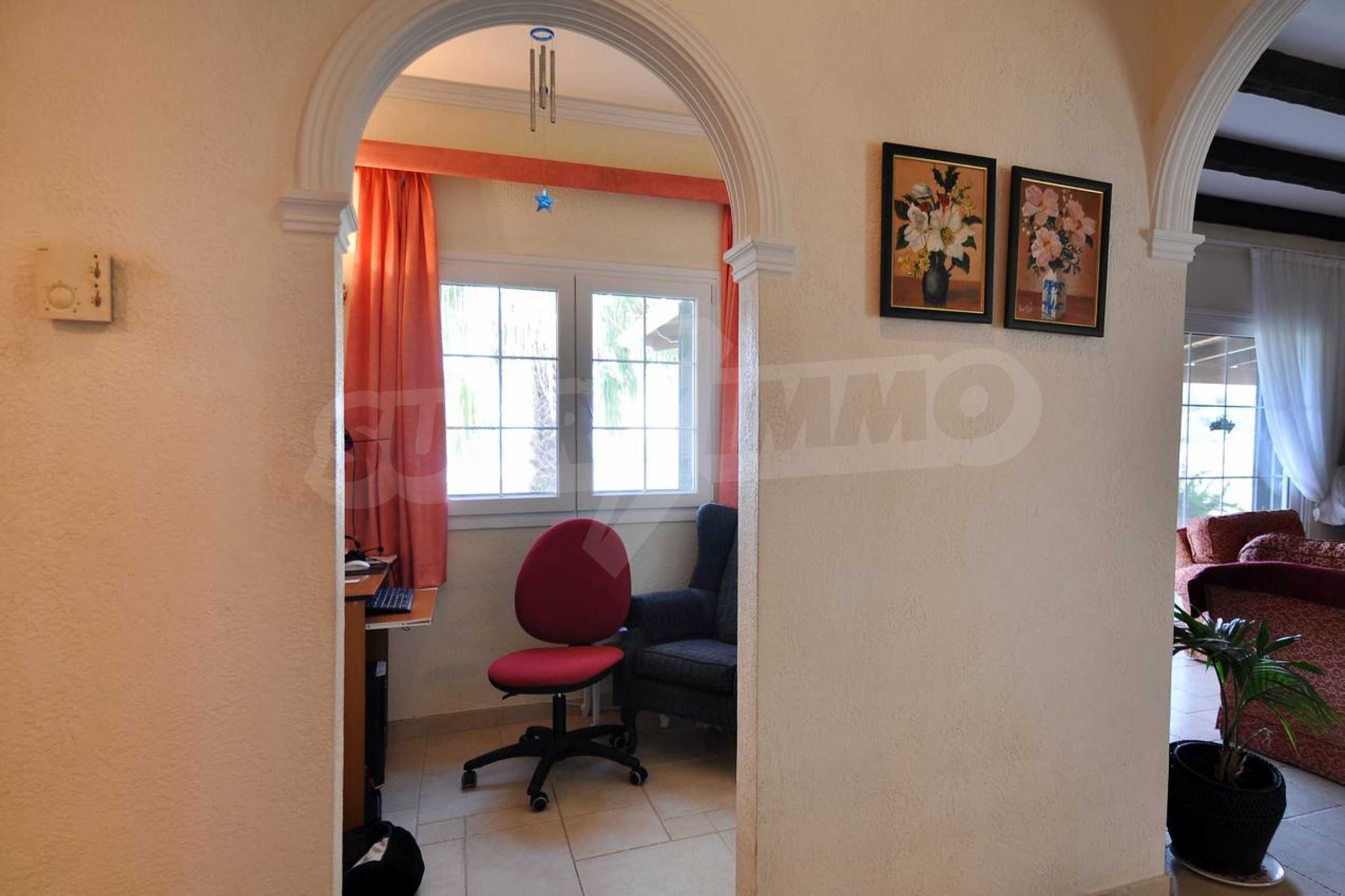 Das Interieur ist hell und breit. Es verfügt über Decken mit drauf befestigten Dielen und einen Kamin, der zu einem feinen Stil beiträgt. Das Erdgeschoss besteht aus einem Wohnzimmer mit Esszimmer, einer komplett ausgestatteten Küche, 3 Schlafzimmern und zwei Badezimmern.