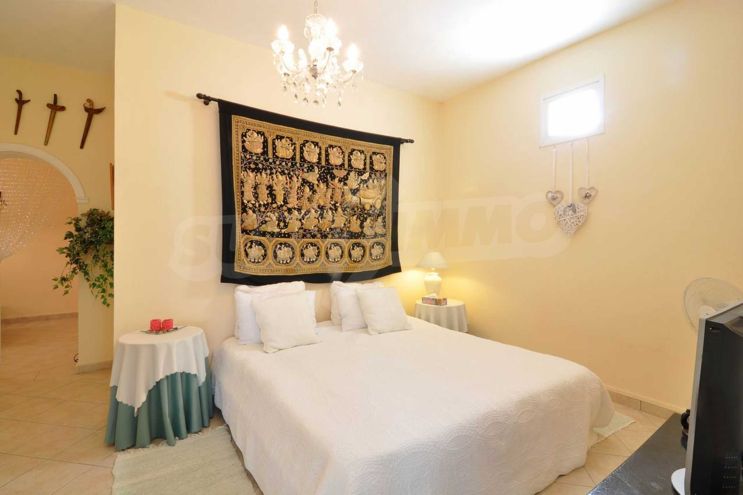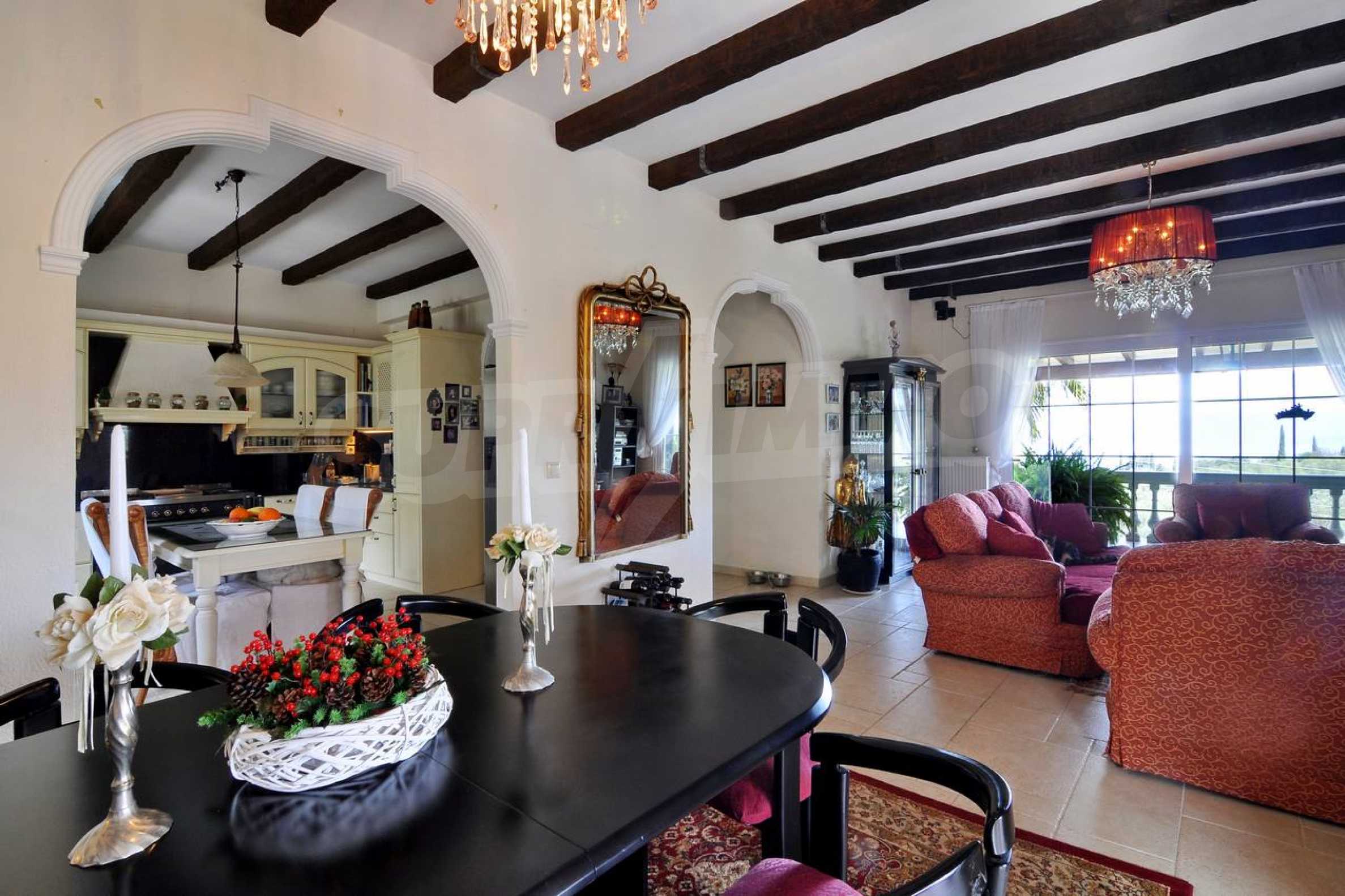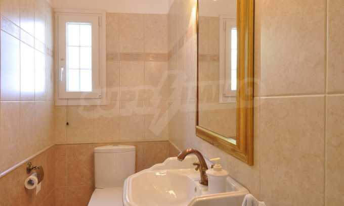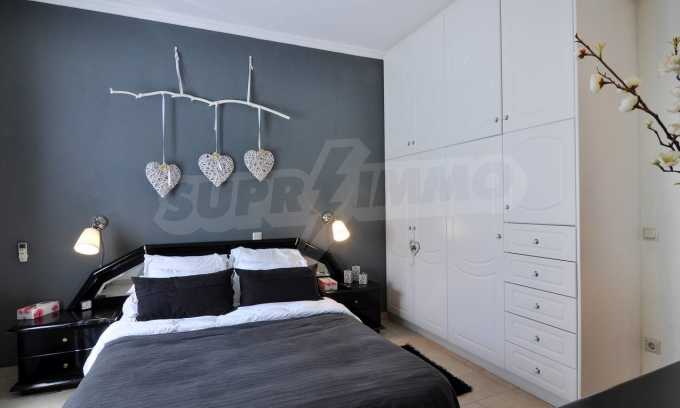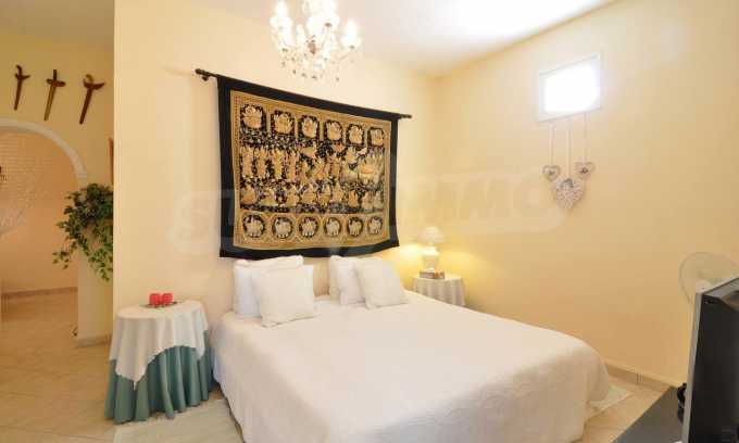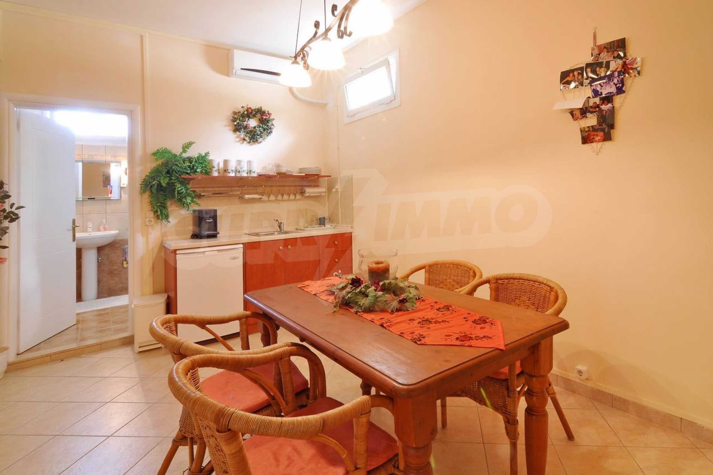 Das Interieur ist hell und breit. Es verfügt über Decken mit drauf befestigten Dielen und einen Kamin, der zu einem feinen Stil beiträgt. Das Erdgeschoss besteht aus einem Wohnzimmer mit Esszimmer, einer komplett ausgestatteten Küche, 3 Schlafzimmern und zwei Badezimmern.