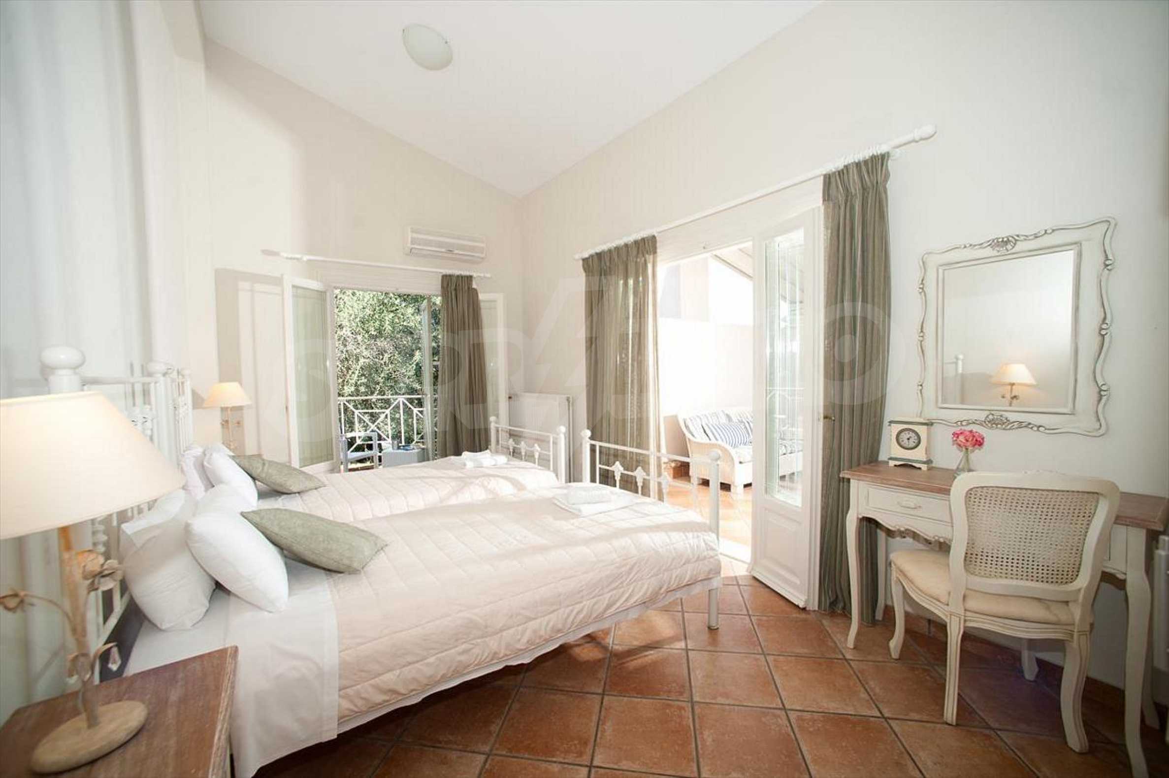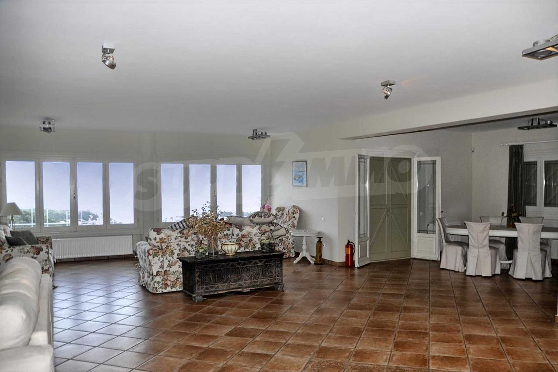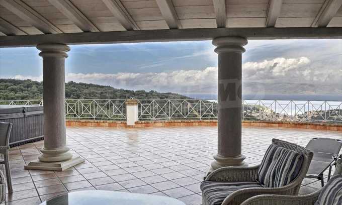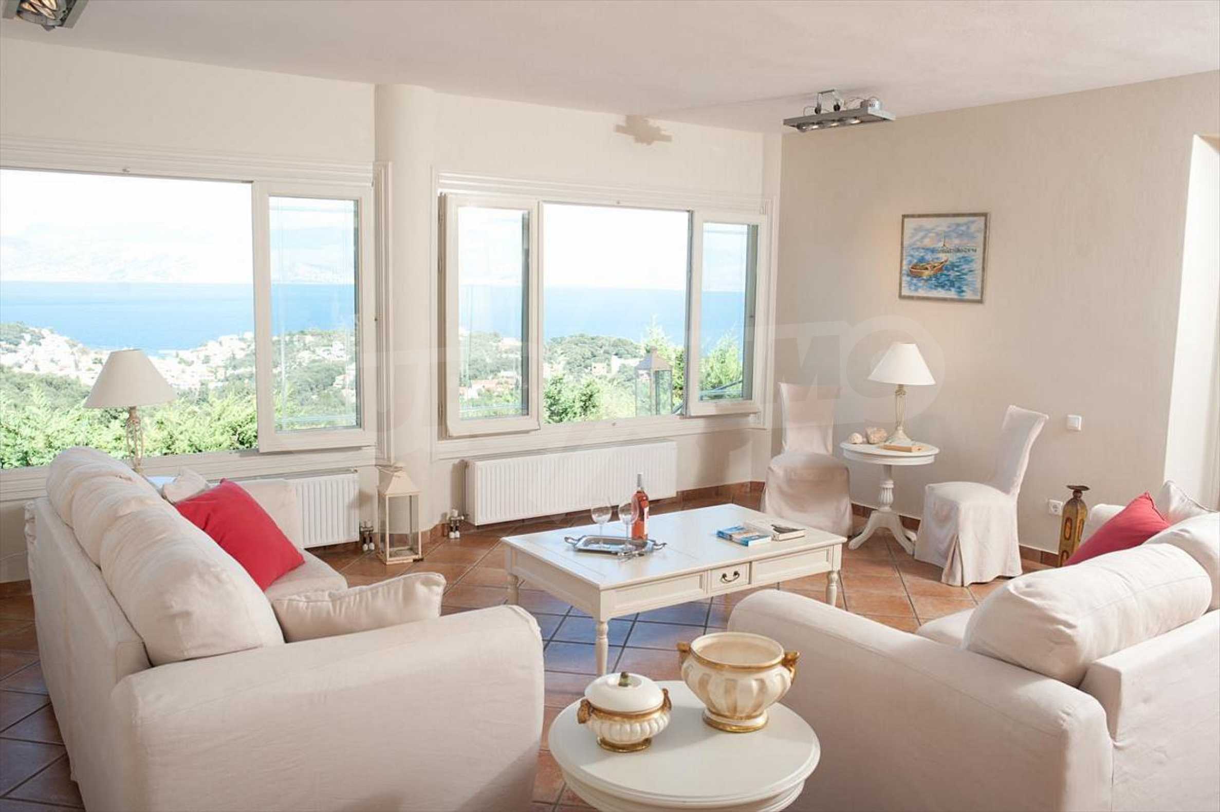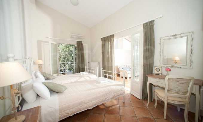 In der zweiten Etage befinden sich 4 Schlafzimmer, 2 von denen verfügen über eine eigene Sanitäranlage, ein Badezimmer, einen großen Flur mit Innentüren, die zu einem breiten Innenhof mit Panoramablick über Meer führen. Durch die Küchentüren erreicht man die Terrasse des Schwimmbades und den Schattenbereich des Barbecues. Das Haus ist klimatisiert und hat Zentralheizung. Es verfügt über auch Satellitenfernsehen und Internet. Die ganze Immobilie ist bezaunt.