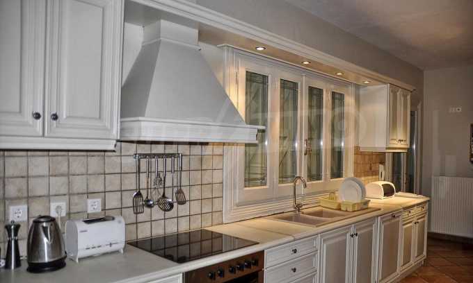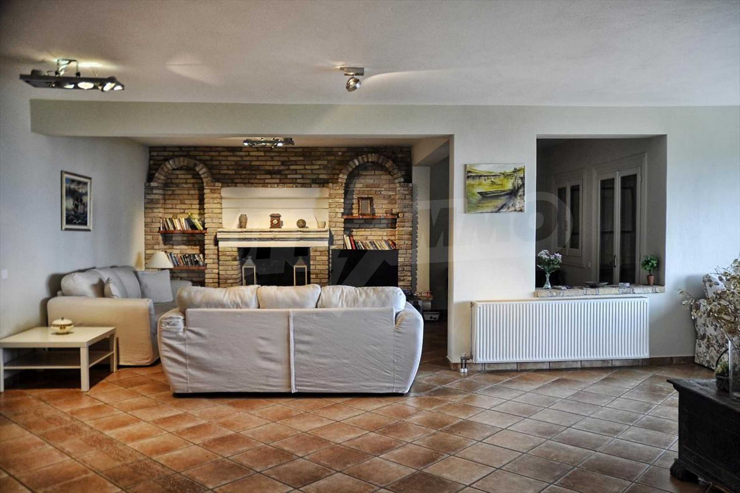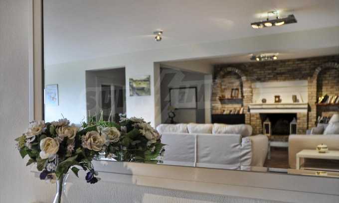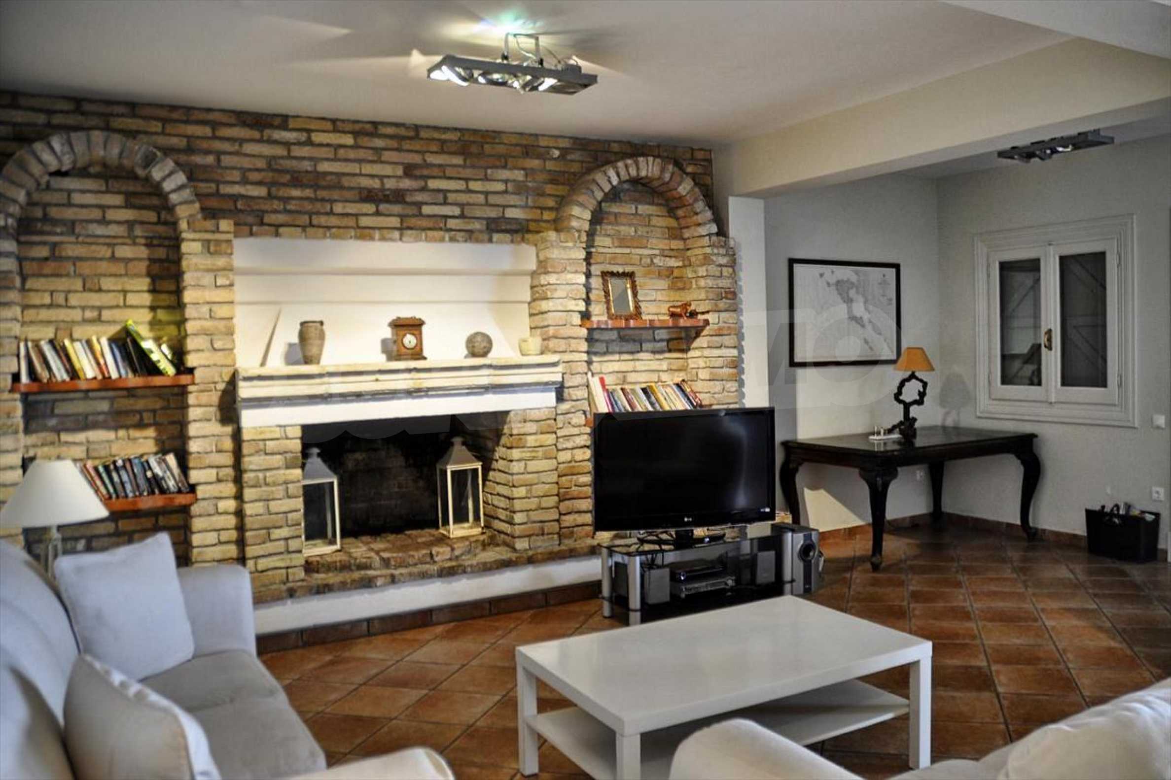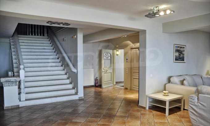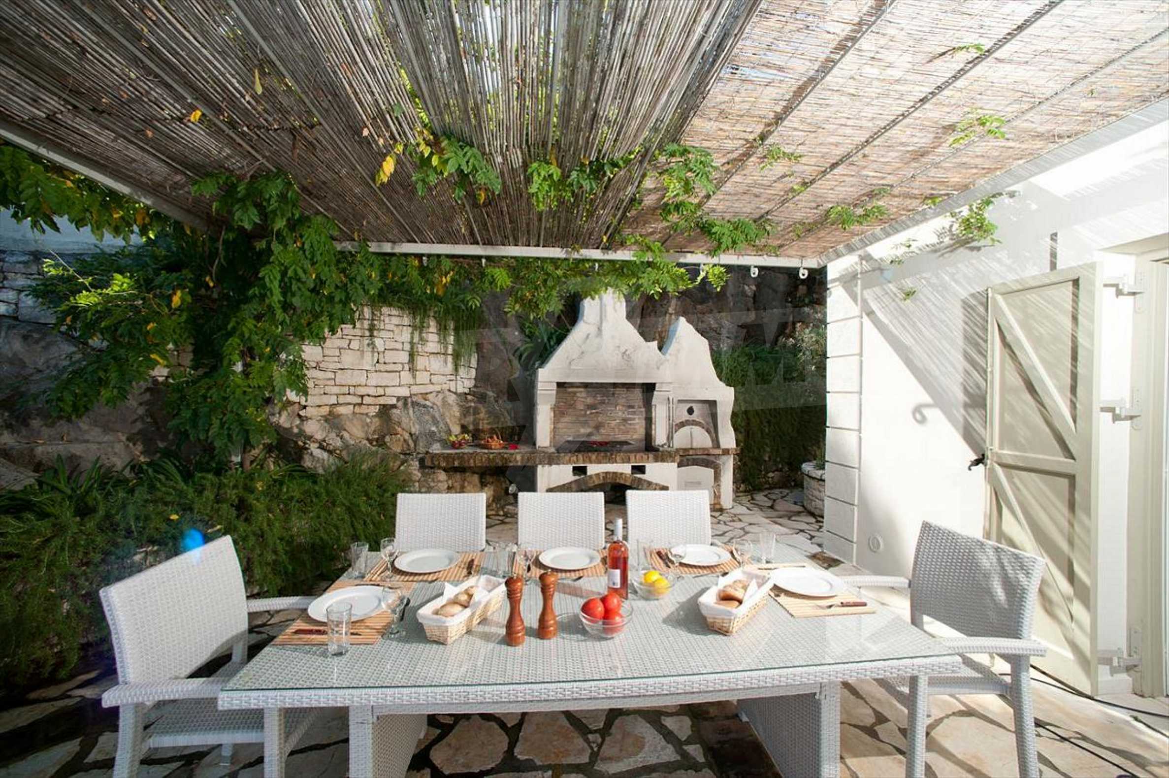 In der zweiten Etage befinden sich 4 Schlafzimmer, 2 von denen verfügen über eine eigene Sanitäranlage, ein Badezimmer, einen großen Flur mit Innentüren, die zu einem breiten Innenhof mit Panoramablick über Meer führen. Durch die Küchentüren erreicht man die Terrasse des Schwimmbades und den Schattenbereich des Barbecues. Das Haus ist klimatisiert und hat Zentralheizung. Es verfügt über auch Satellitenfernsehen und Internet. Die ganze Immobilie ist bezaunt.