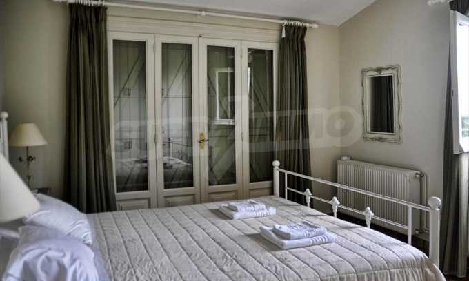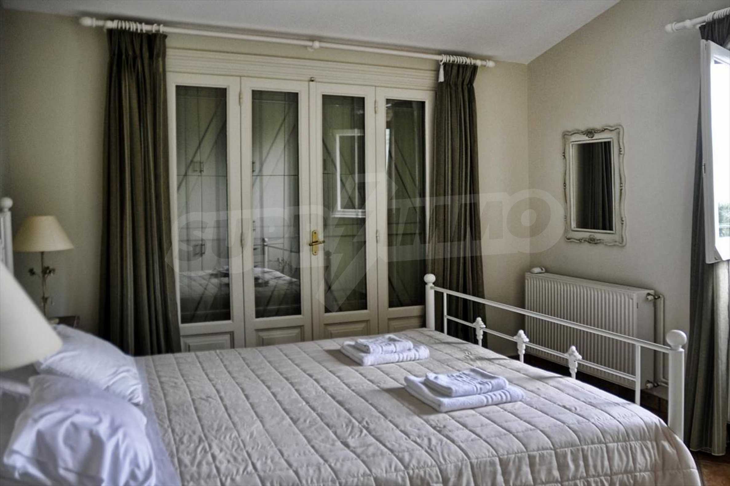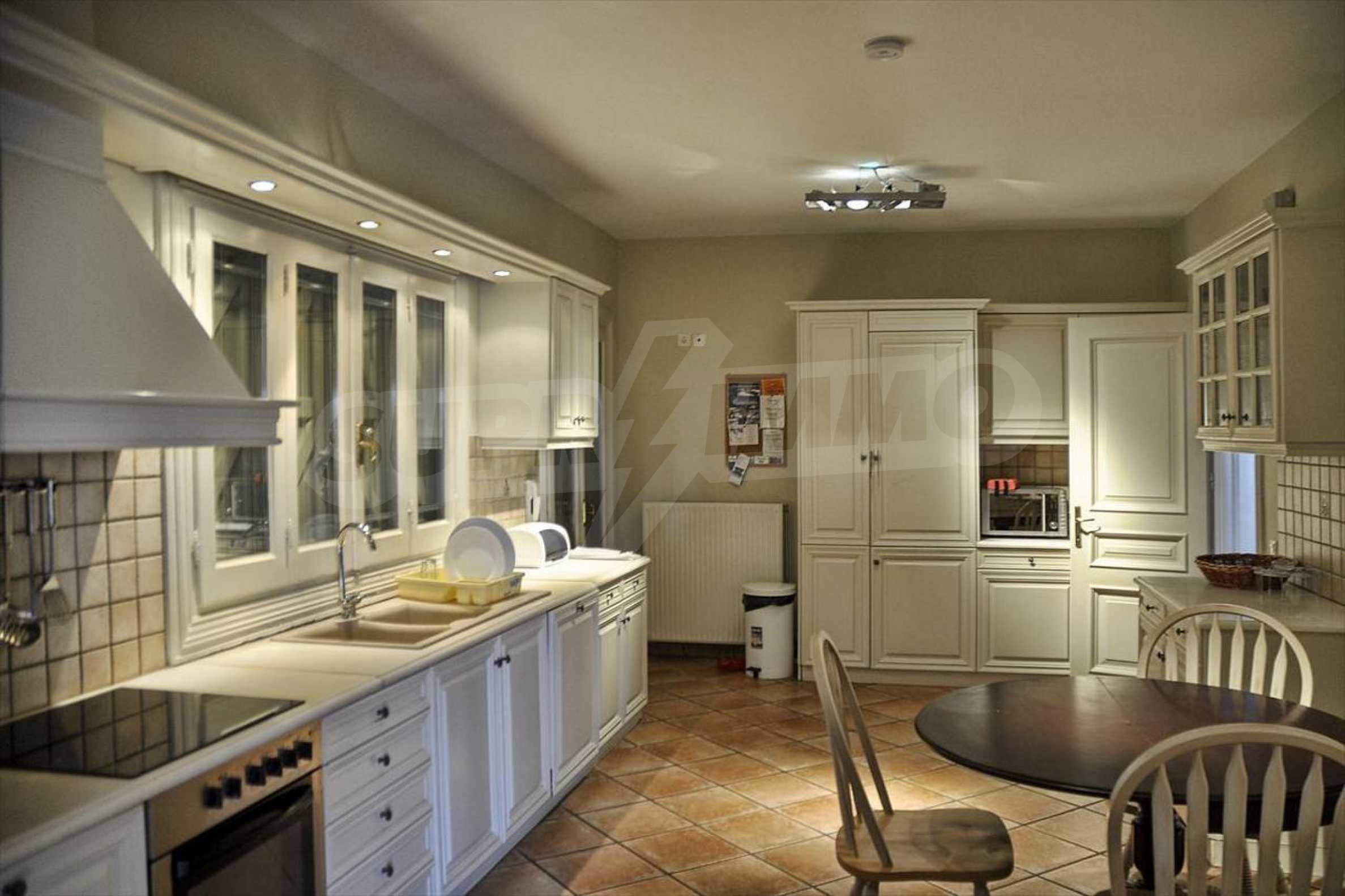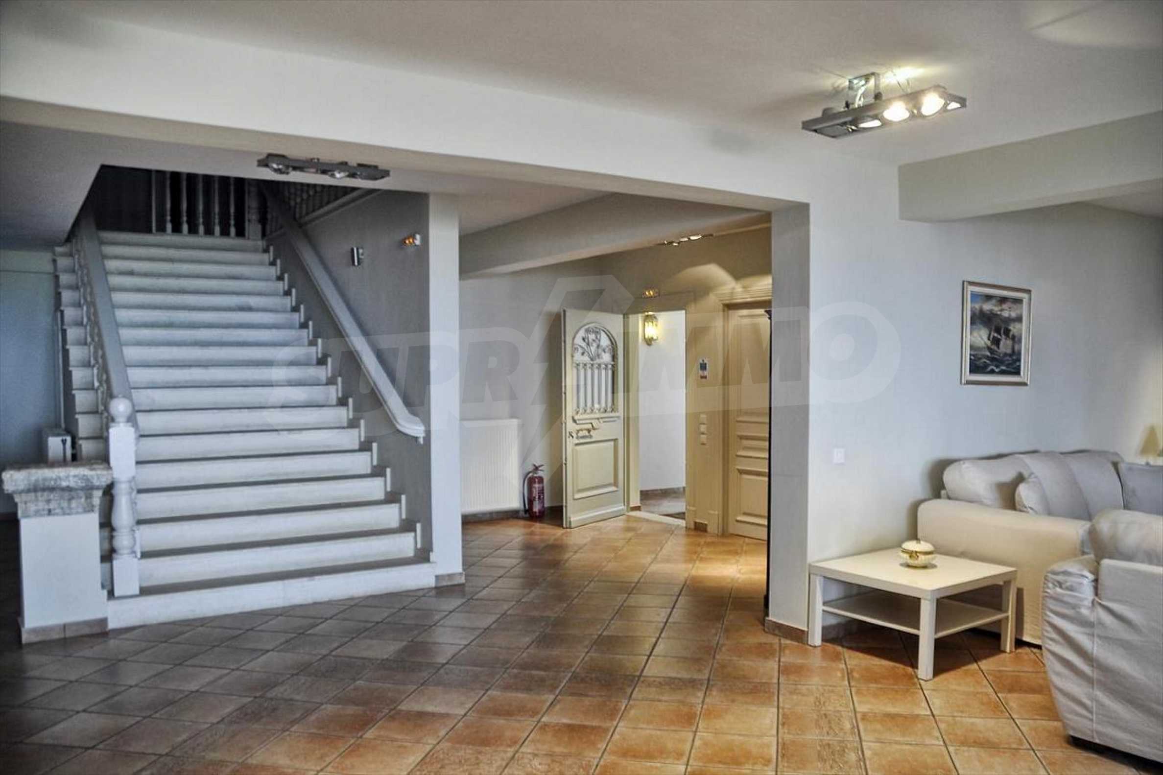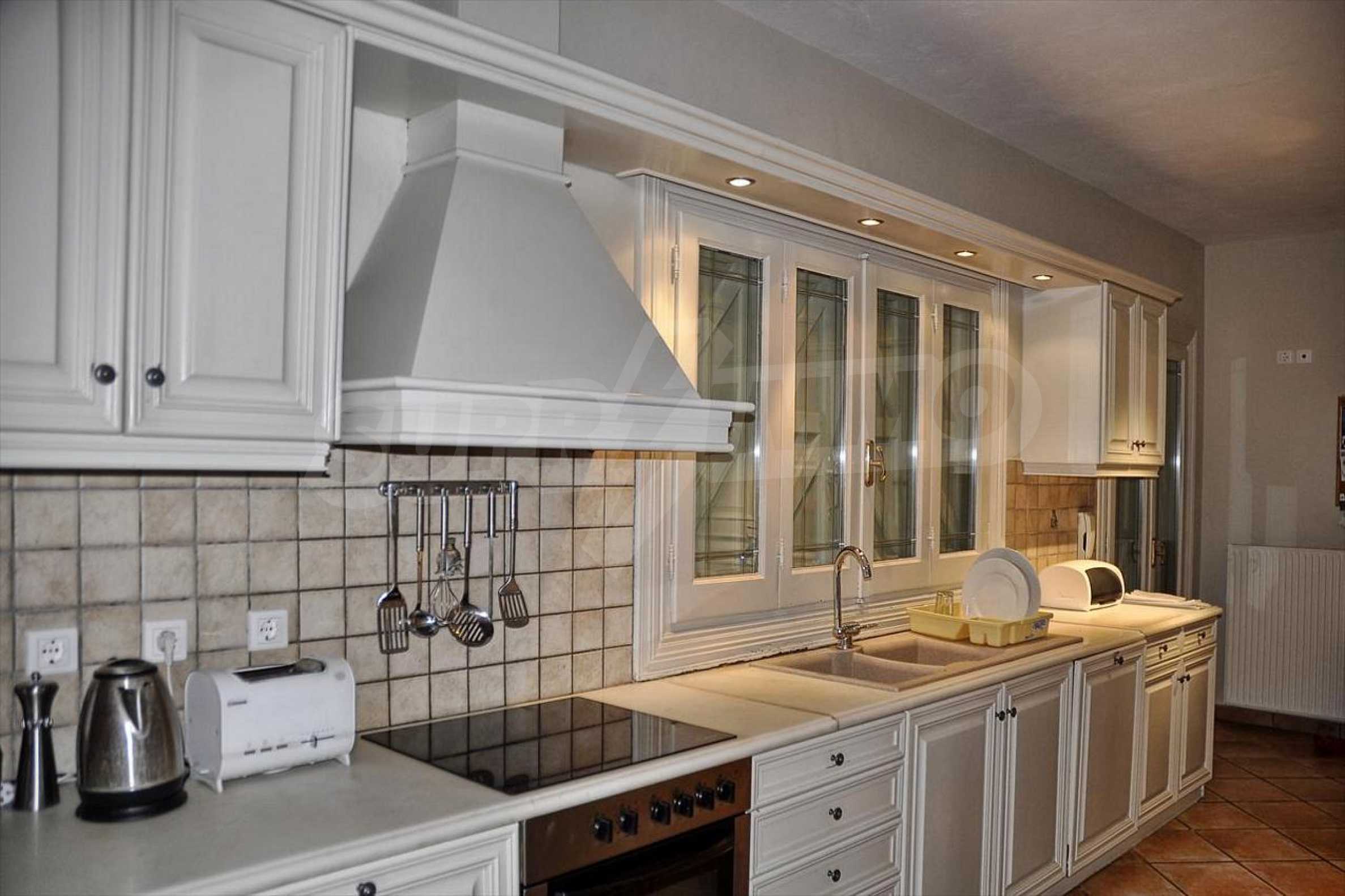 In der zweiten Etage befinden sich 4 Schlafzimmer, 2 von denen verfügen über eine eigene Sanitäranlage, ein Badezimmer, einen großen Flur mit Innentüren, die zu einem breiten Innenhof mit Panoramablick über Meer führen. Durch die Küchentüren erreicht man die Terrasse des Schwimmbades und den Schattenbereich des Barbecues. Das Haus ist klimatisiert und hat Zentralheizung. Es verfügt über auch Satellitenfernsehen und Internet. Die ganze Immobilie ist bezaunt.