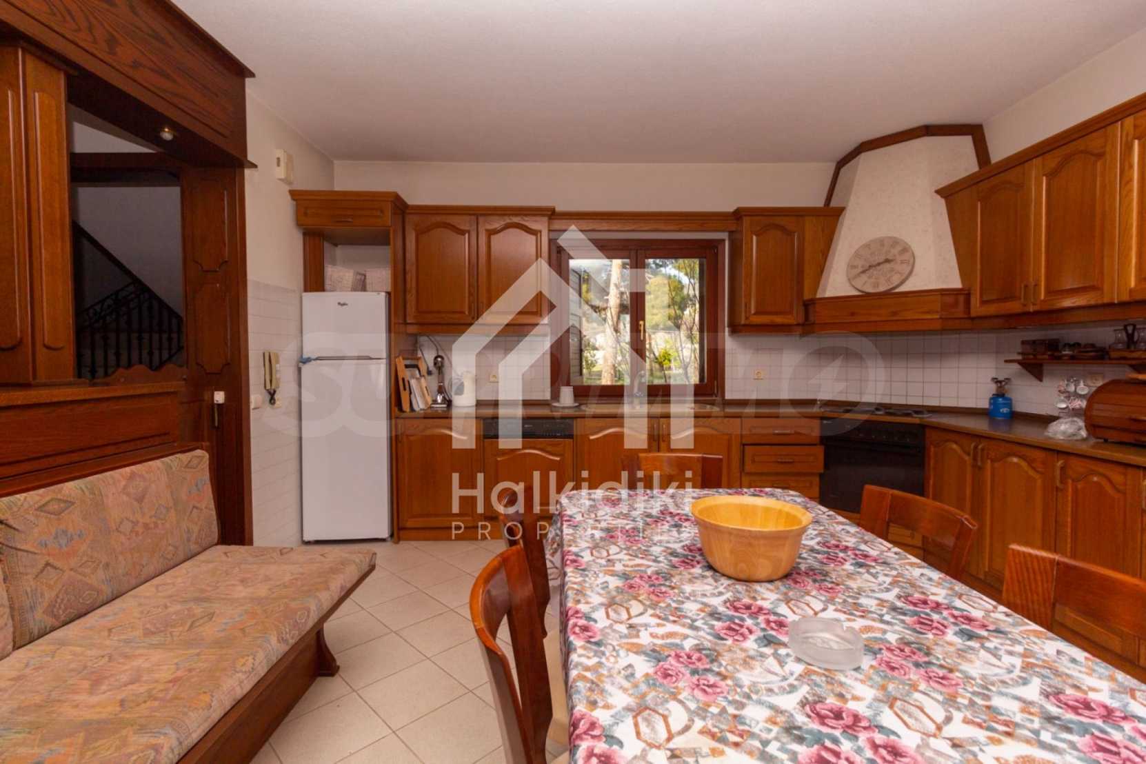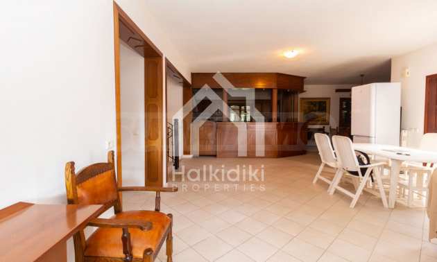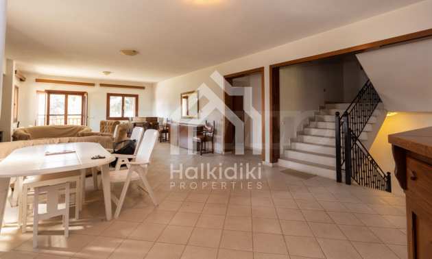 Zweigeschossiges Einfamilienhaus mit Keller, 378 m², in Sithonia, Chalkidiki mit westlicher Ausrichtung und unverbauter Sicht. Das umzäunte Grundstück ist von 1.710 m² Grundstück umgeben und liegt nur 100 m entfernt. Das Haus ist in drei Ebenen aufgeteilt und besteht aus einem Wohnzimmer, das mit der Küche verbunden ist, sechs Schlafzimmern, einem WC und vier Badezimmern. Der Keller ist ein einzelner unfertiger Raum, 130m² Das Haus ist komplett ausgestattet und möbliert.