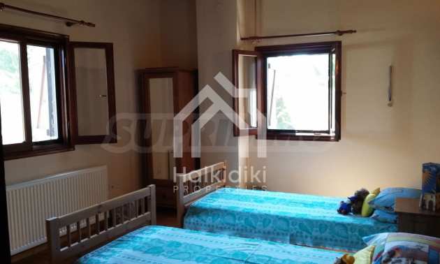 Renoviertes, freistehendes Steinhaus, 162 m², in Kassandra, Chalkidiki mit östlicher Ausrichtung und freiem Blick. Das Grundstück ist 200 m. Das Haus ist auf zwei Ebenen aufgeteilt und besteht aus einem Wohnzimmer, das mit der Küche verbunden ist, drei Schlafzimmern, zwei Badezimmern und zwei Abstellräumen. Das Anwesen hat ebenfalls Holzfußboden In einigen Zimmern Kiosk, Grill und Boiler. Das Haus ist komplett ausgestattet und möbliert.