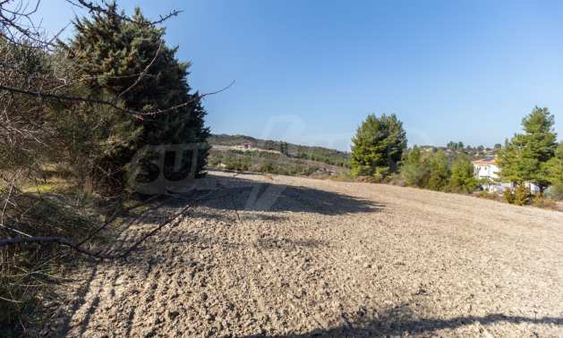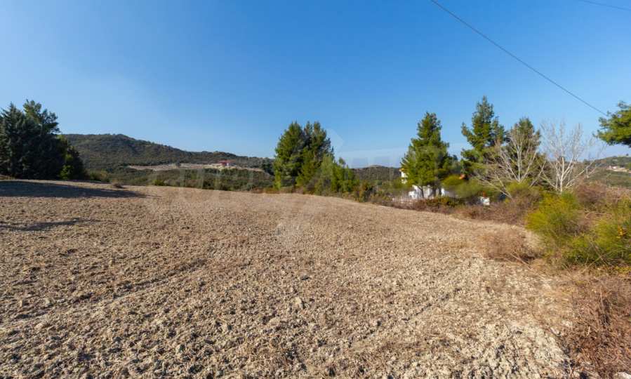 Schräg gelegenes 4.000 m² großes Feld in Kassandra auf der Chalkidiki mit unverbauter Sicht und östlicher Ausrichtung. Das Grundstück ist zur Hauptstraße ausgerichtet. Das mit Wasser und Strom versorgte Feld ist fertig und bebaubar (200 m² können bebaut werden) ).