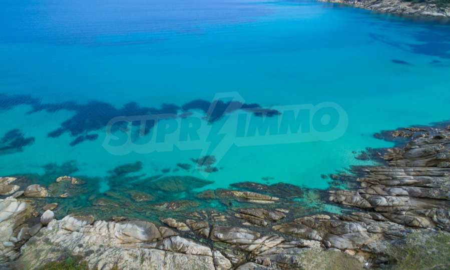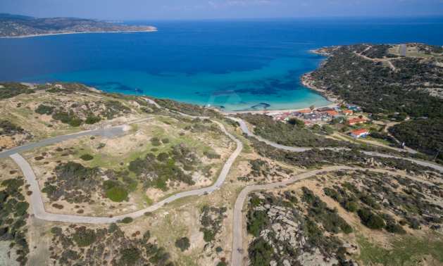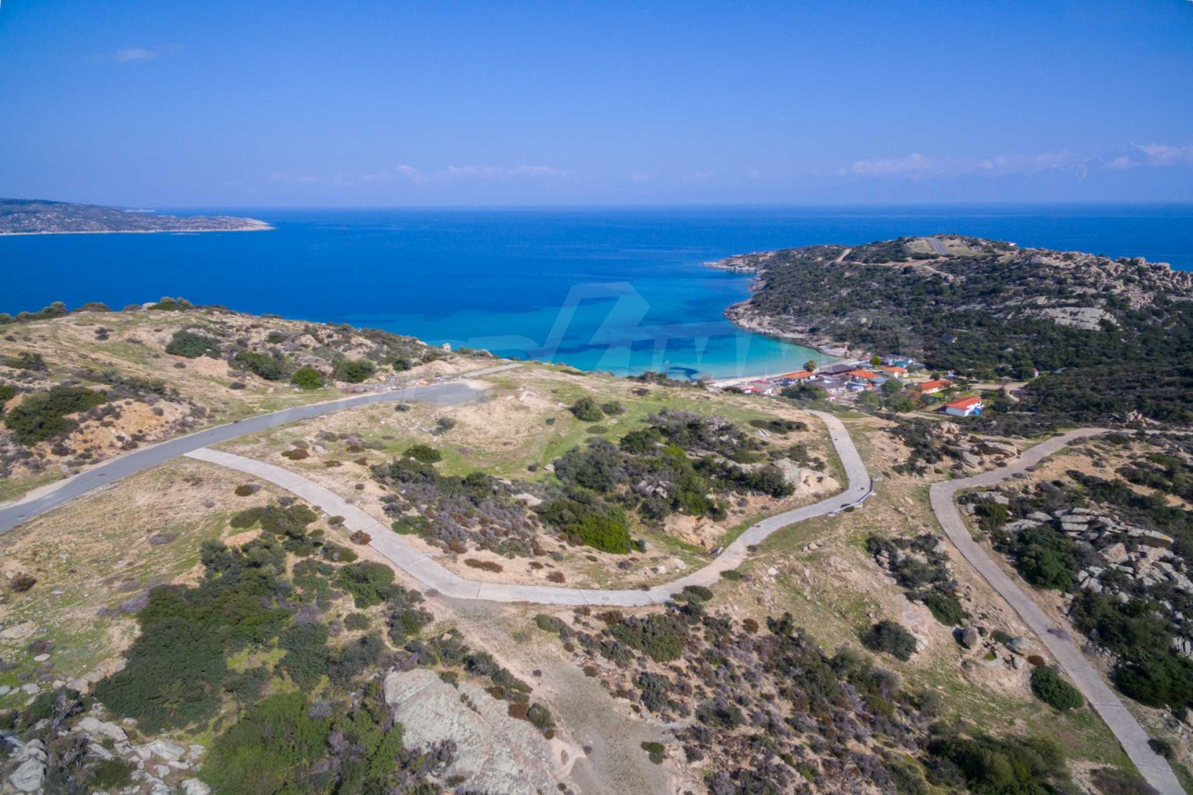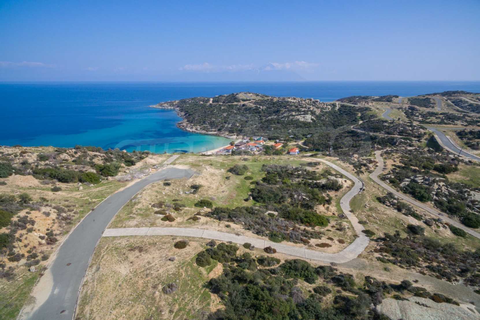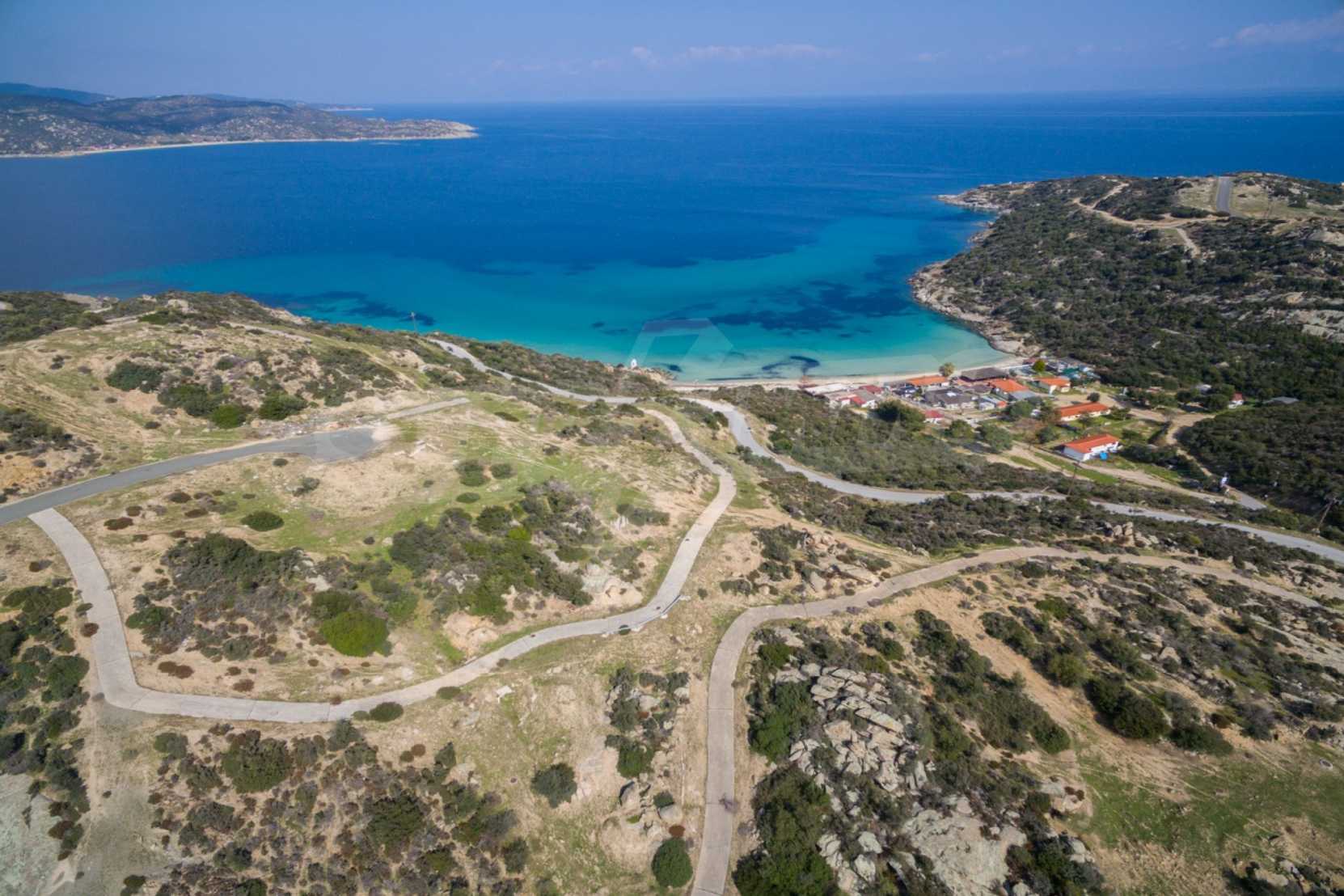 Ecke, schräges Grundstück, 500 m², in Sithonia, Chalkidiki mit unverbauter Sicht und mit östlicher Ausrichtung. Das Grundstück ist nur 100m entfernt. Das Grundstück ist komplett und bebaubar (120m² können bebaut werden). Das Anwesen ist perfekt für den Bau einer Villa.