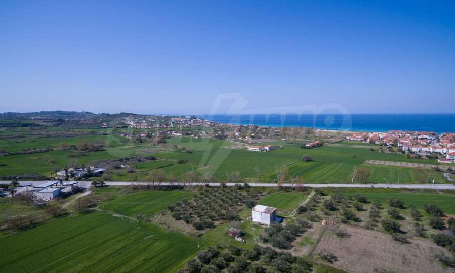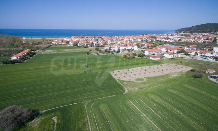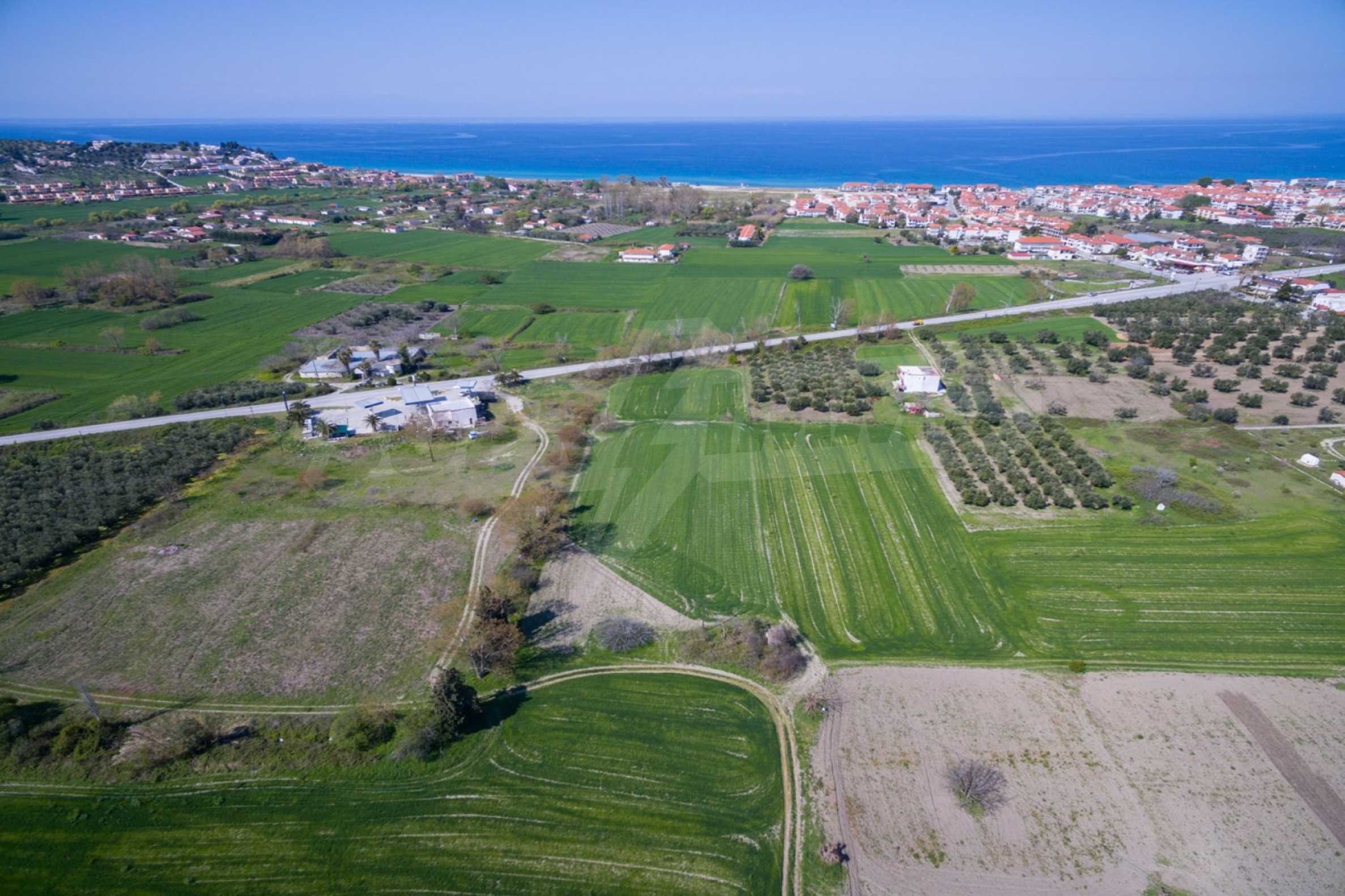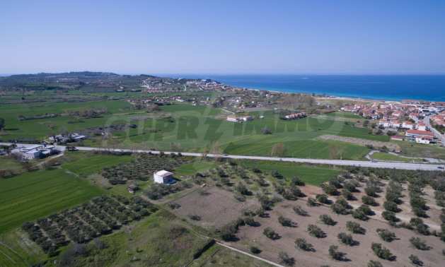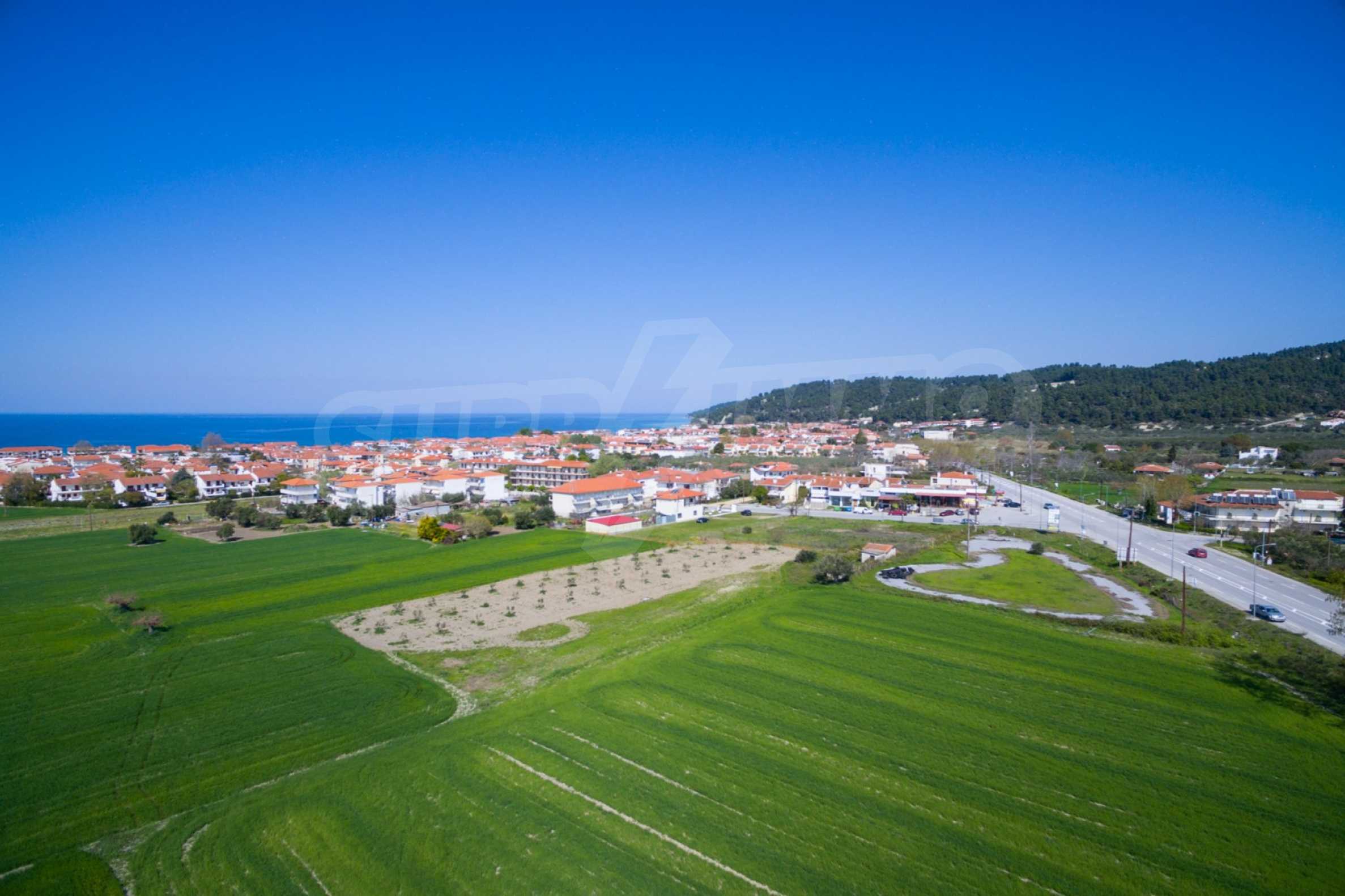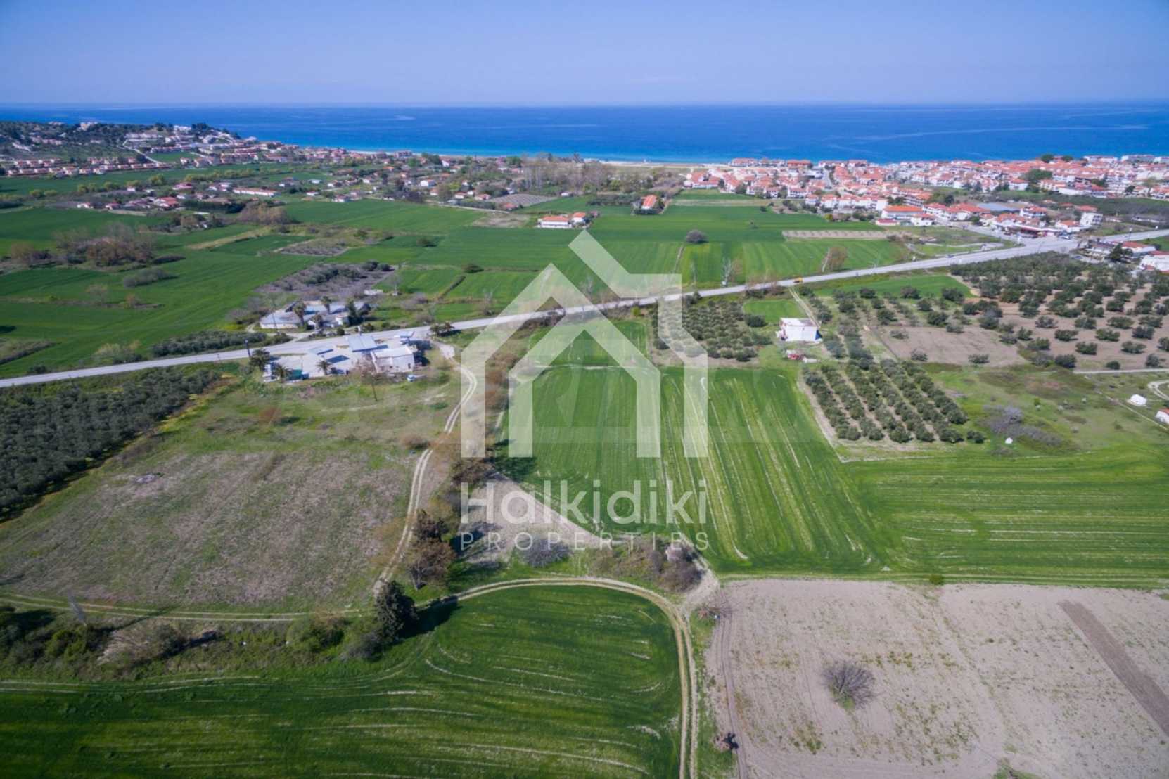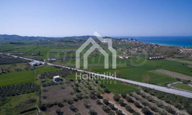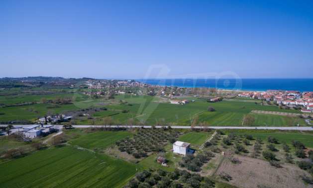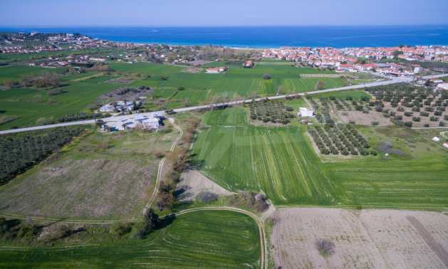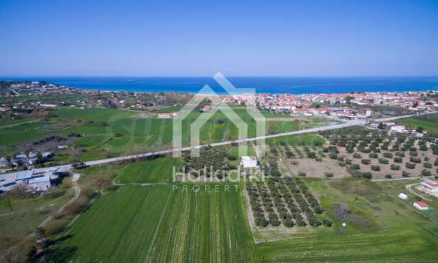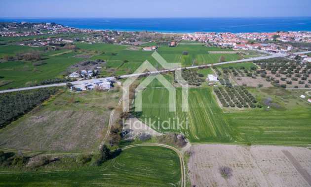 Flaches Feld, 13.594 m², in Kassandra, Thessaloniki, mit freiem Blick und mit westlicher Ausrichtung. Das Grundstück ist 900 m. vom Strand und dem Zentrum des Dorfes entfernt.Das Feld ist komplett bebaubar und liegt an der Hauptstraße.Das Anwesen ist perfekt für den Bau von Einfamilienhäusern und die professionelle Nutzung.