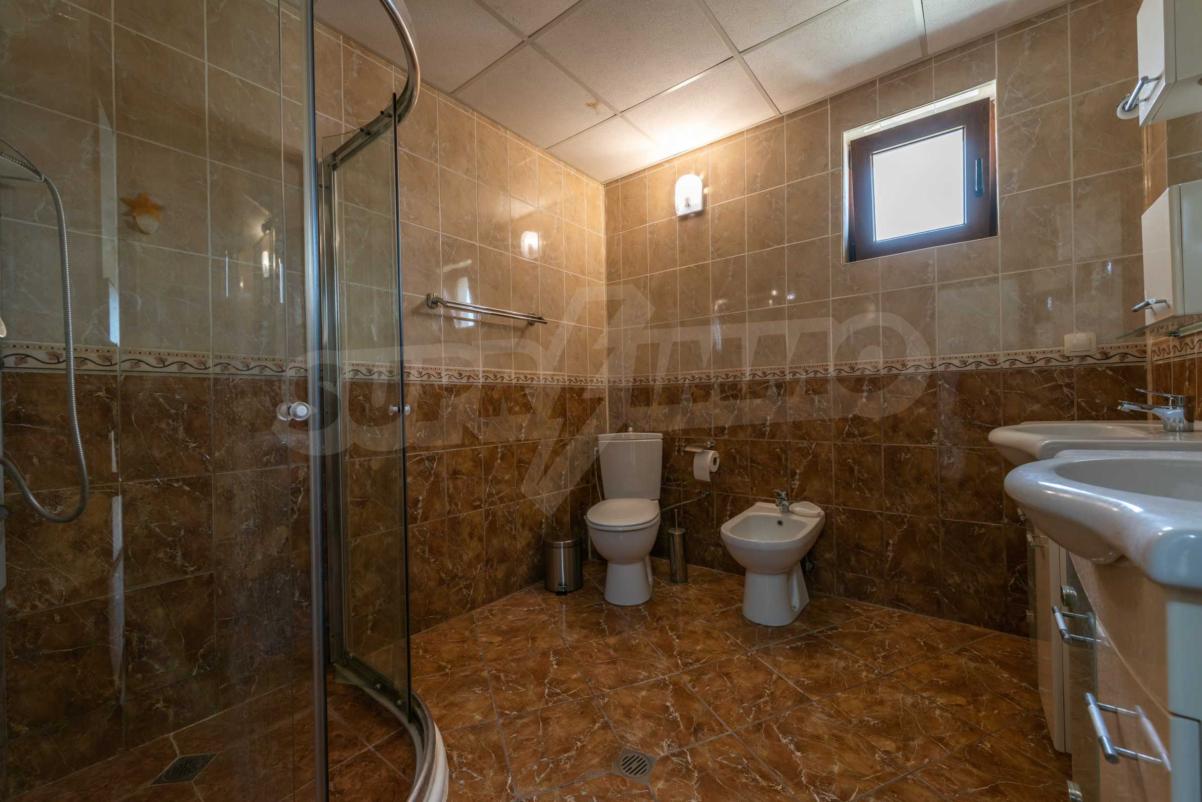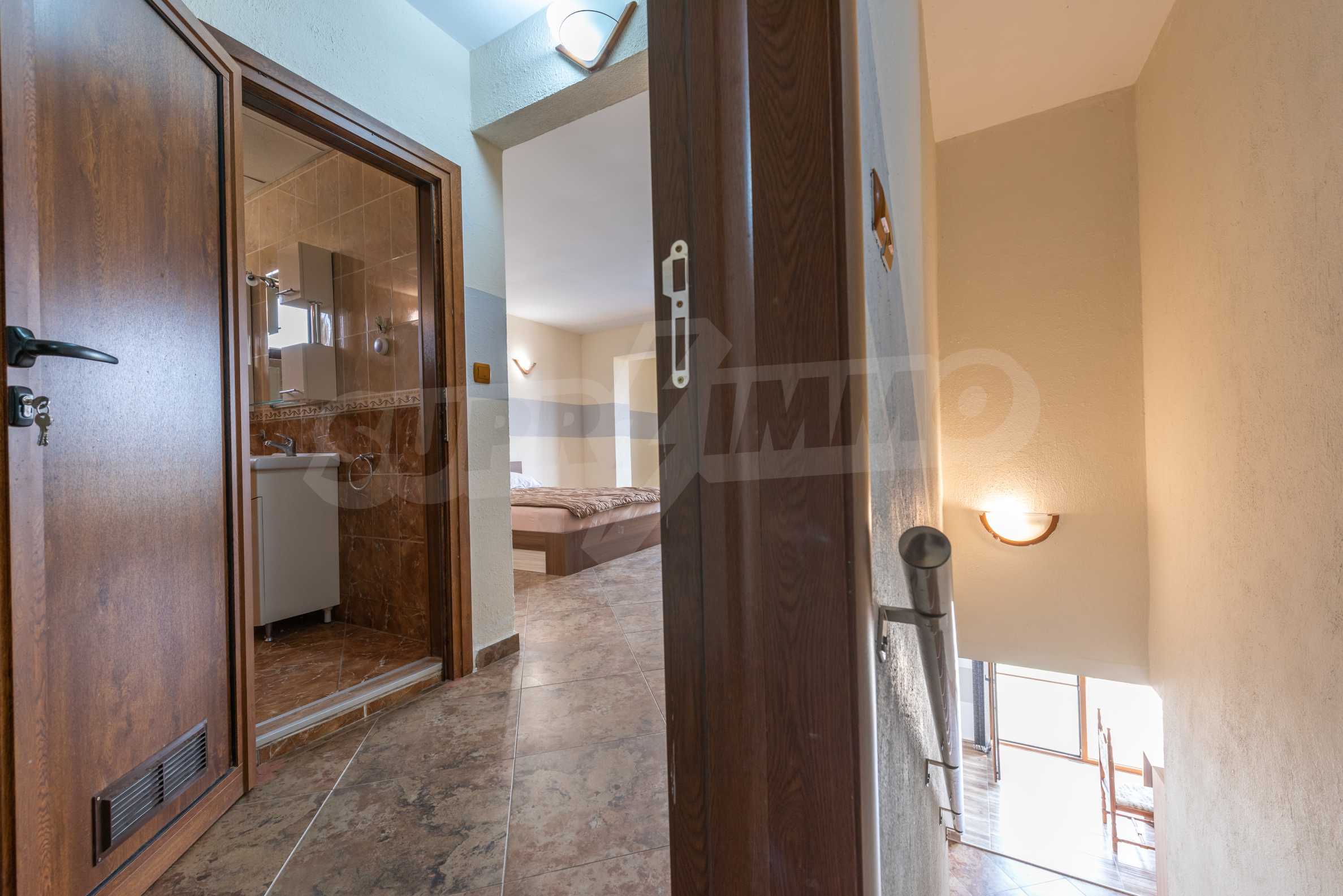 Vom Wohnzimmer führt eine Treppe in die zweite Ebene des Hauses. Hier befinden sich zwei geräumige Schlafzimmer mit jeweils einem separaten Badezimmer. Die Schlafzimmer sind standardmäßig eingerichtet und bieten alles, was Sie brauchen.