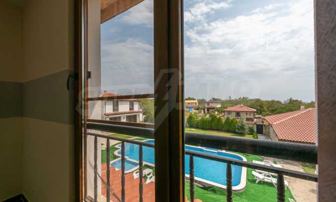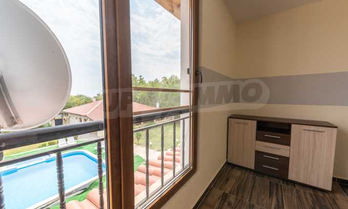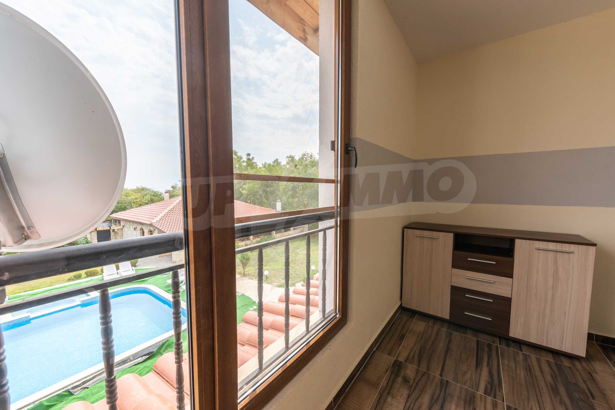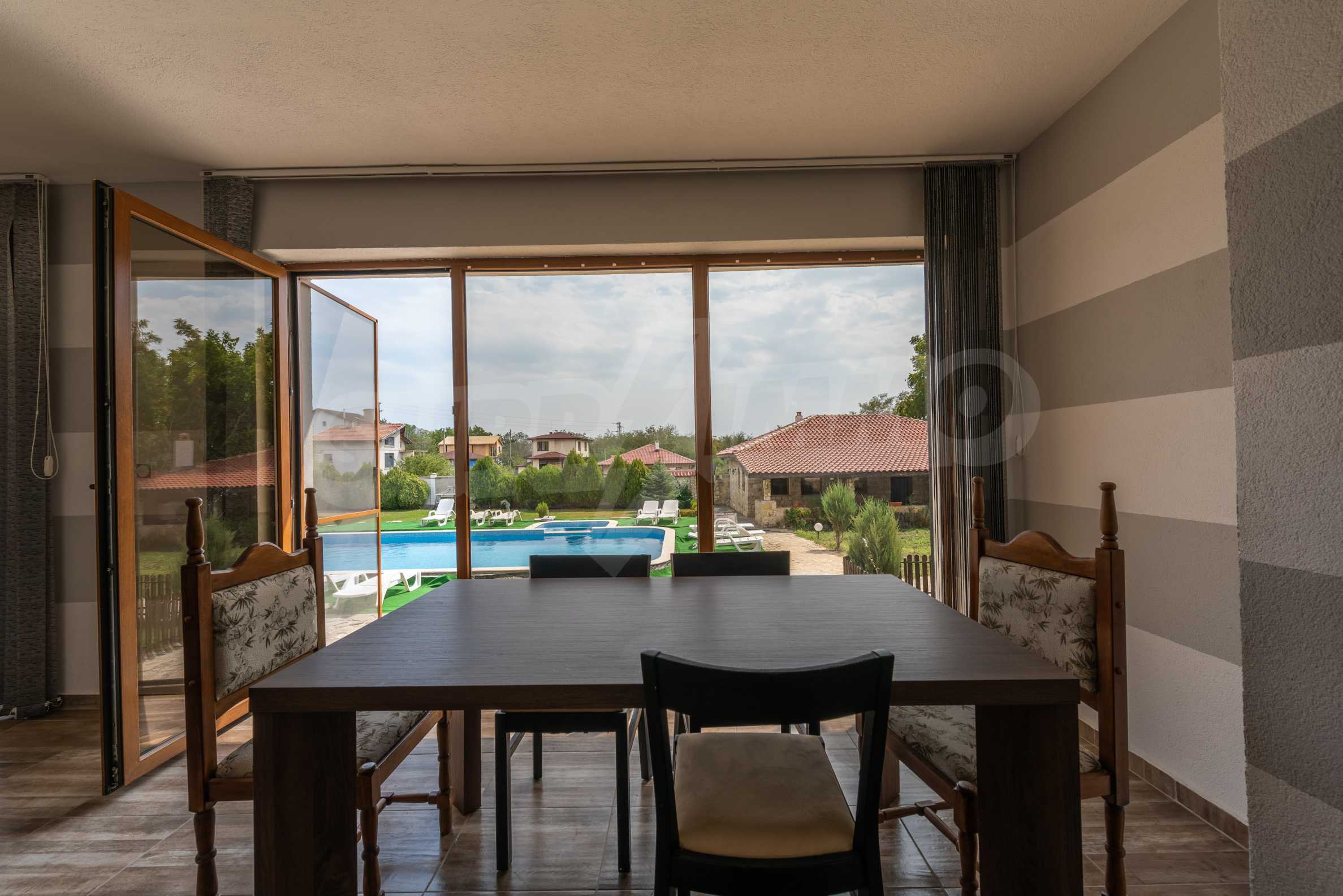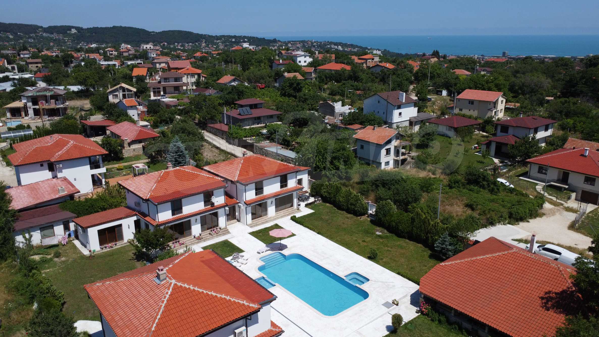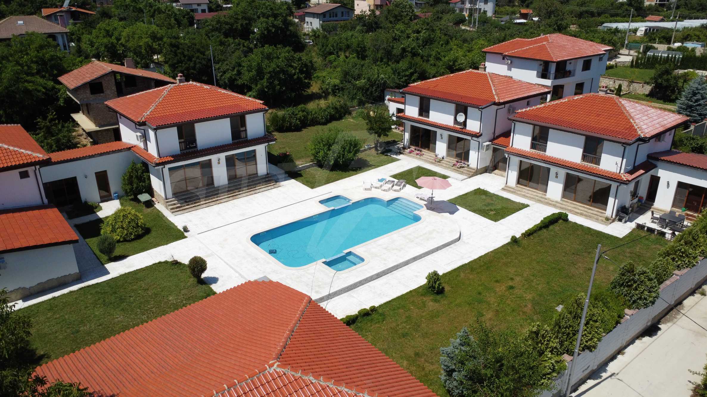 Der Häuserkomplex erstreckt sich über eine Fläche von 2.500 m² und besteht aus vier zweistöckigen Häusern, einer Taverne, einem großen Außenpool und einem gepflegten Garten. Es gibt ein Videoüberwachungssystem. Jedes der Häuser hat eine Fläche von 200 m² + 50 m² Veranda mit direktem Zugang zum Hof und Pool.
