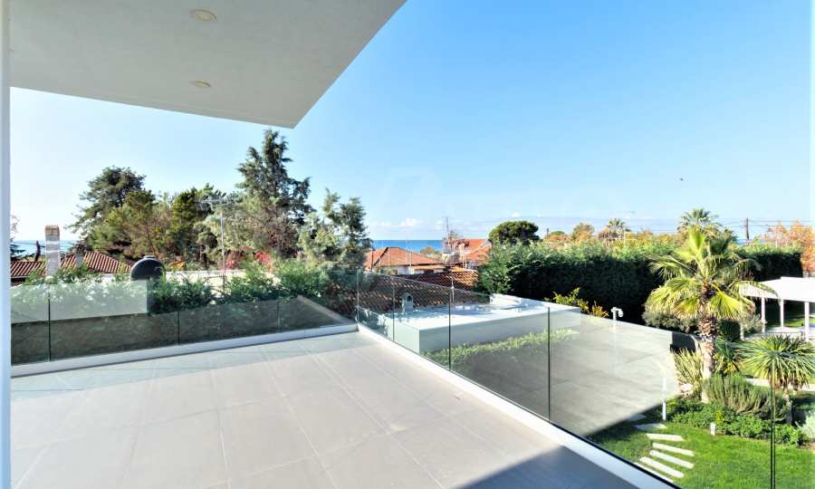 Wir freuen uns, Ihnen eine luxuriöse, moderne Villa auf zwei Ebenen präsentieren zu können, die neu gebaut und komplett in Nea Plagia, Chalkidiki, Griechenland, eingerichtet wurde.