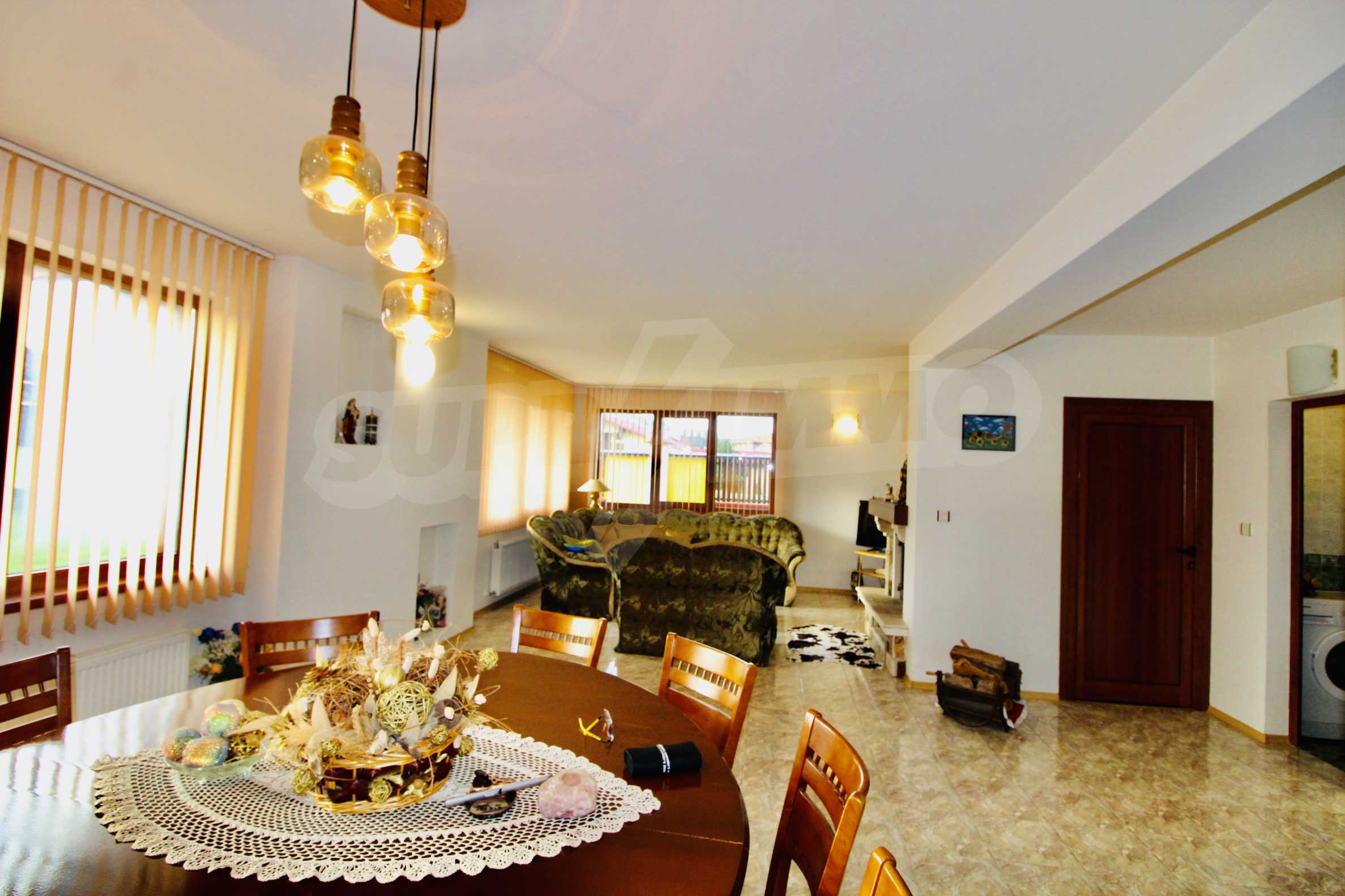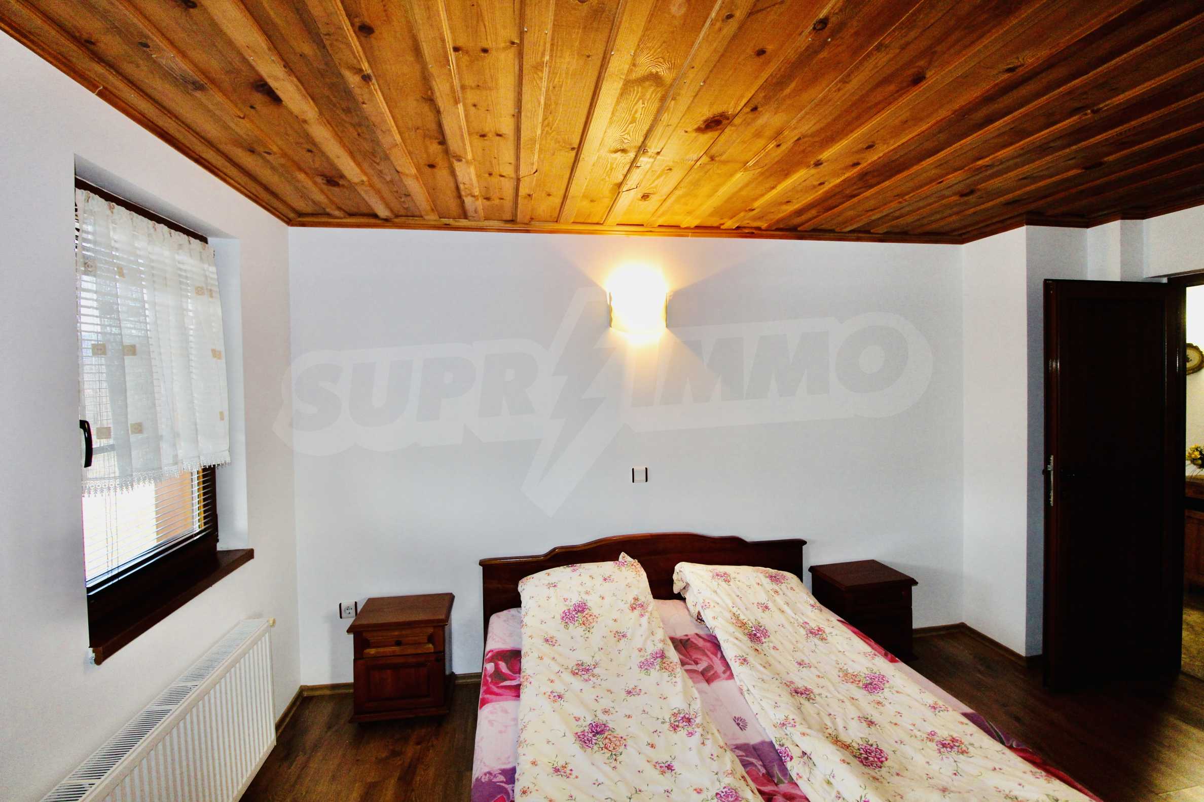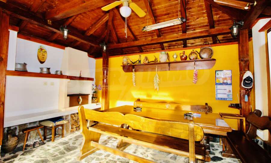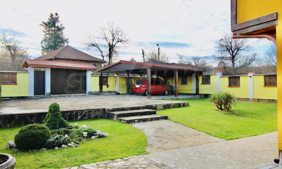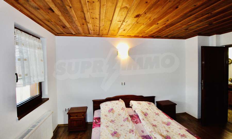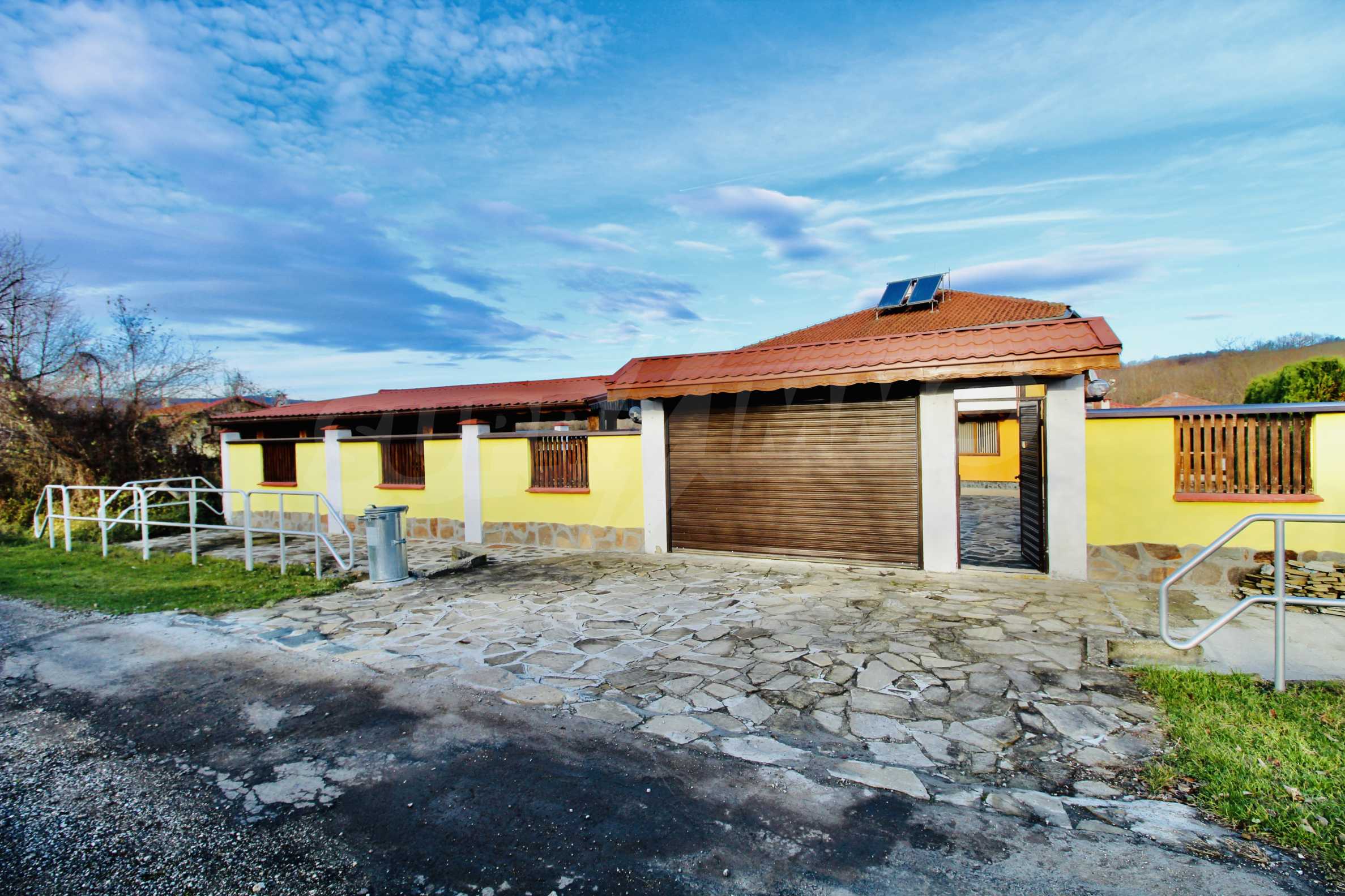 Auf der ersten Ebene gibt es eine Küche, ein großes Esszimmer mit Wohnzimmer und Kamin, ein Schlafzimmer mit Bad und WC. Auf der zweiten Etage befinden sich drei Schlafzimmer mit drei Bädern und Toiletten, eine große Terrasse. Die beiden Etagen haben separate Eingänge und können unabhängig voneinander bewohnt werden.Im Hof gibt es eine Sommerküche und einen Grill mit Backofen. Es gibt einen separaten Heizraum mit Pelletsheizung, der das gesamte Gebäude versorgt.