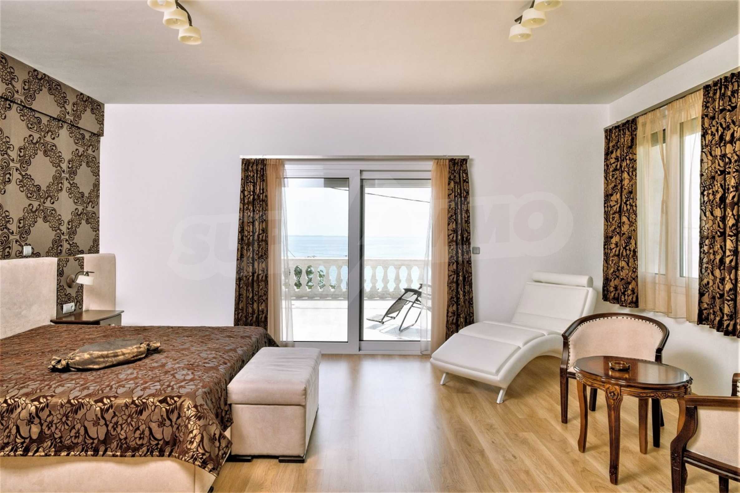 Einzigartige, luxuriöse Villa in Sithonia, Chalkidiki, vor einem wunderschönen Strand. Das Haus ist 450 qm groß. und erstreckt sich auf drei Ebenen. Es besteht aus einem großen Wohnzimmer, einer Küche, fünf großen Schlafzimmern und fünf Badezimmern. Es ist voll möbliert und mit allen Elektrogeräten ausgestattet. Es hat eine Tiefgarage für vier Autos und einen großen angelegten Garten. Es ist ein luxuriöses Anwesen in erster Linie an einem wunderschönen Strand.