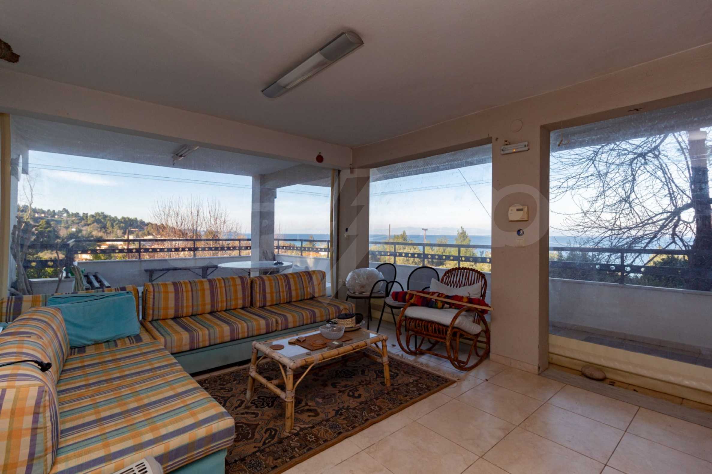 Renoviertes Einfamilienhaus, 145 m², in Kassandra, Chalkidiki mit unverbautem permanentem Meerblick auf die Bucht von Toronaios. Das Anwesen ist von 5.078 m² Grundstück umgeben, wenige Meter von einem zauberhaften Strand entfernt. Das Haus ist in zwei Ebenen aufgeteilt, bestehend aus zwei Wohneinheiten Mit der Küche verbundene Zimmer, vier Schlafzimmer, zwei Badezimmer und ein Abstellraum. Das Anwesen verfügt auch über Grill, Alarmanlage, Sicherheitstür, Solarheizung, automatisches Bewässern, Bohren, Wassertanks, Satellitenantenne, Einbauschränke und Olivenfeld.