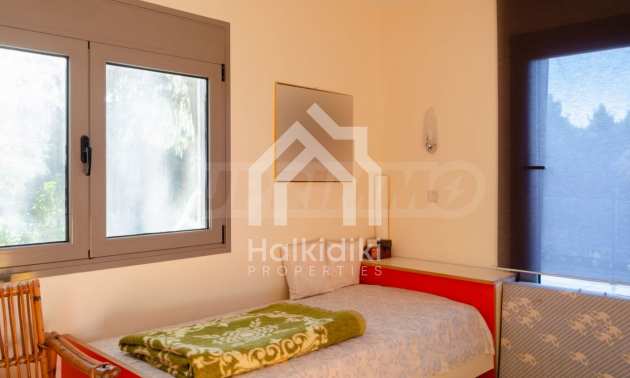 Renoviertes Einfamilienhaus, 145 m², in Kassandra, Chalkidiki mit unverbautem permanentem Meerblick auf die Bucht von Toronaios. Das Anwesen ist von 5.078 m² Grundstück umgeben, wenige Meter von einem zauberhaften Strand entfernt. Das Haus ist in zwei Ebenen aufgeteilt, bestehend aus zwei Wohneinheiten Mit der Küche verbundene Zimmer, vier Schlafzimmer, zwei Badezimmer und ein Abstellraum. Das Anwesen verfügt auch über Grill, Alarmanlage, Sicherheitstür, Solarheizung, automatisches Bewässern, Bohren, Wassertanks, Satellitenantenne, Einbauschränke und Olivenfeld.