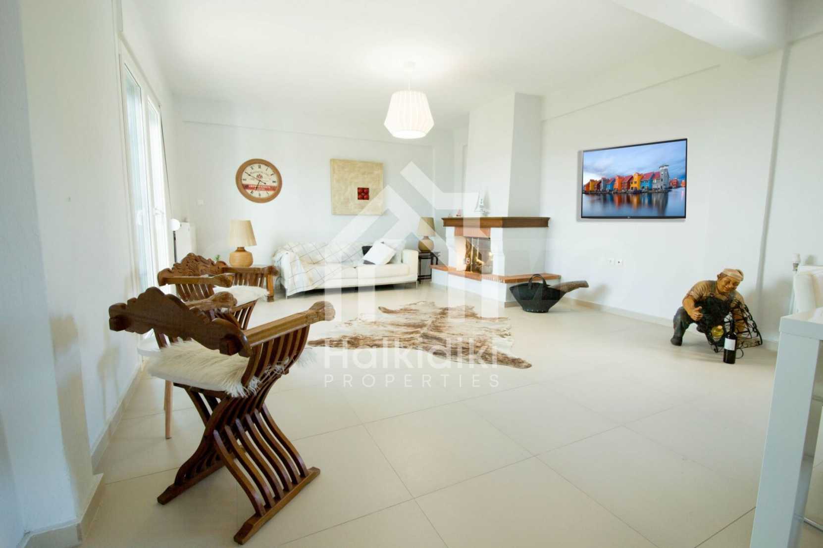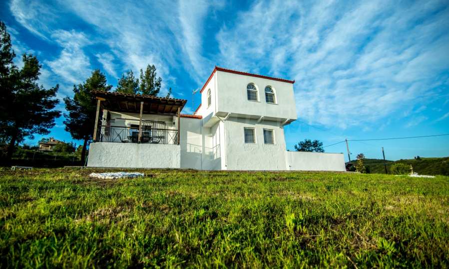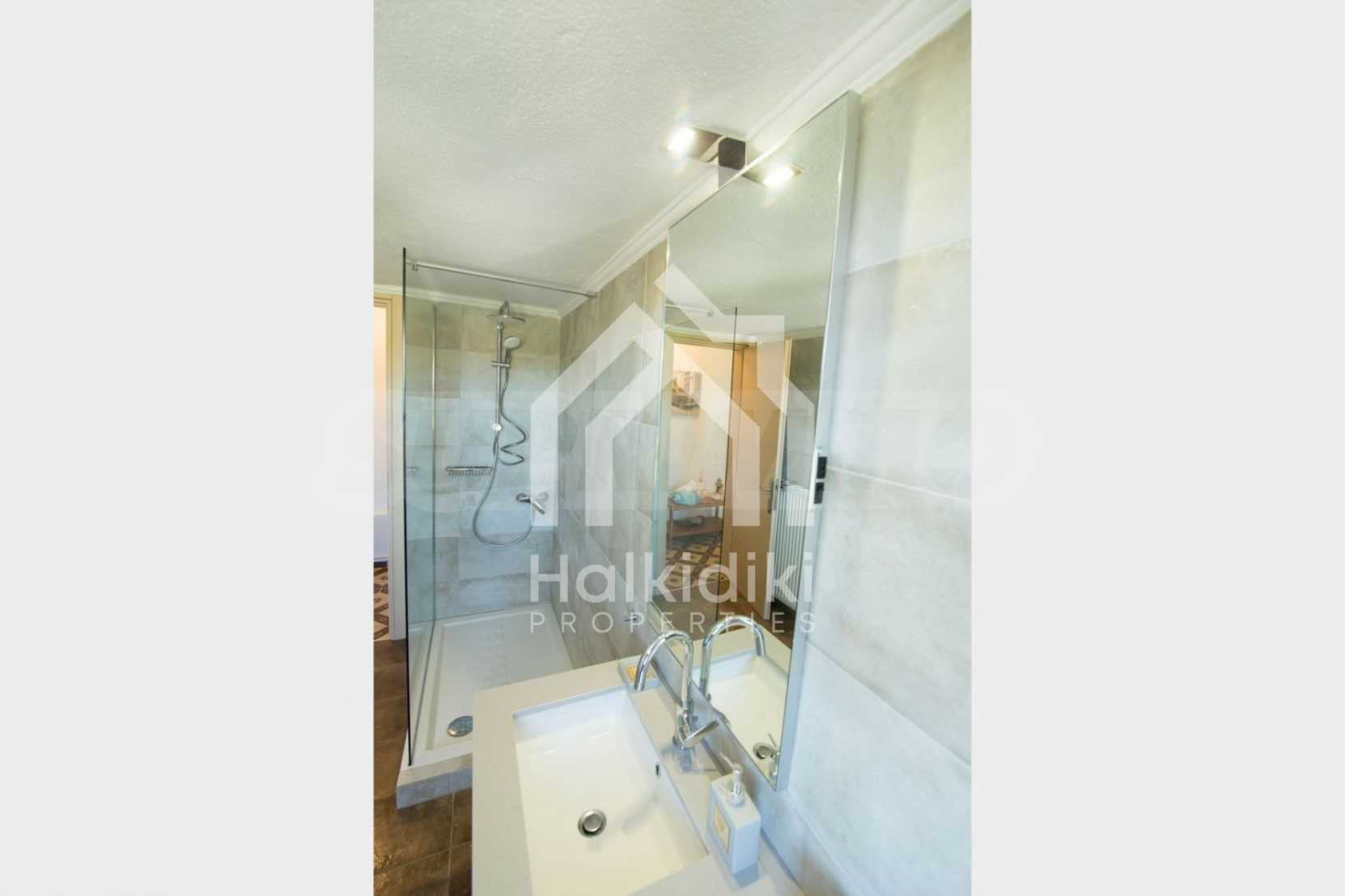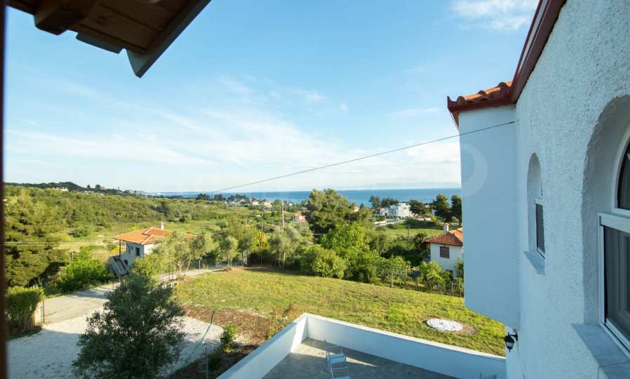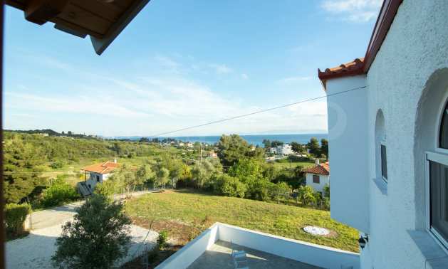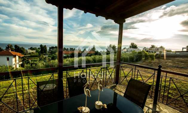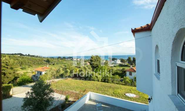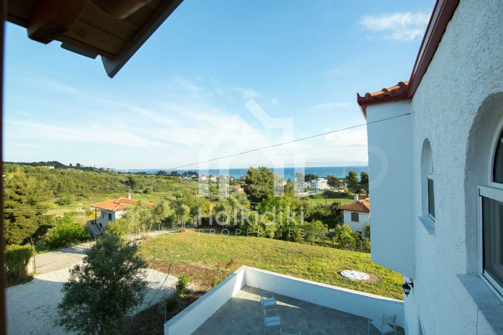 Renoviertes Einfamilienhaus, 200 m², in Kassandra, Chalkidiki mit unverbaubarem permanentem Meerblick und mit östlicher Ausrichtung. Das Anwesen ist von 4.000 m² Garten umgeben. Die Maisonette ist in drei Ebenen aufgeteilt, bestehend aus einem mit der Küche verbundenen Wohnzimmer, vier Schlafzimmer, ein Badezimmer, ein WC und ein Abstellraum.Das Anwesen verfügt auch über große Balkone, PVC-Tischlerei, Fliesenböden, Sicherheitstür und Vorinstallation des Heizsystems.